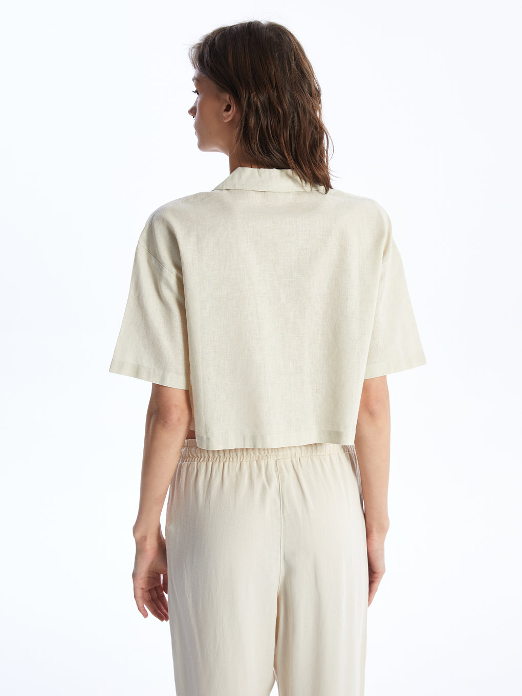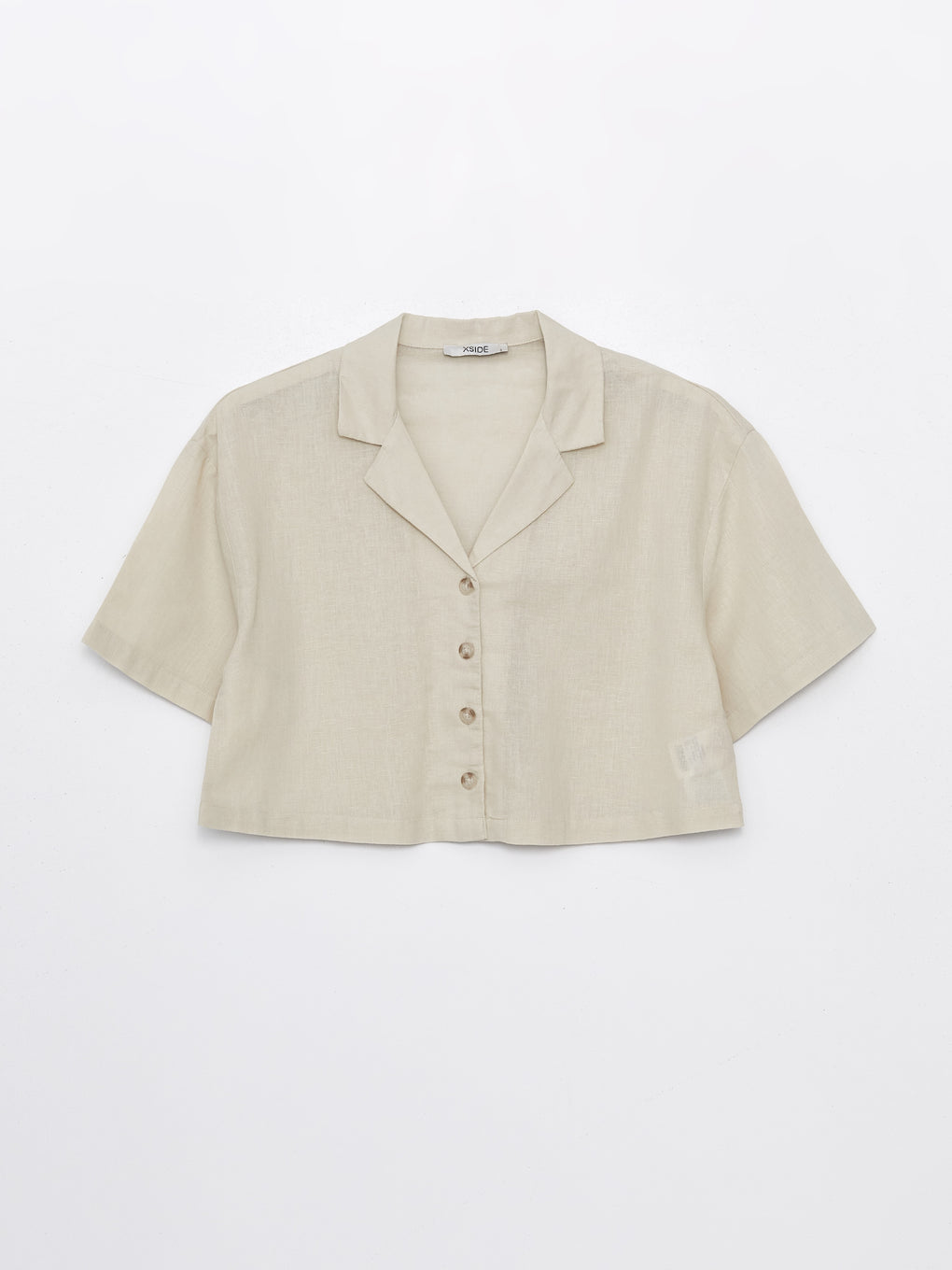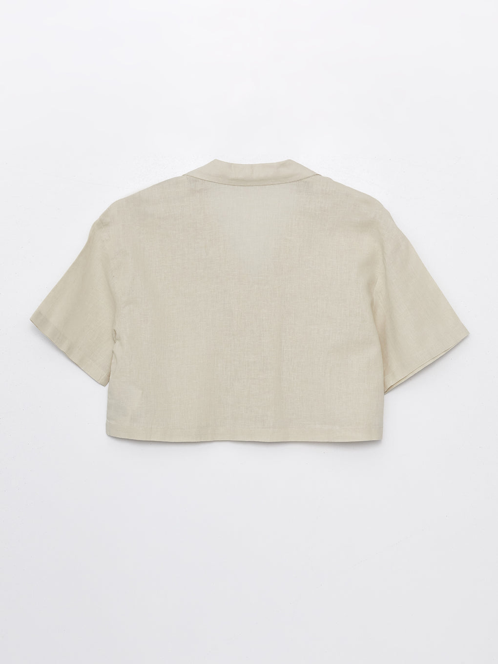 Straight Short Sleeve Crop Linen Blend Women's Shirt