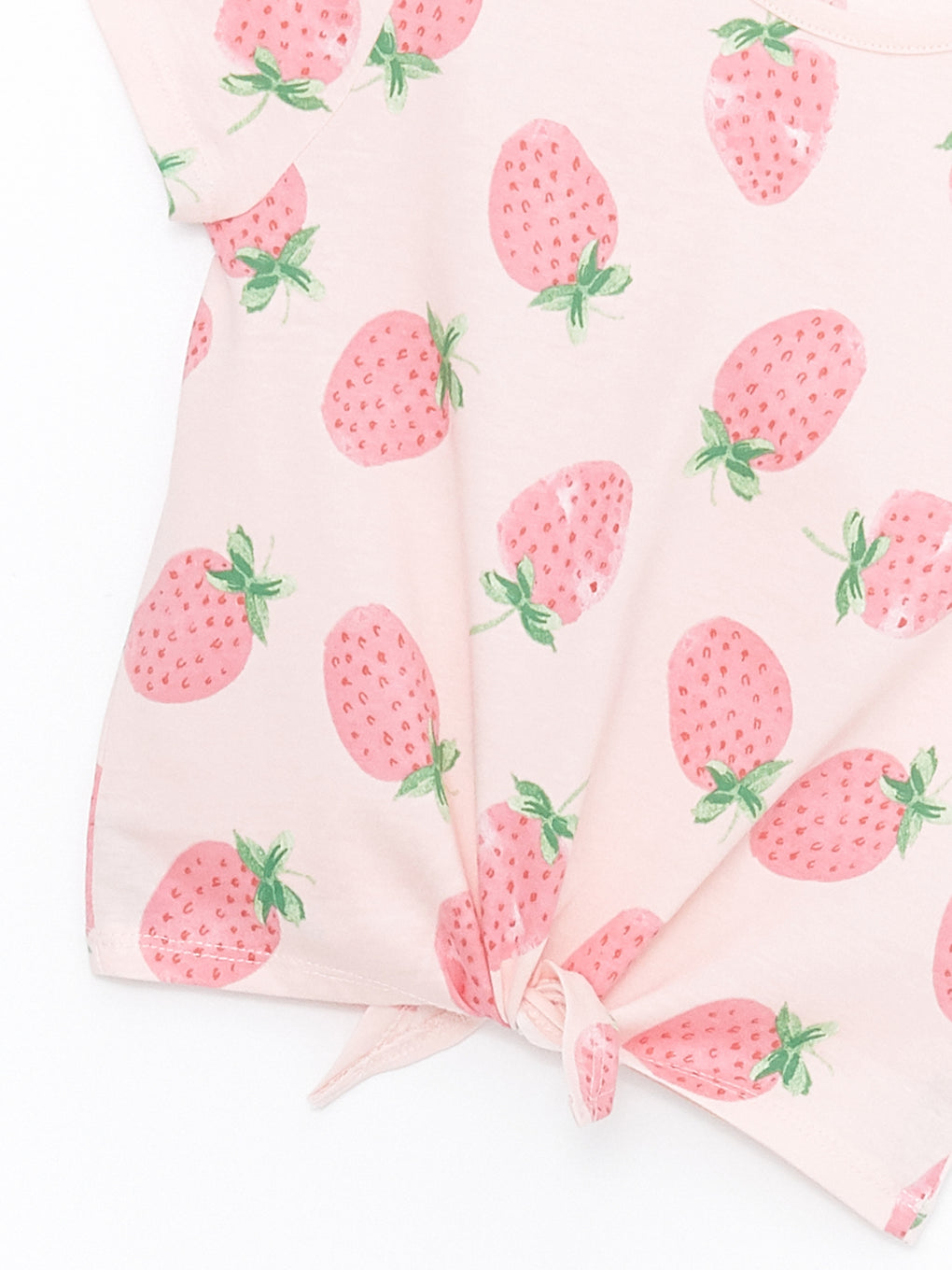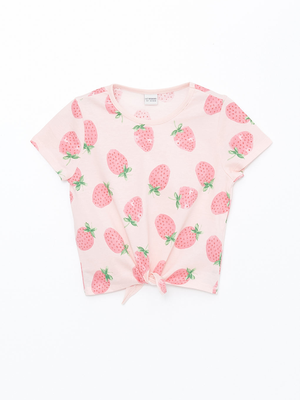 Poncho Crew Neck Printed Short Sleeve Girls' Crop T-Shirt