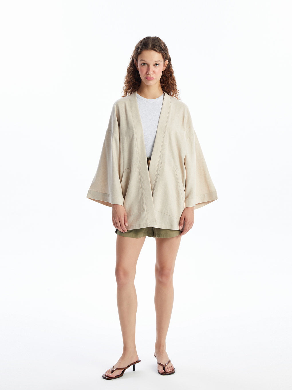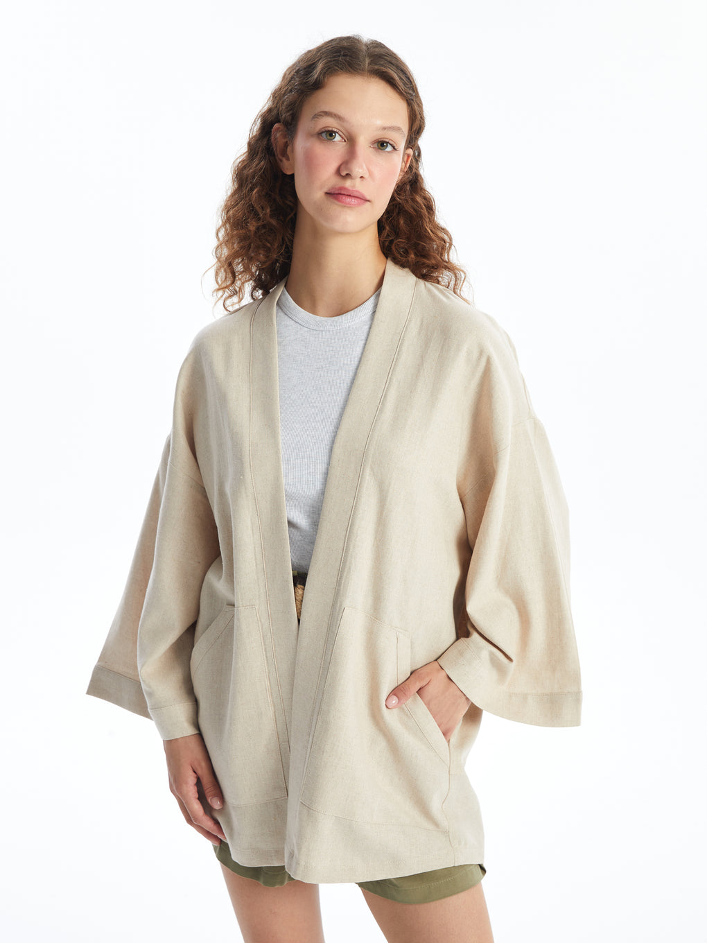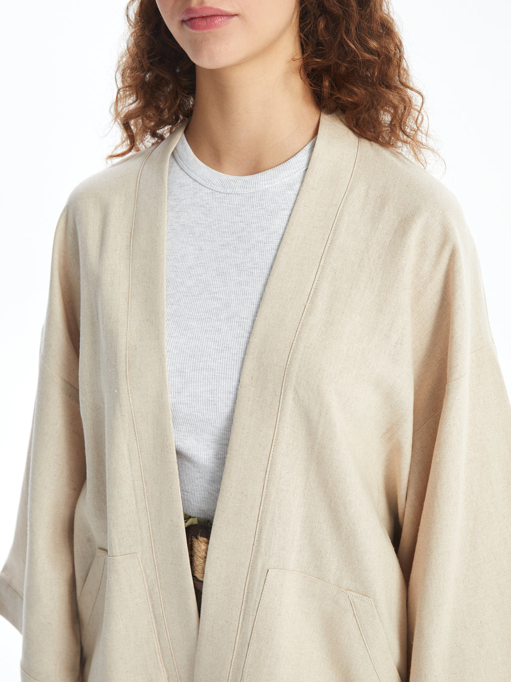 Shawl Collar Oversize Linen Blend Women's Kimono