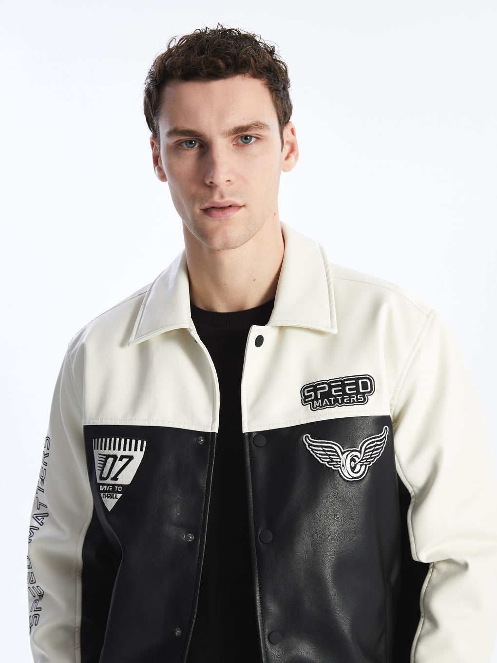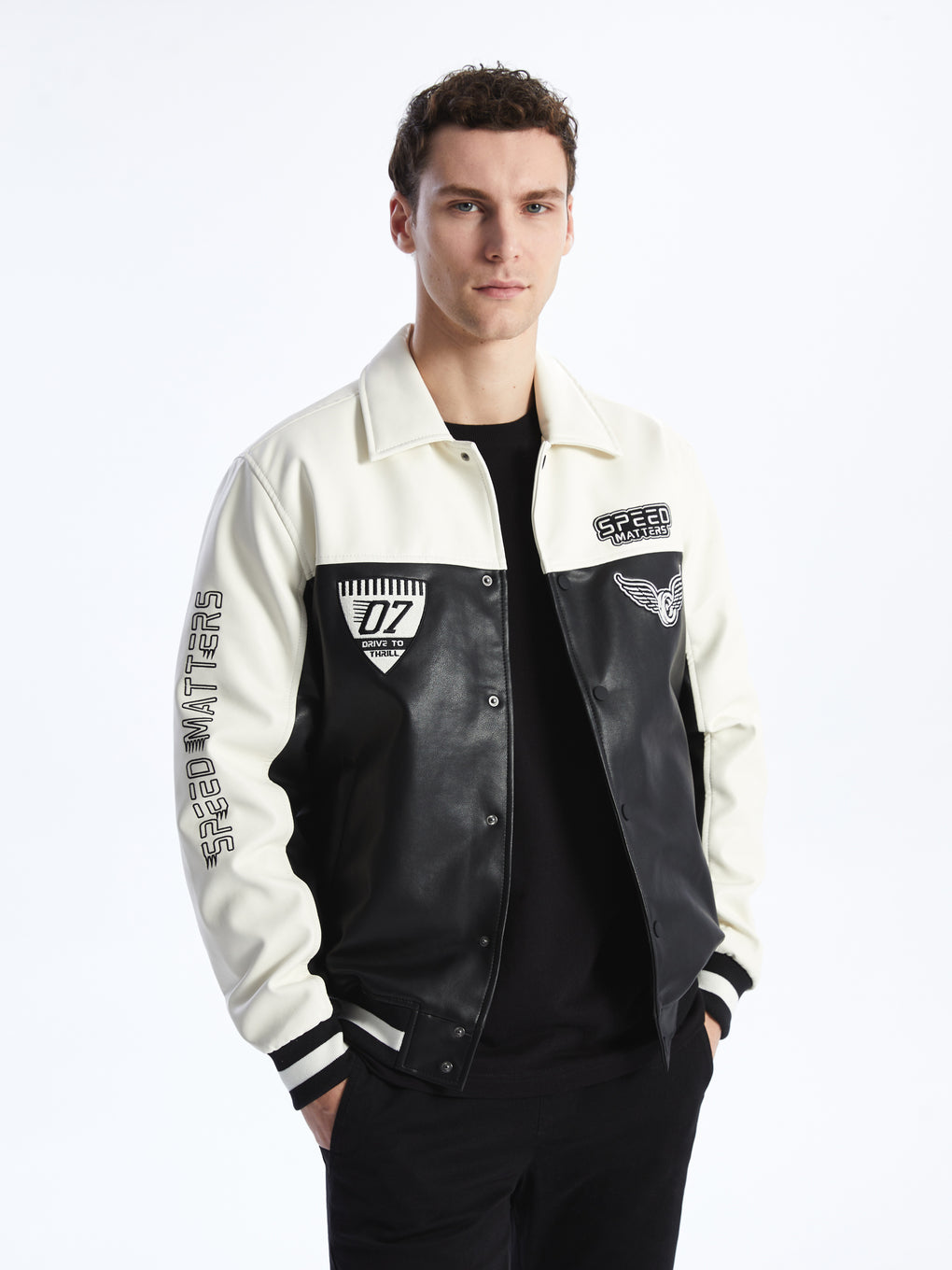 Standard Fit Shirt Neck Men's Faux Leather Jacket