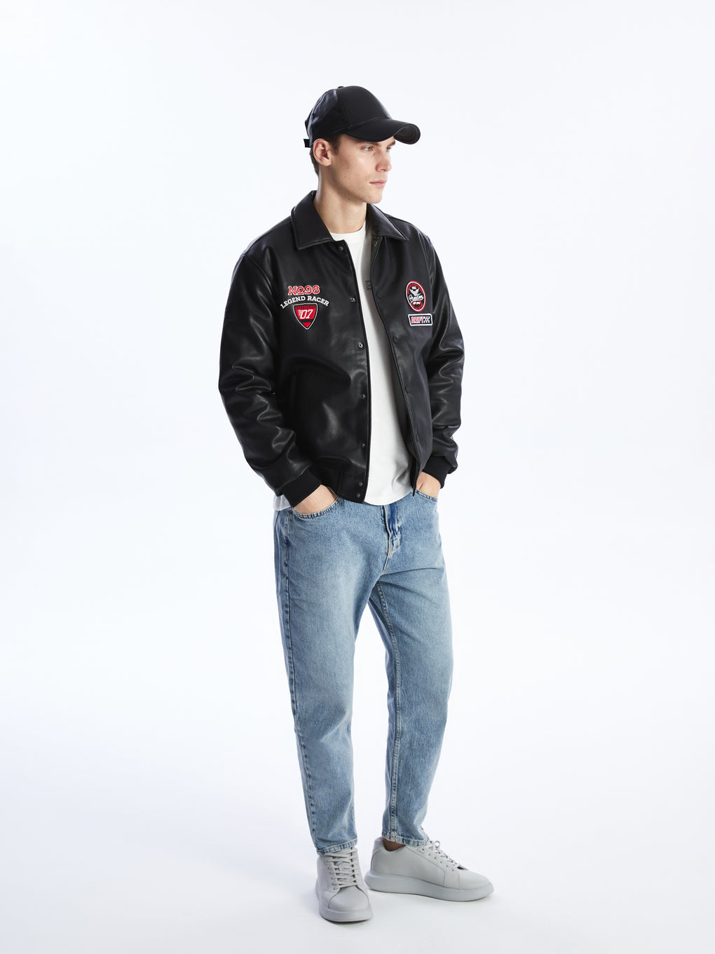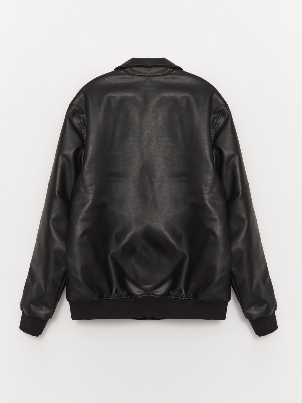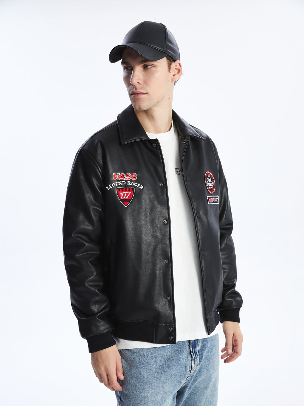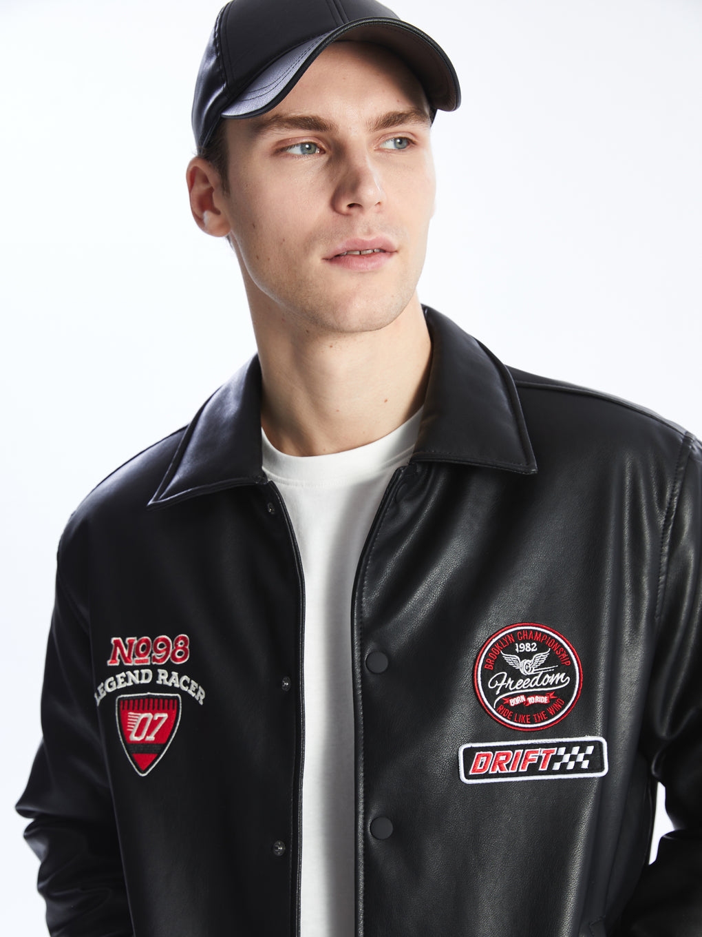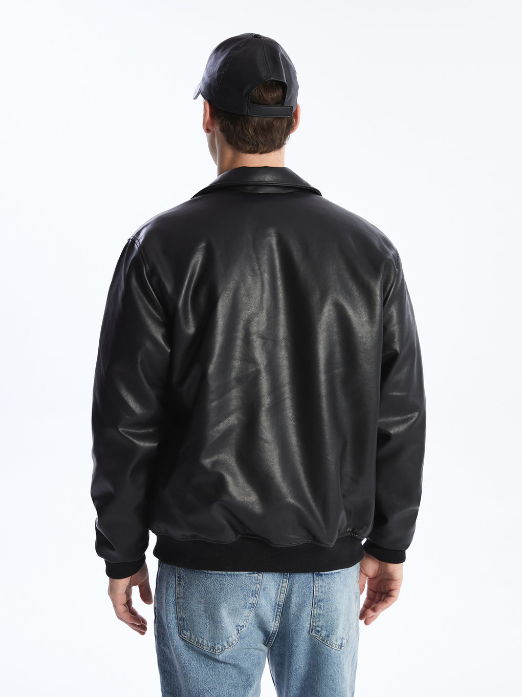 Standard Fit Shirt Neck Men's Faux Leather Jacket