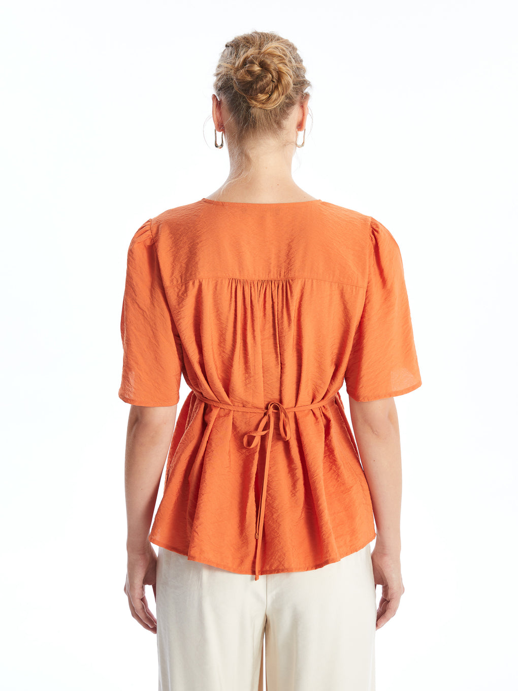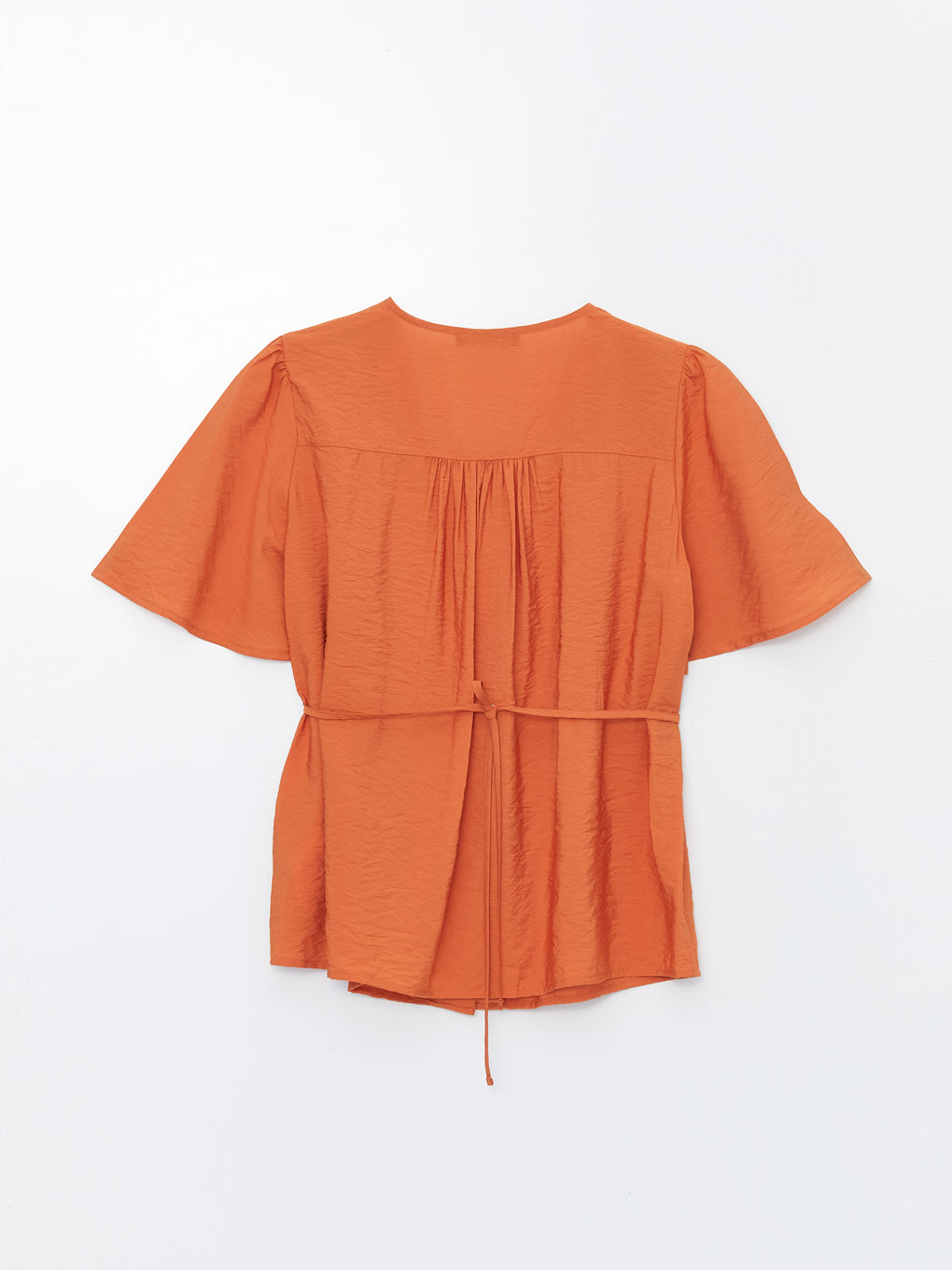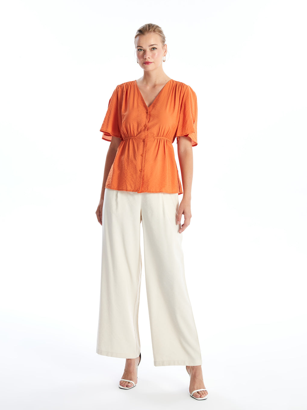 V-Neck Straight Short Sleeve Oversize Women's Blouse