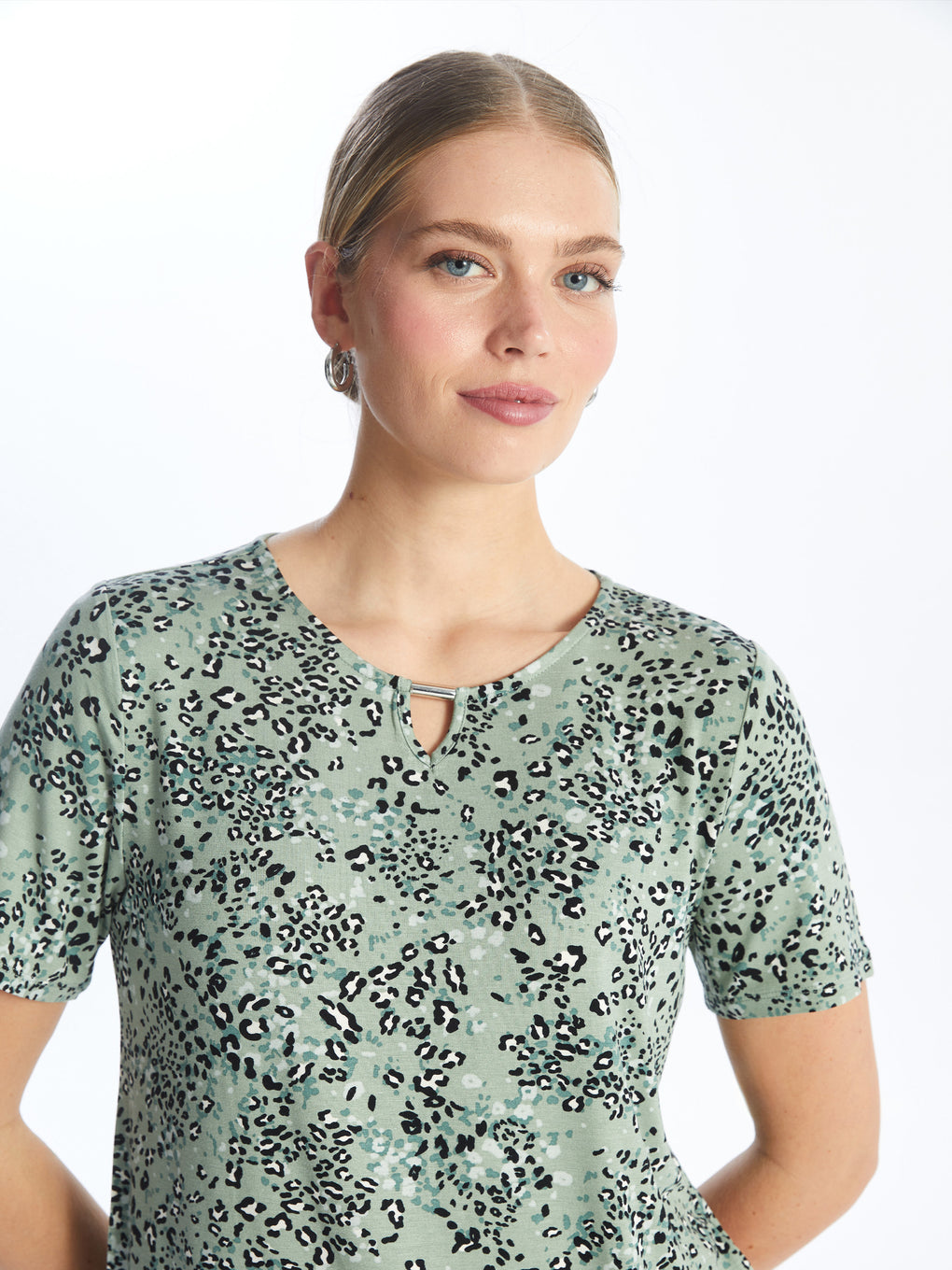 Crew Neck Patterned Short Sleeve Women's T-shirt