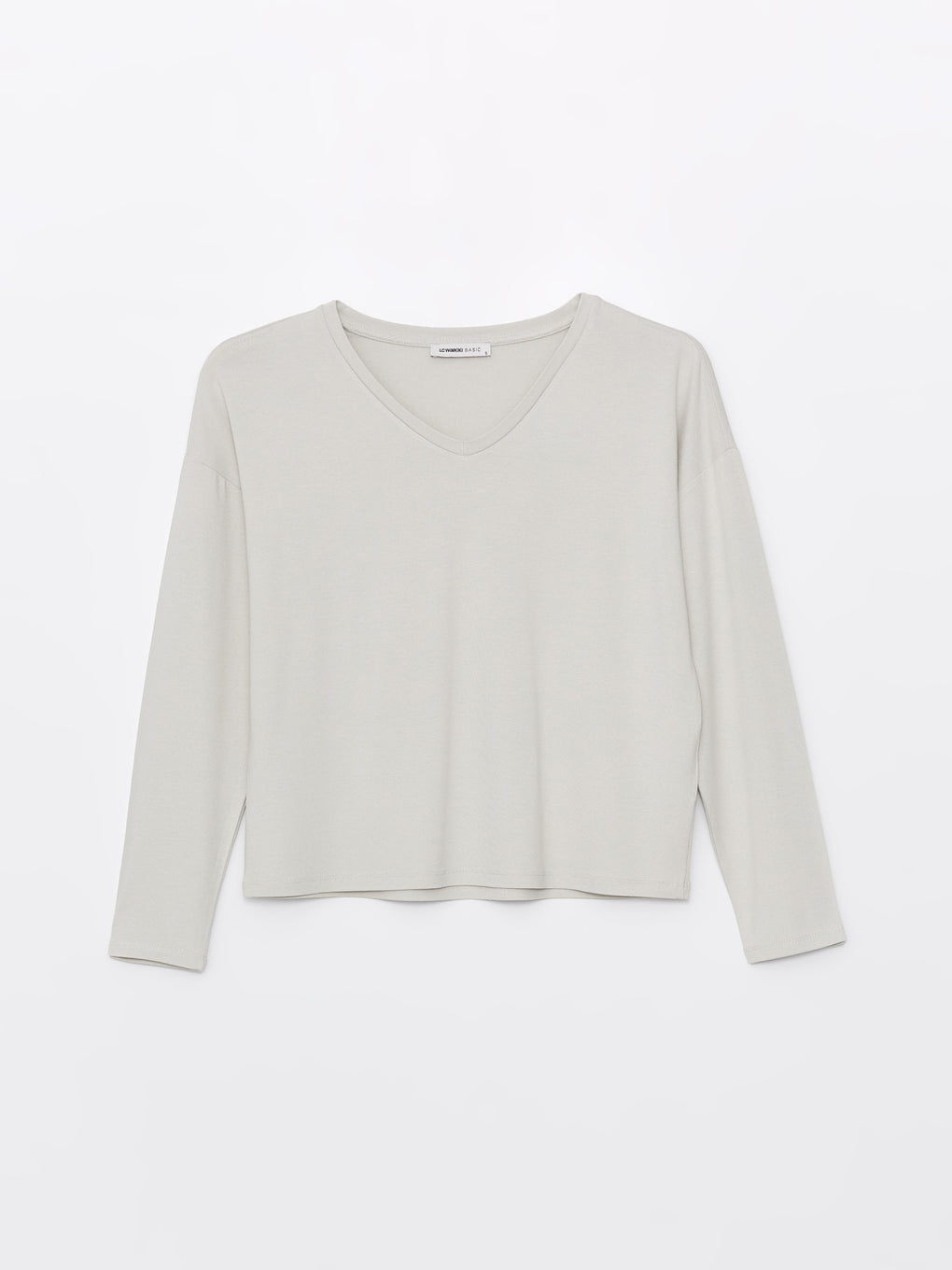 V-Neck Plain Long Sleeve Women's T-Shirt