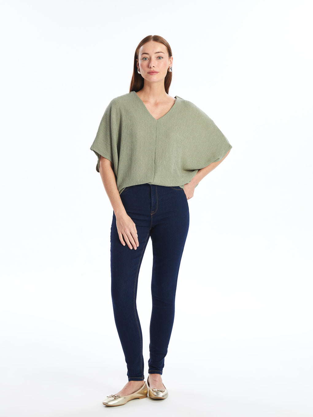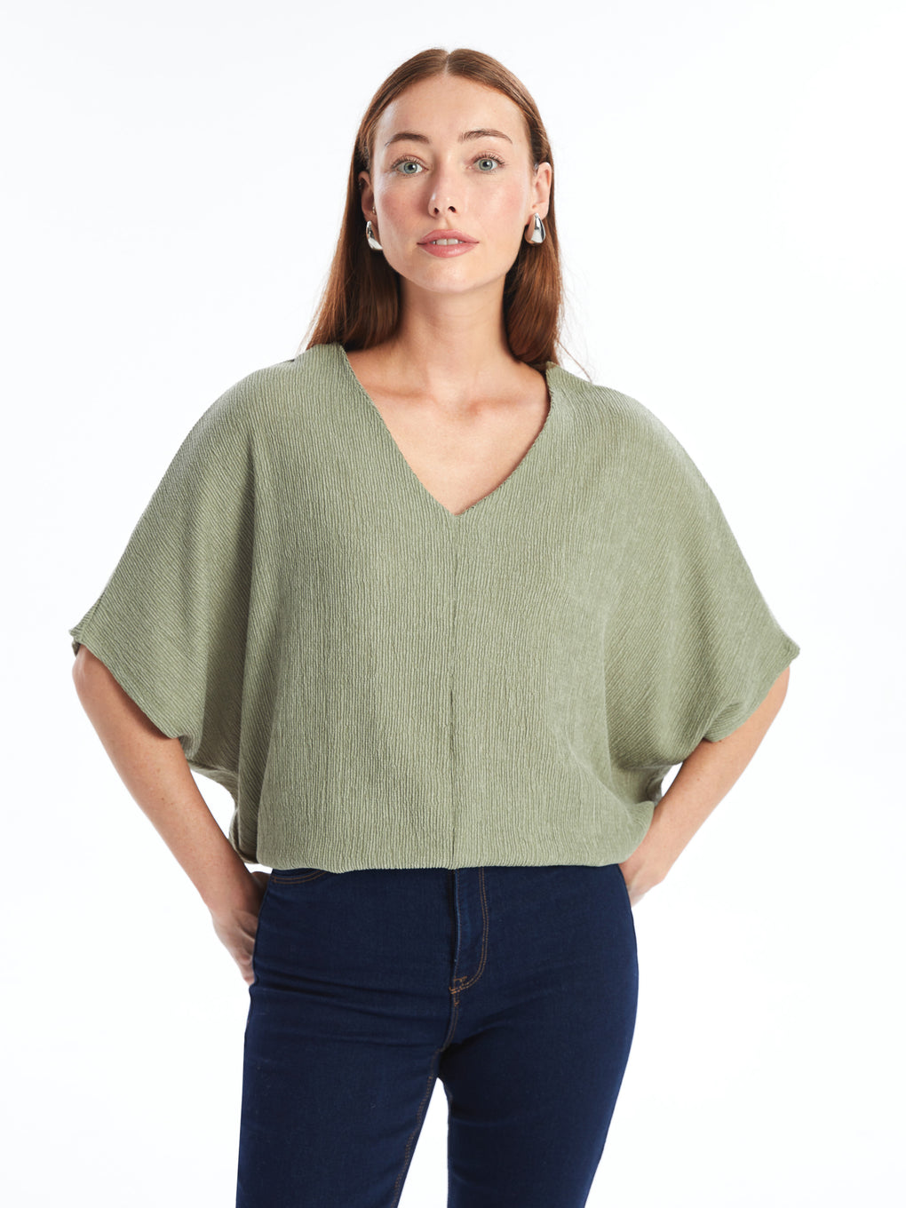 V Neck Straight Short Sleeve Women T-Shirt