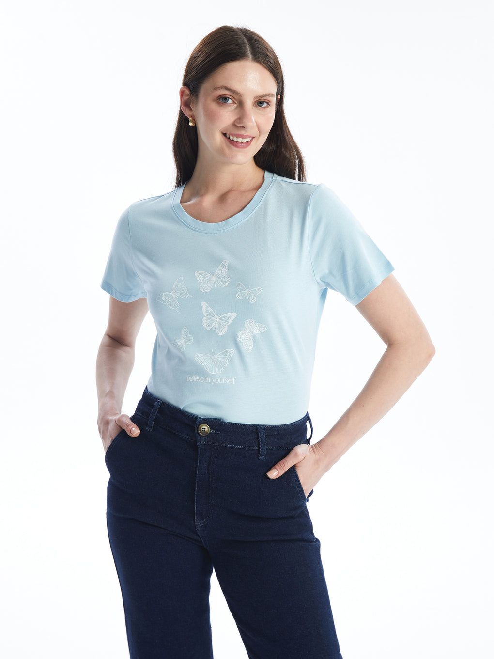Crew Neck Printed Short Sleeve Women's T-shirt