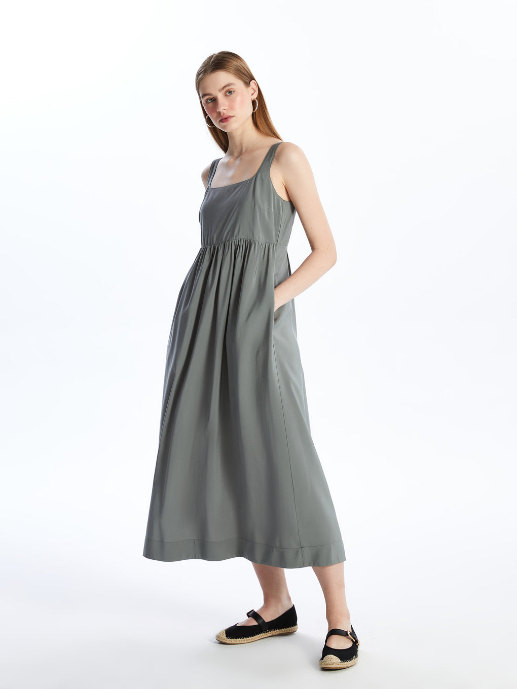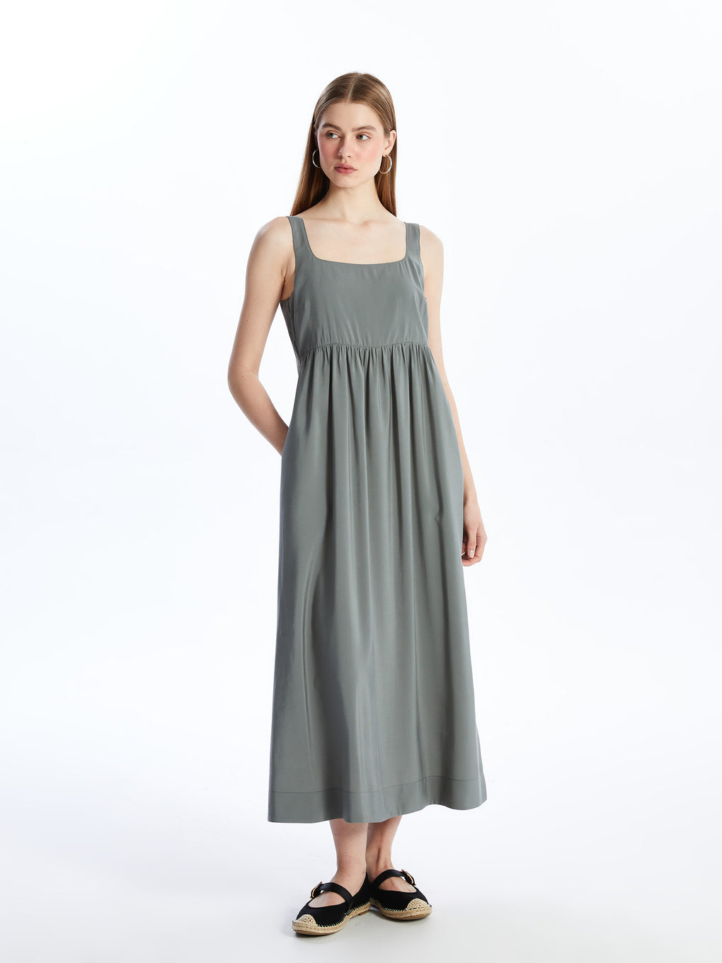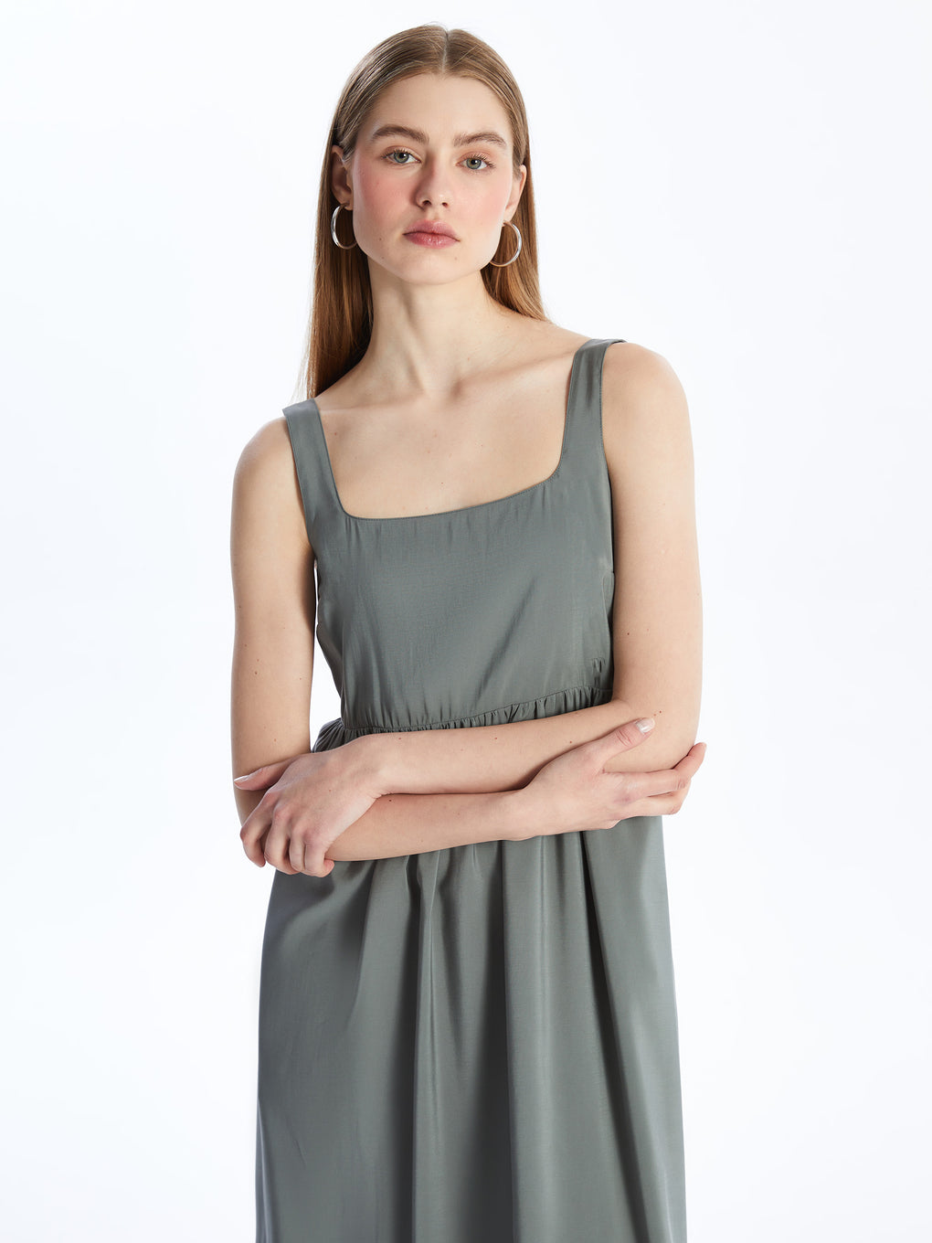 Square Collar Straight Strap Women's Dress