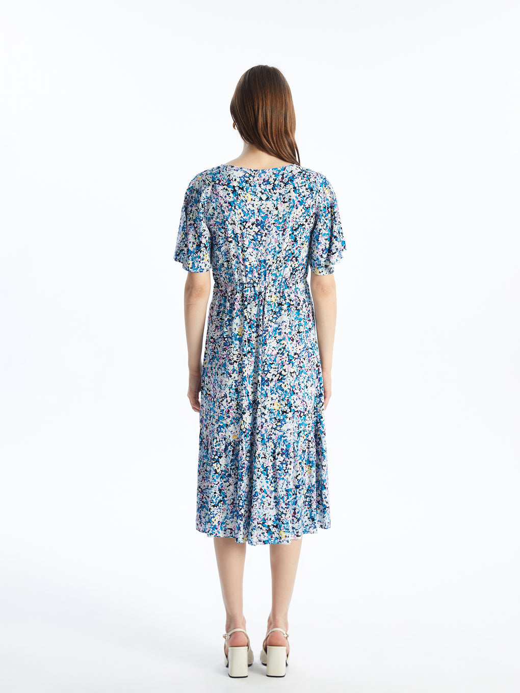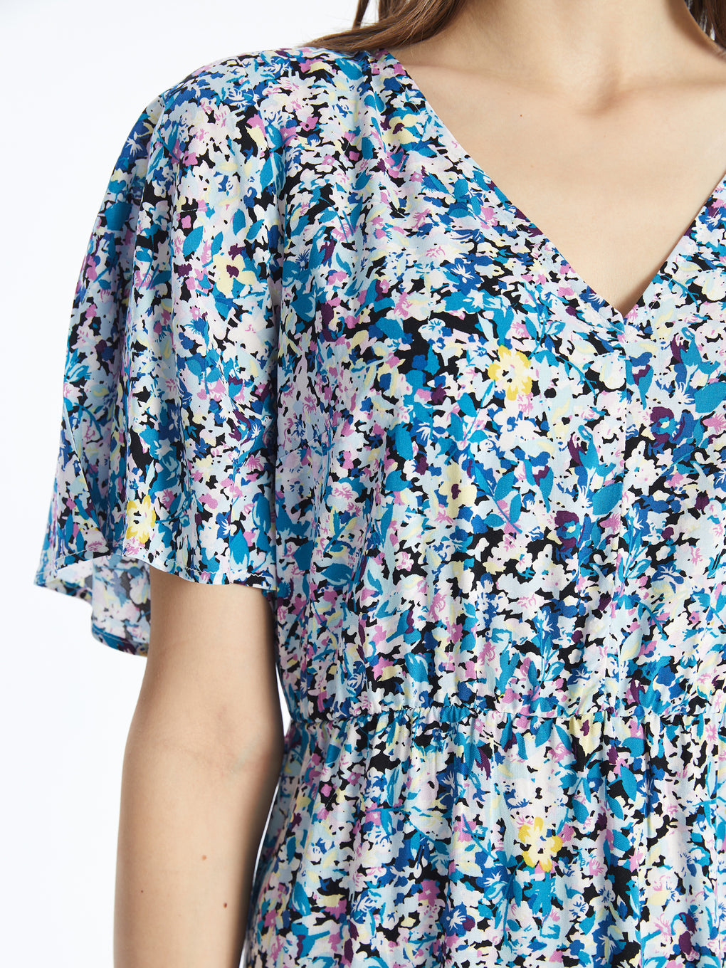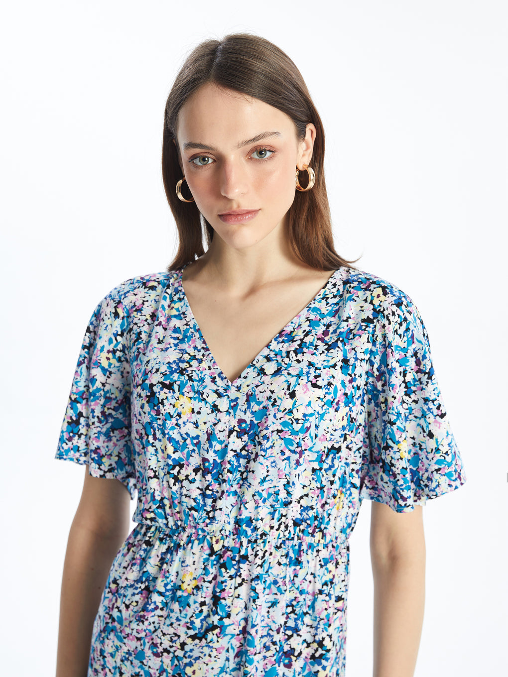 V Neck Flower Short Sleeve Women's Dress