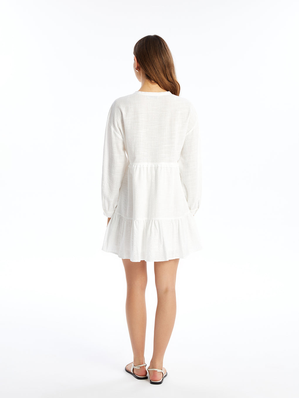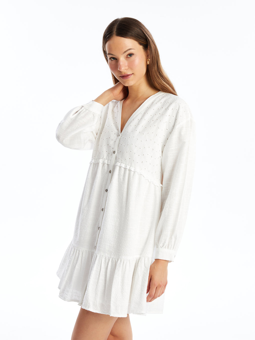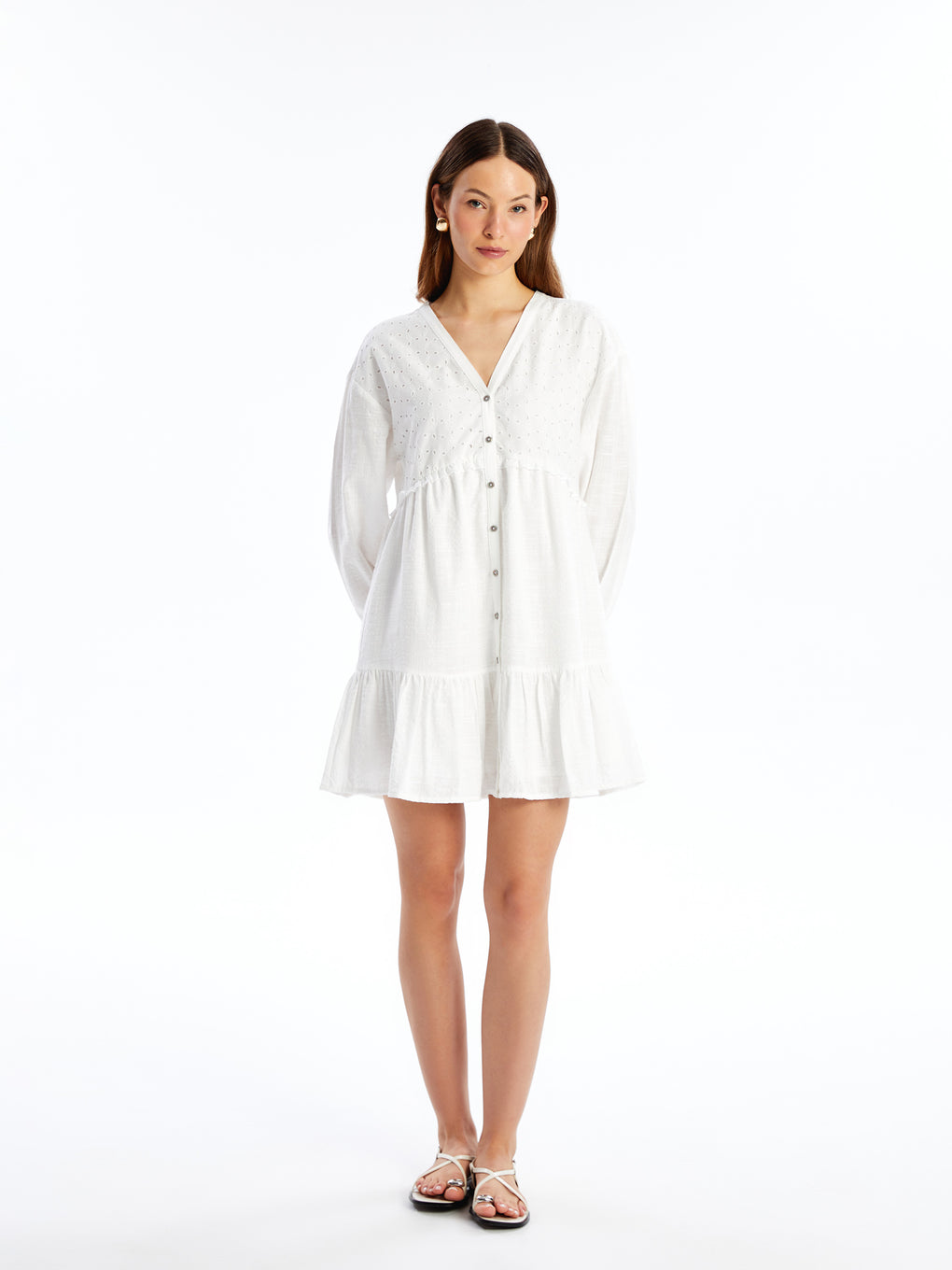V-Neck Embroidered Long Sleeve Women's Shirt Dress