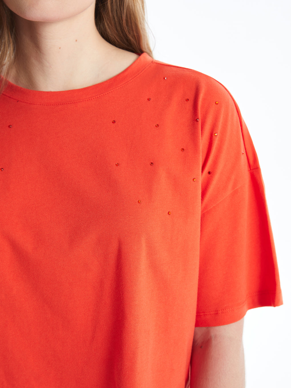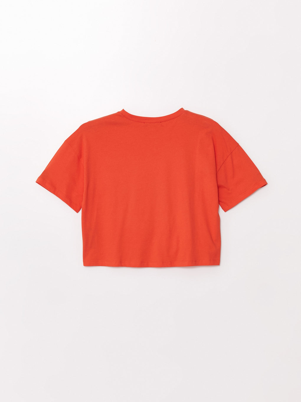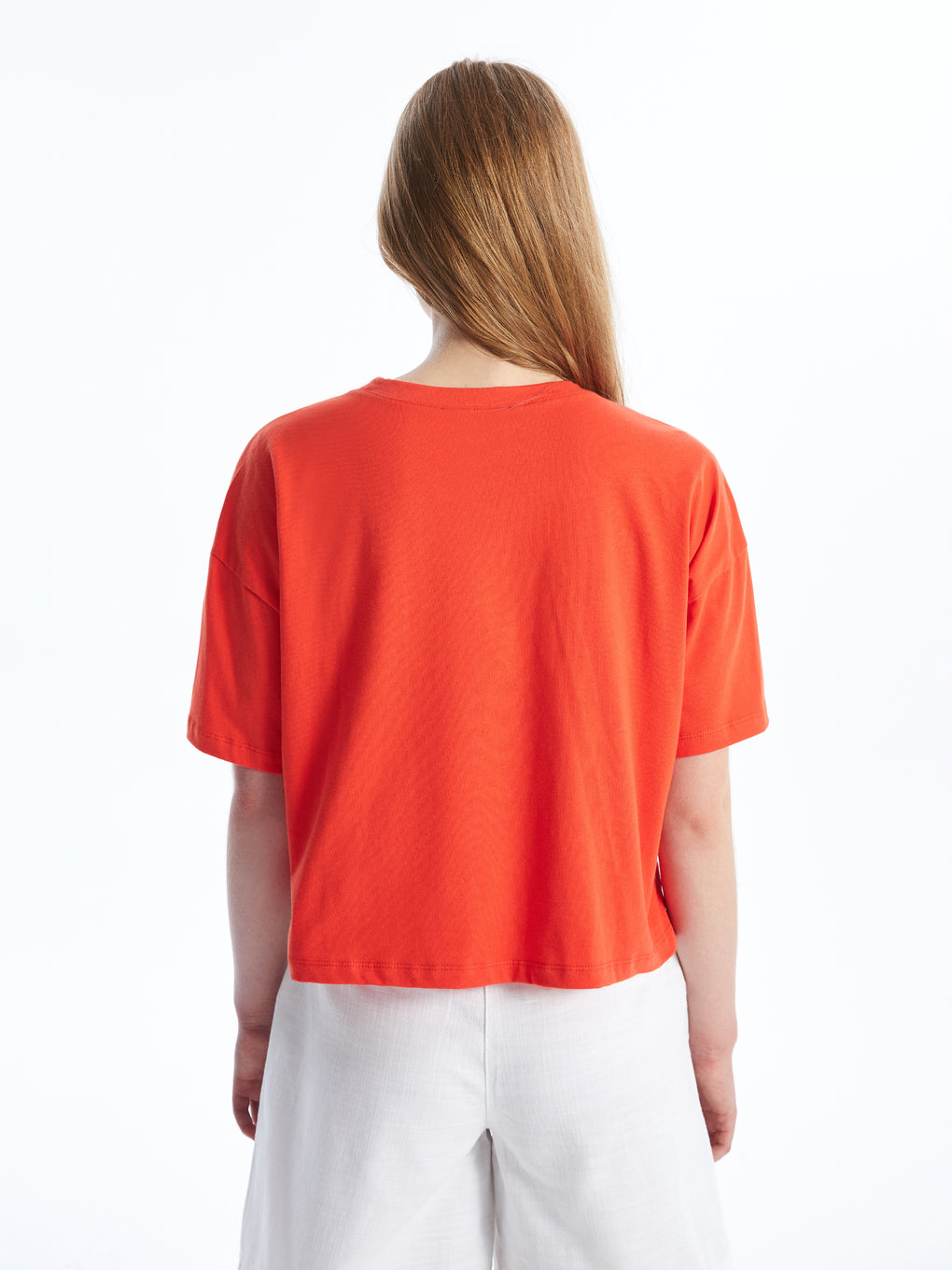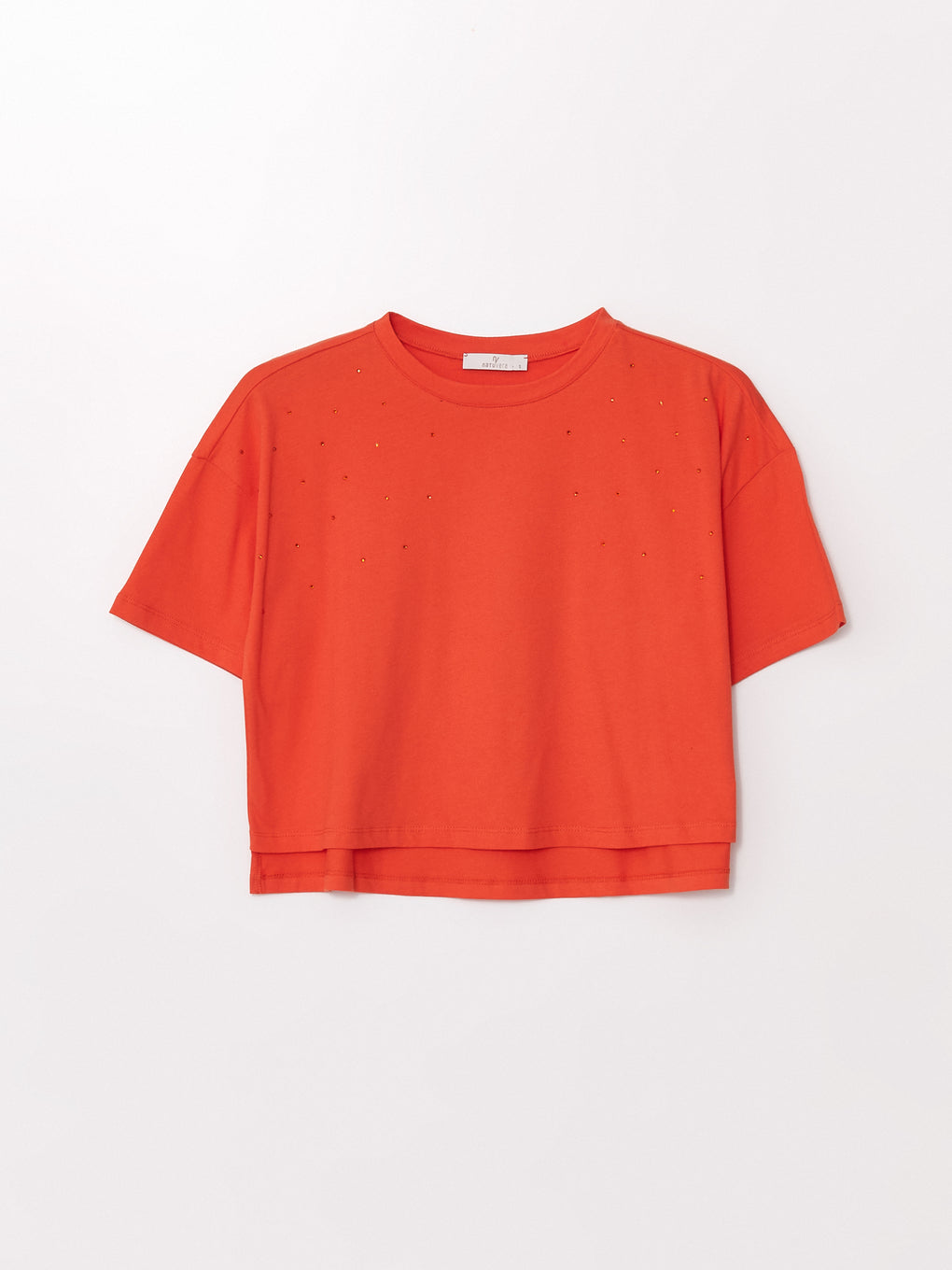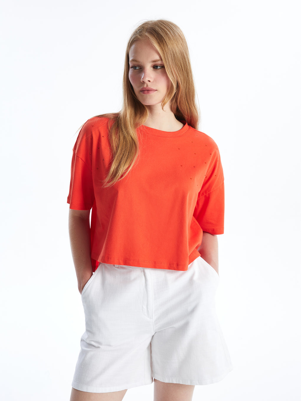Crew Neck Stone Printed Short Sleeve Women's Crop