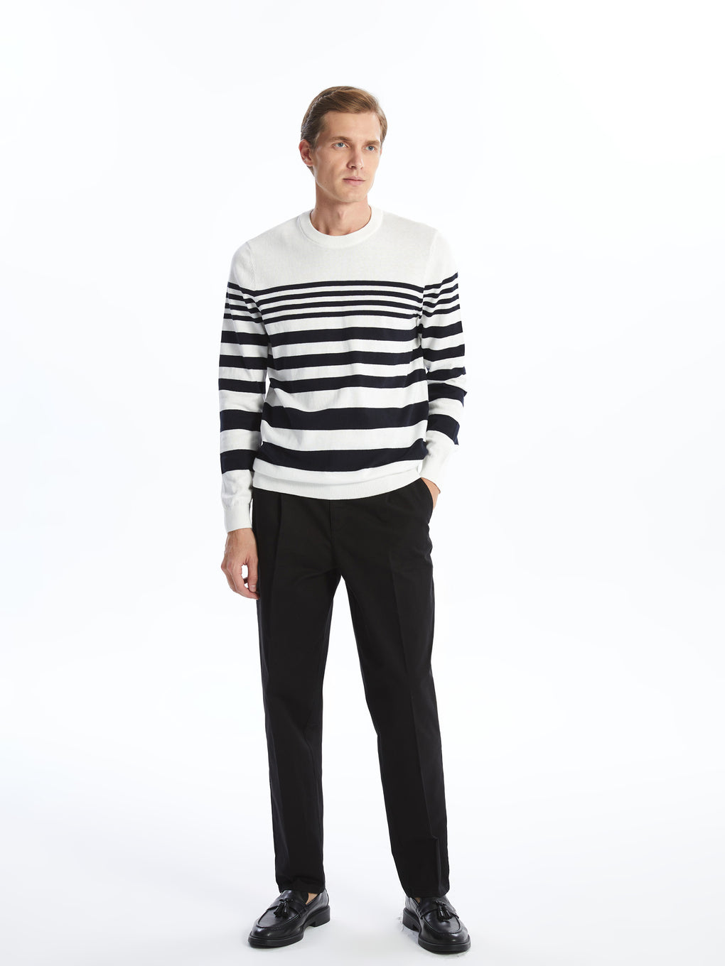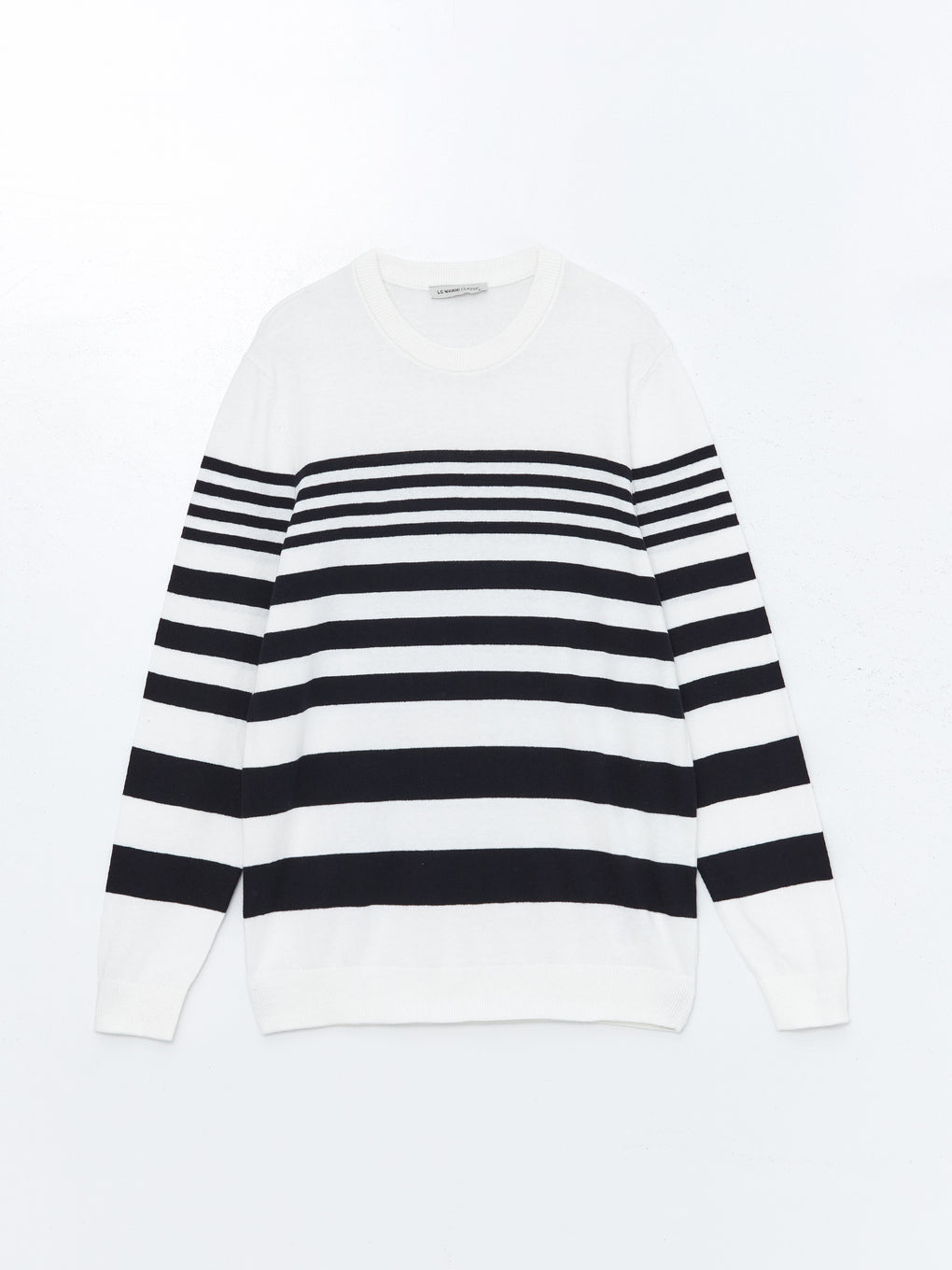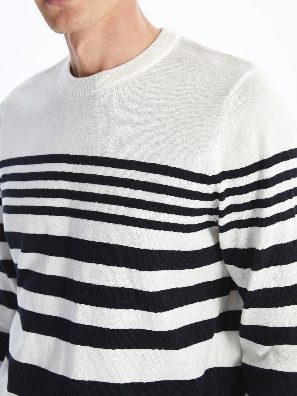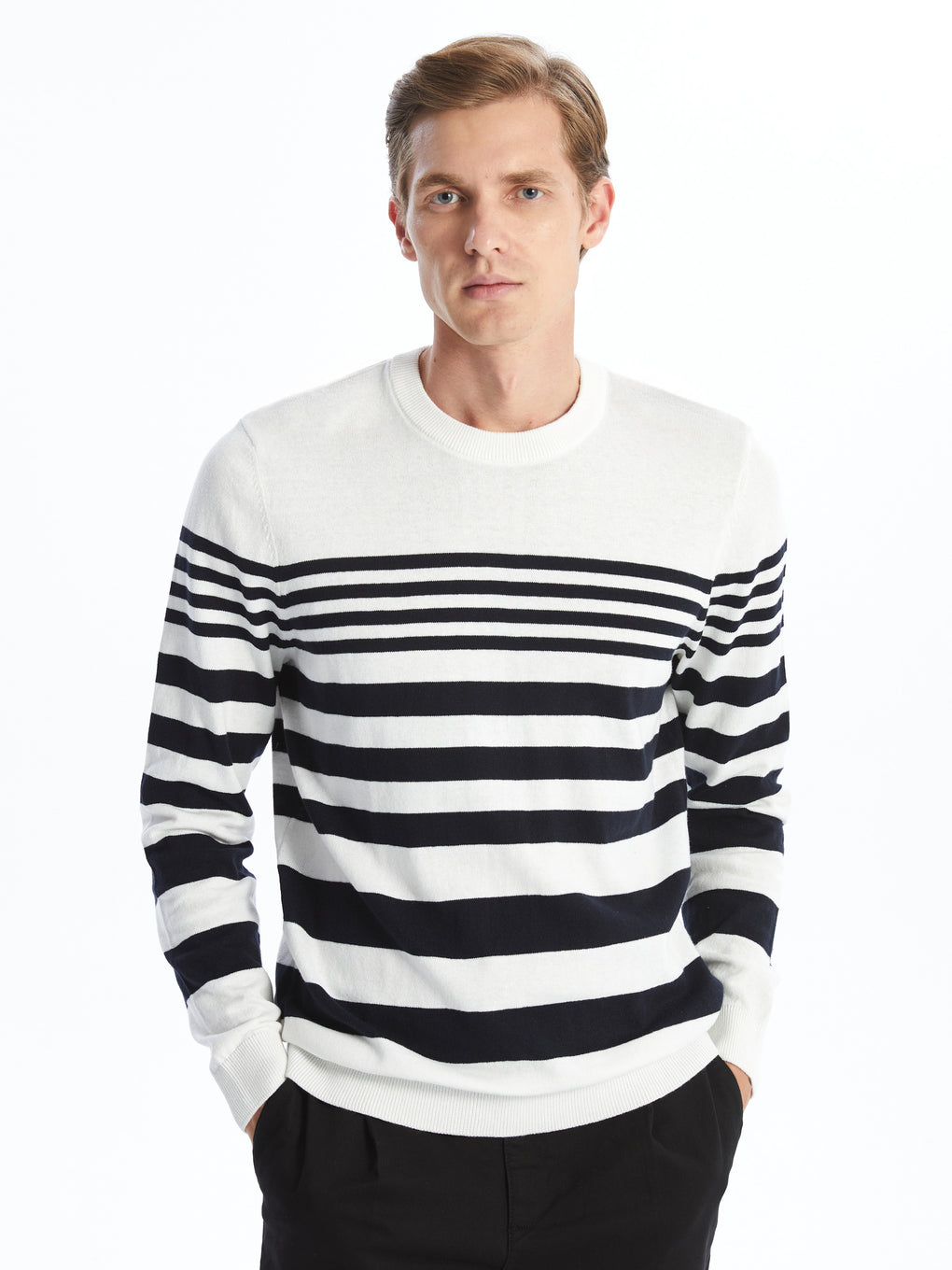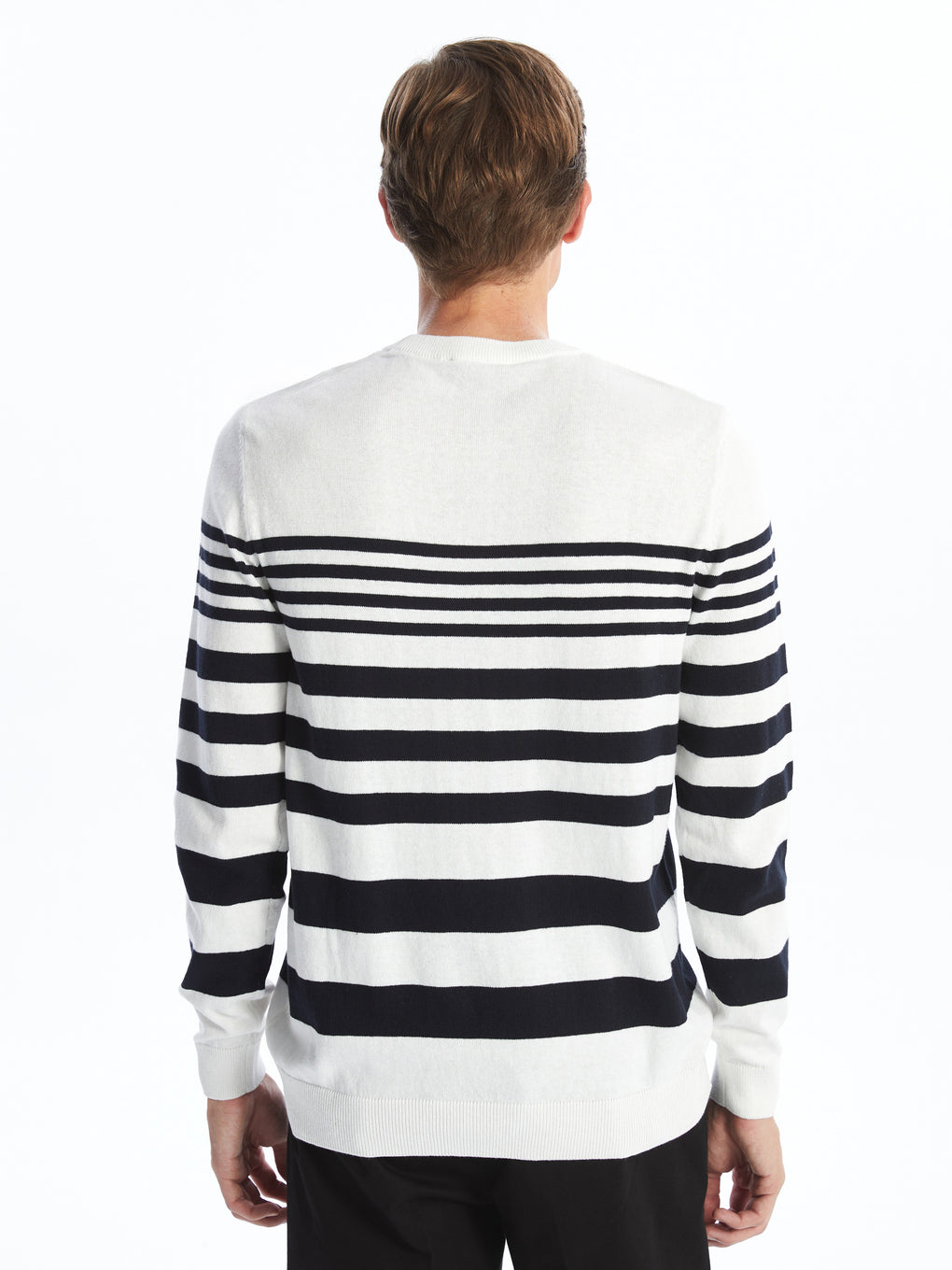Crew Neck Long Sleeve Striped Men's Tricot Sweater