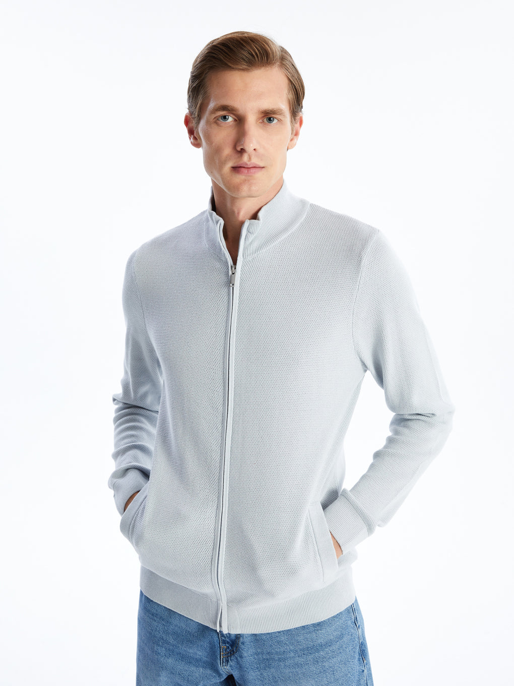 Standard Fit Turtle Neck Men's Tricot Cardigan