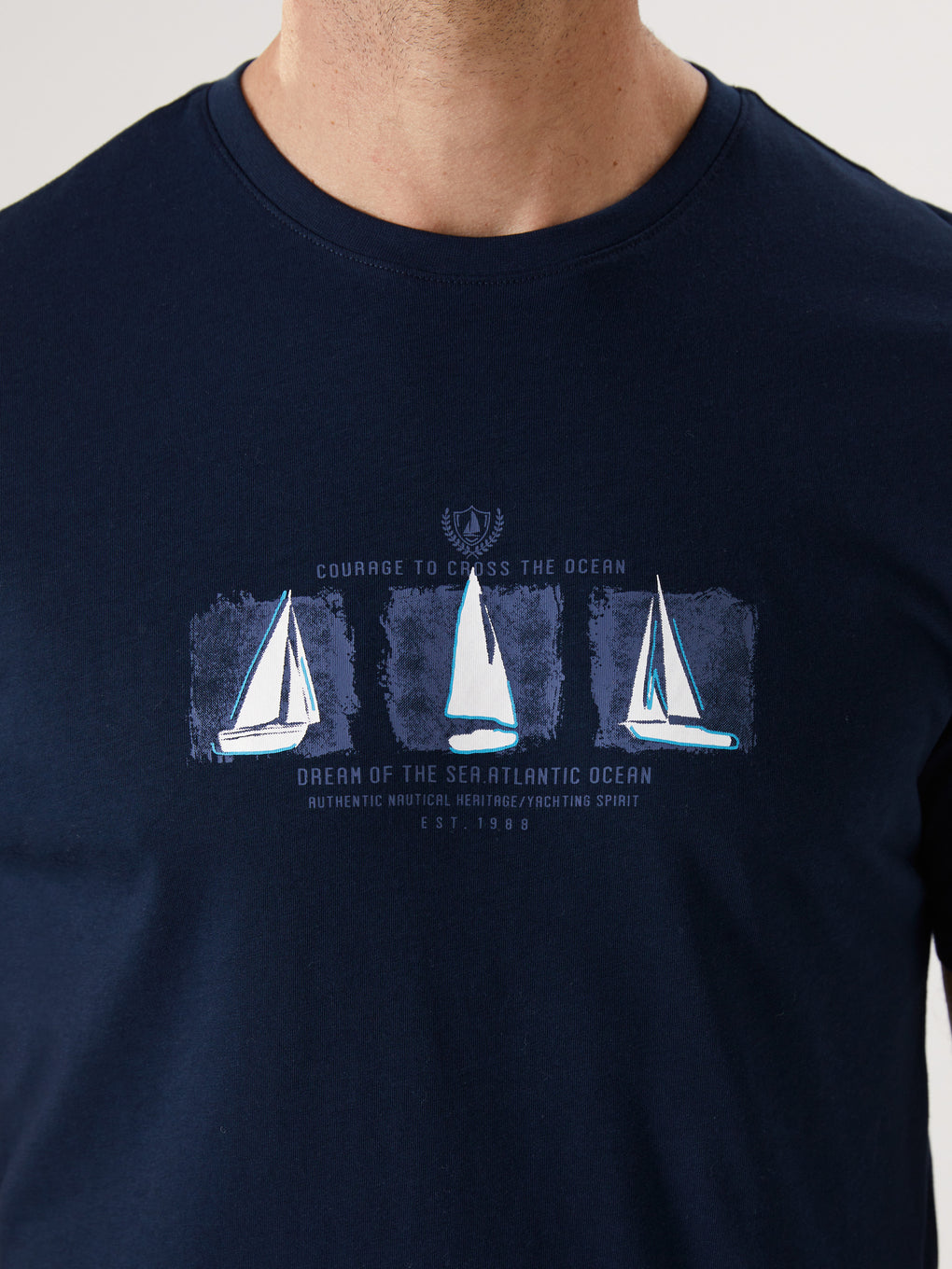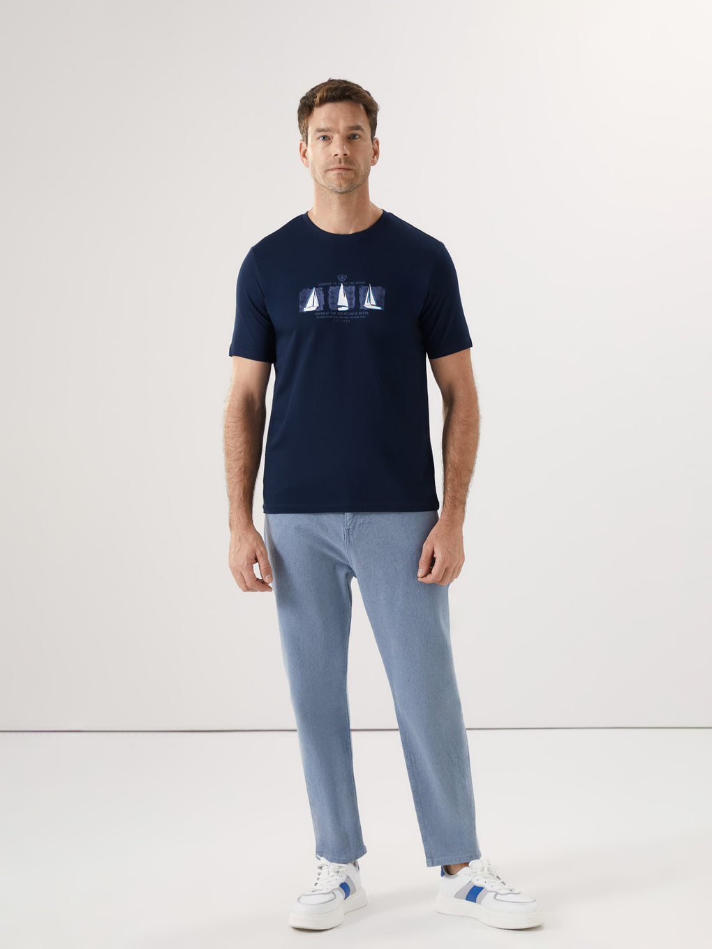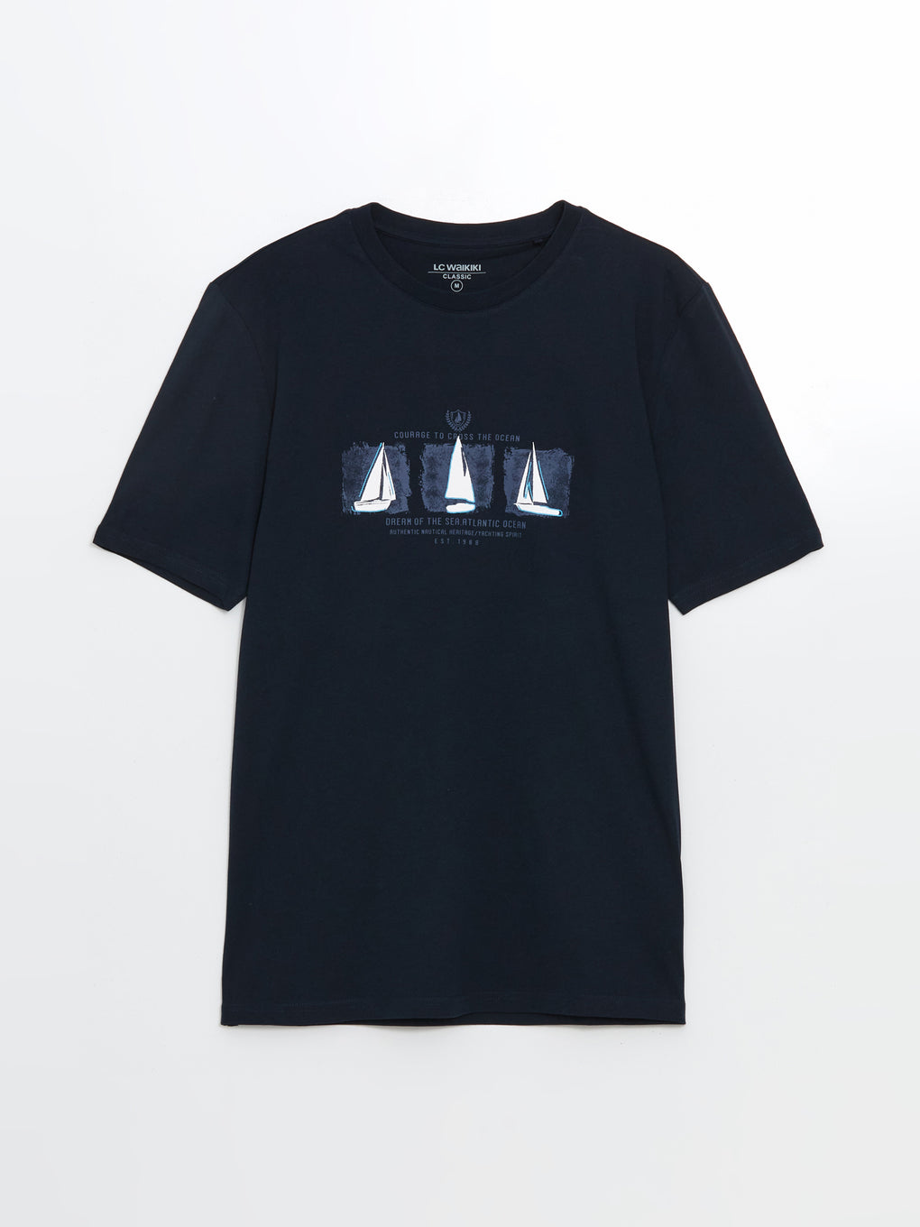 Crew Neck Short Sleeve Printed Combed Cotton Men's T-shirt