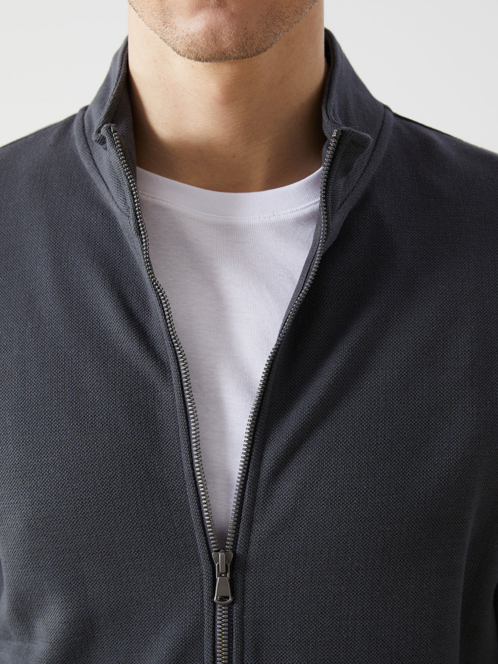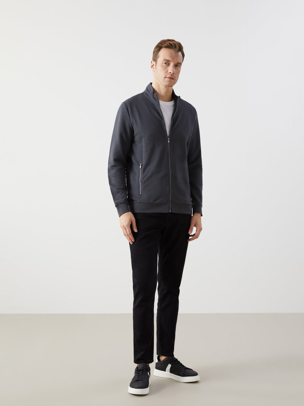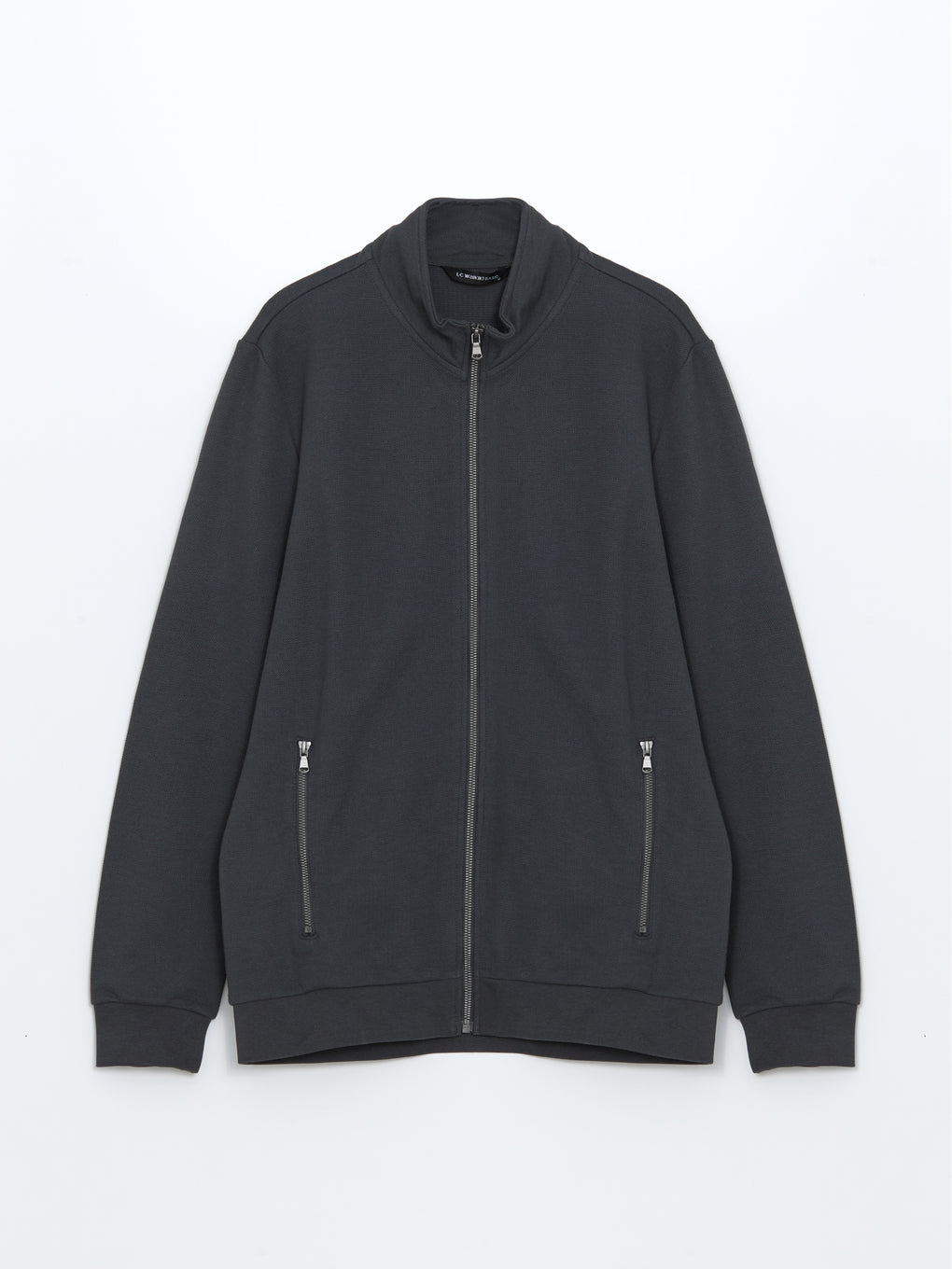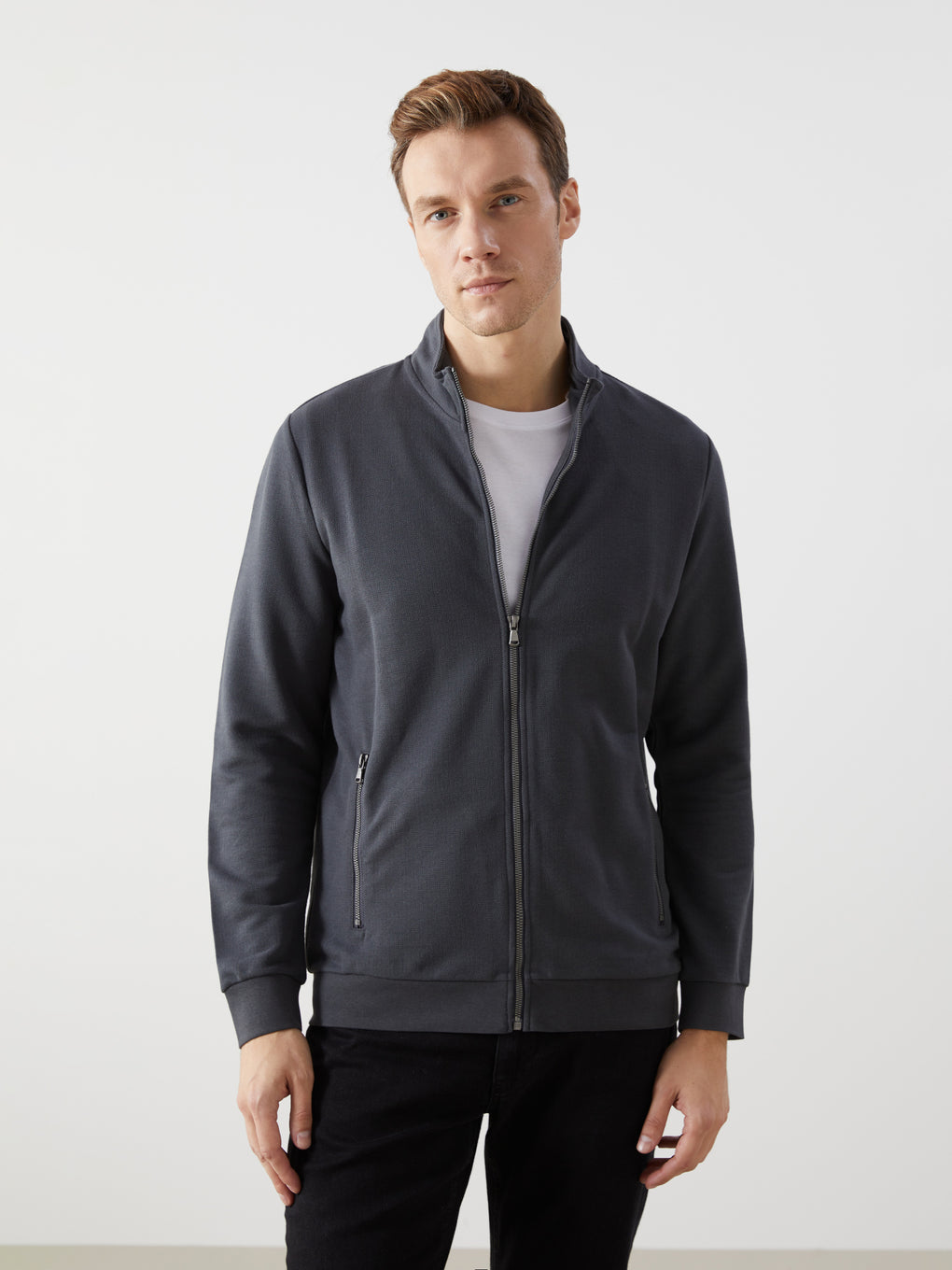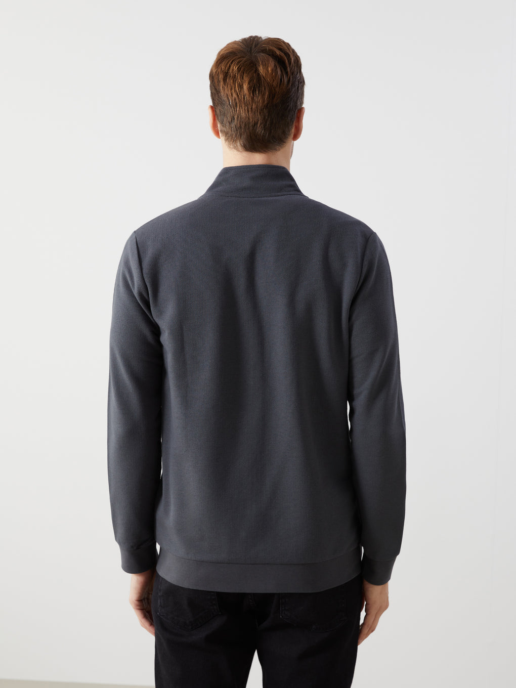 Stand Up Collar Long Sleeve Men's Zippered Sweatshirt