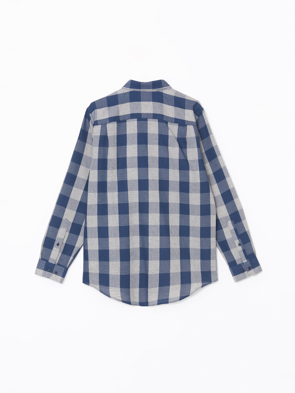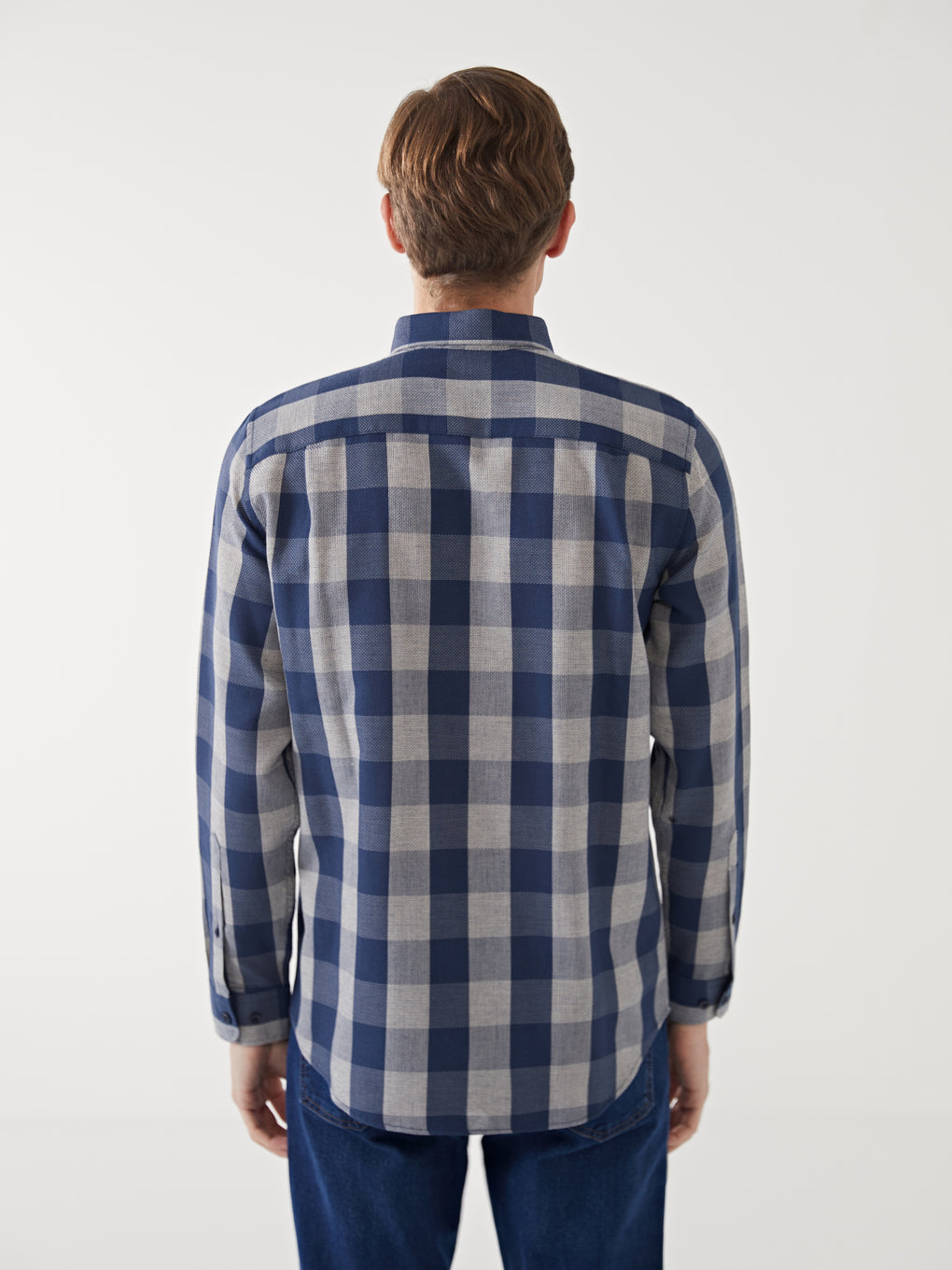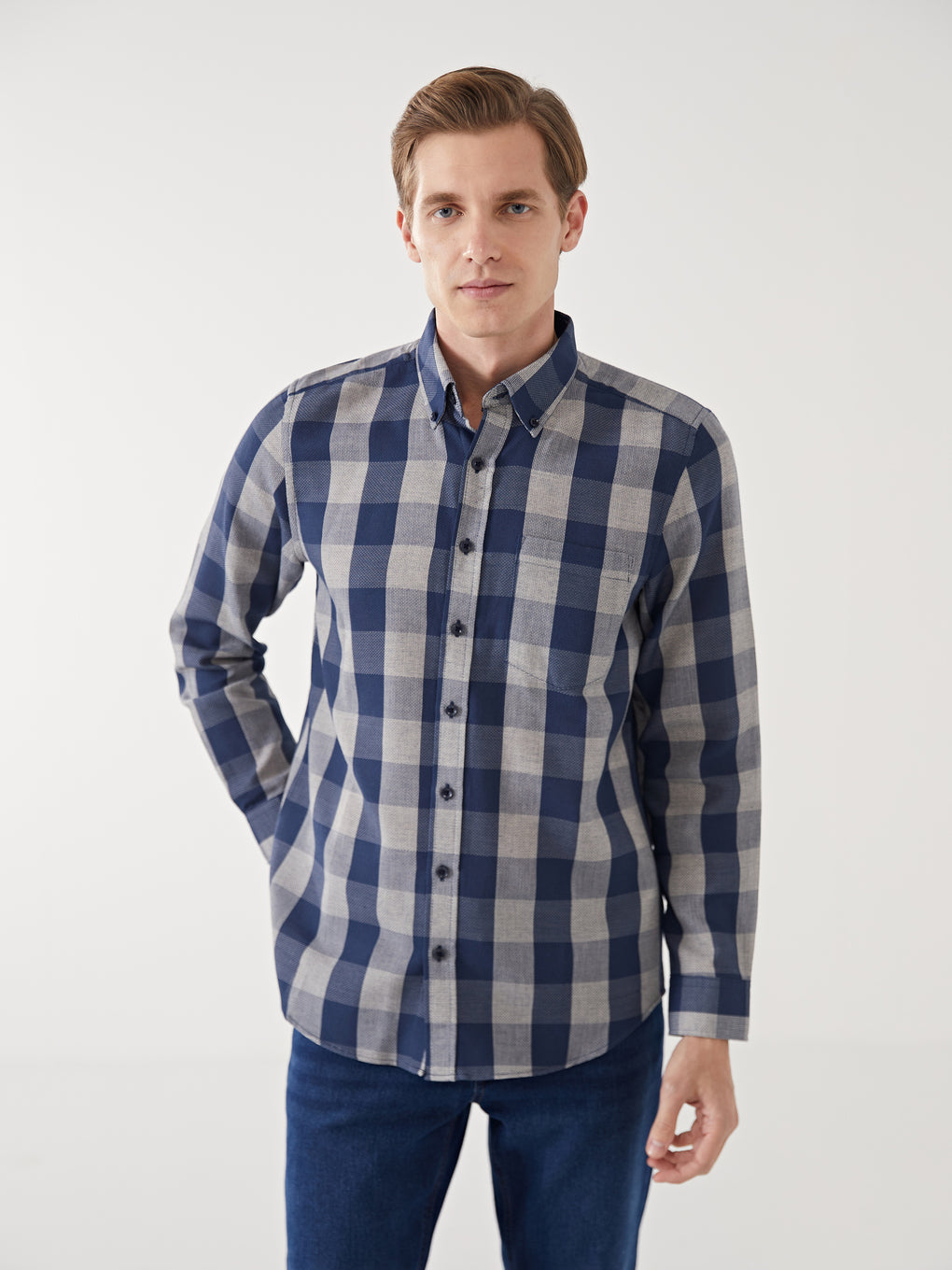 Regular Fit Long Sleeve Plaid Dobby Men's Shirt