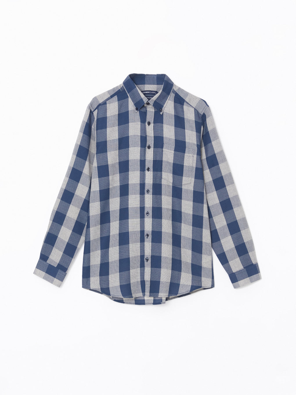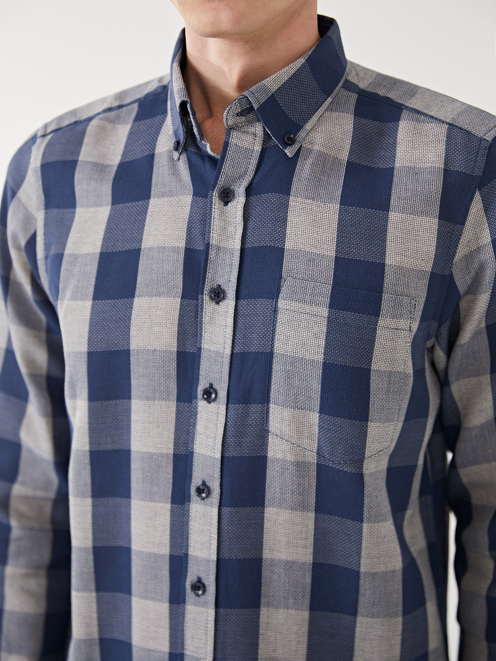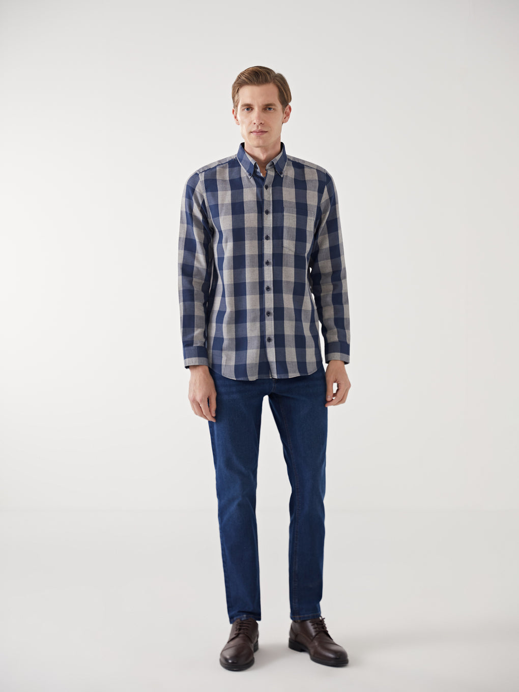 Regular Fit Long Sleeve Plaid Dobby Men's Shirt
