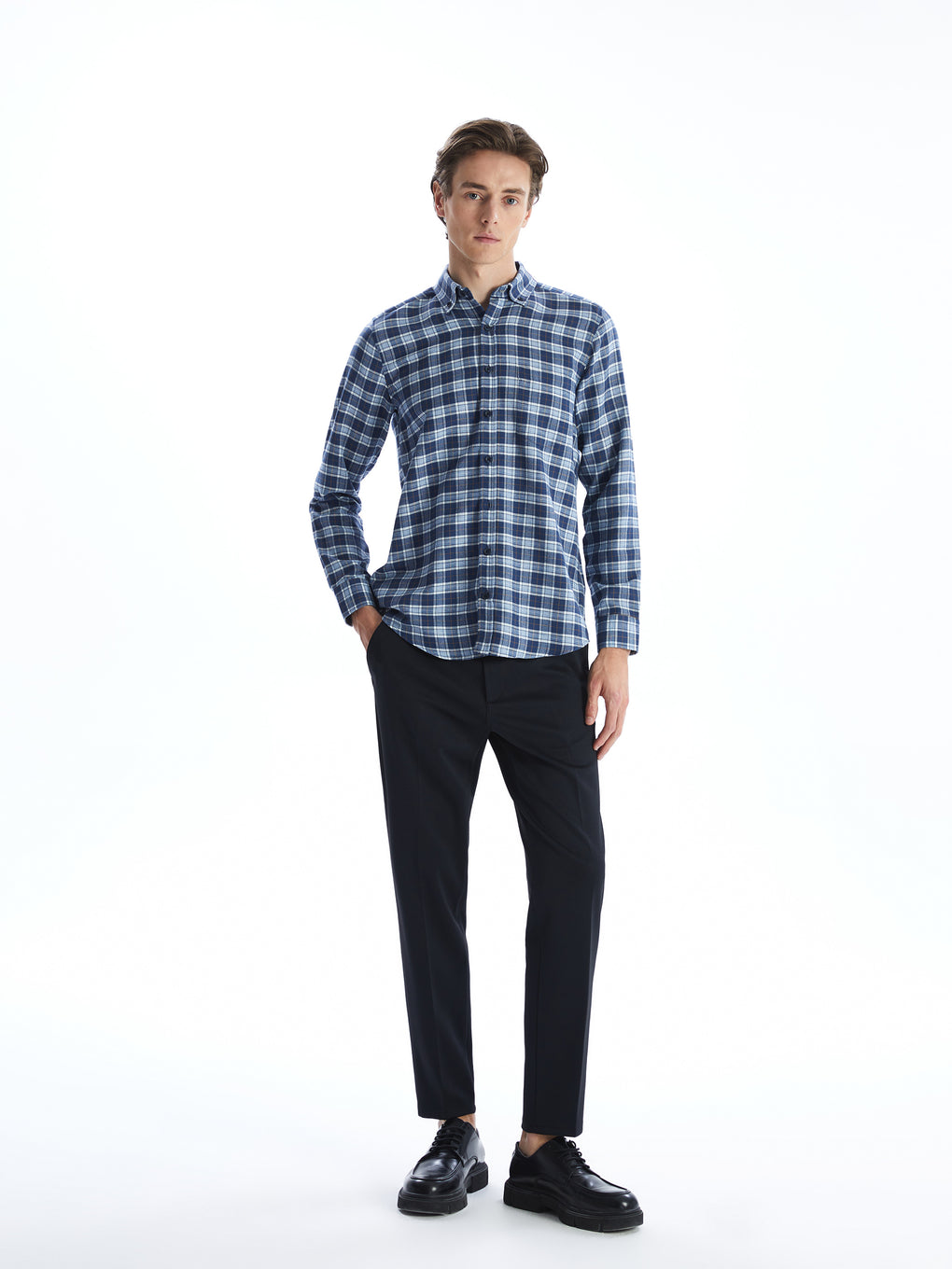 Regular Fit Long Sleeve Plaid Gabardine Men's Shirt