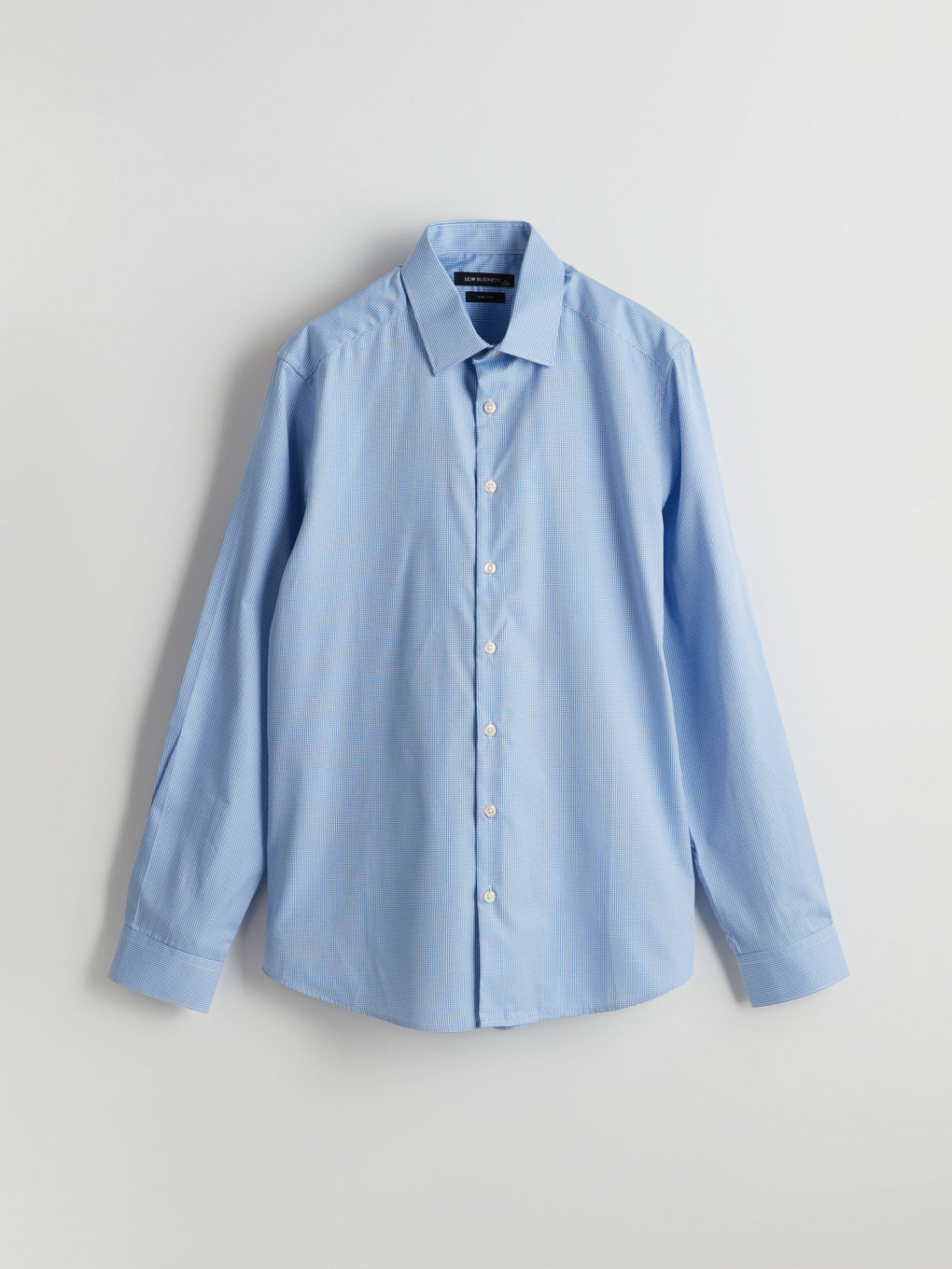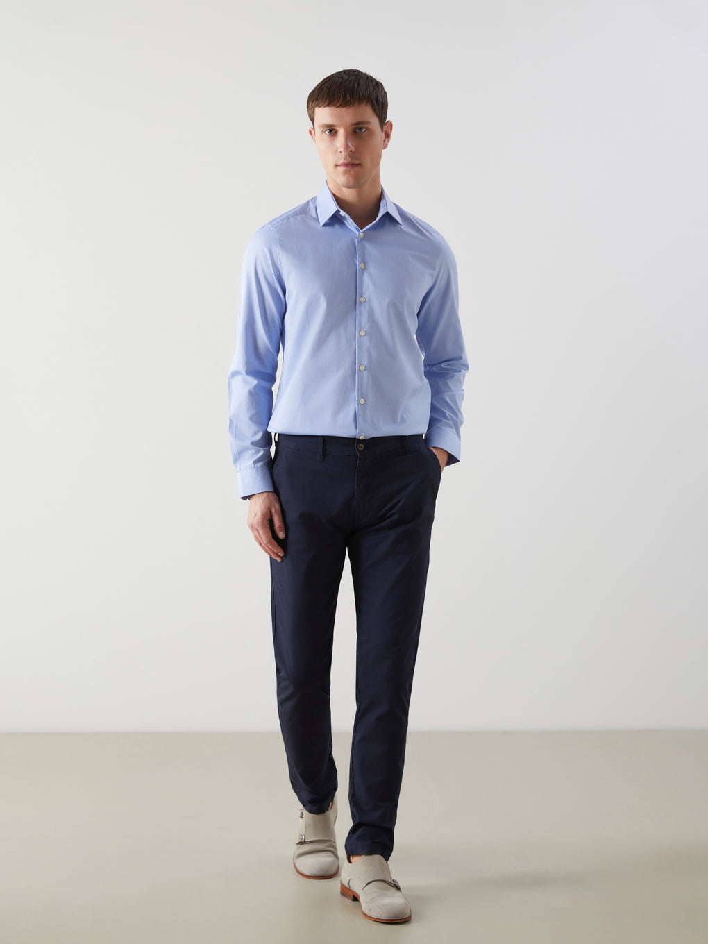 Slim Fit Long Sleeve Plaid Gabardine Men's Shirt