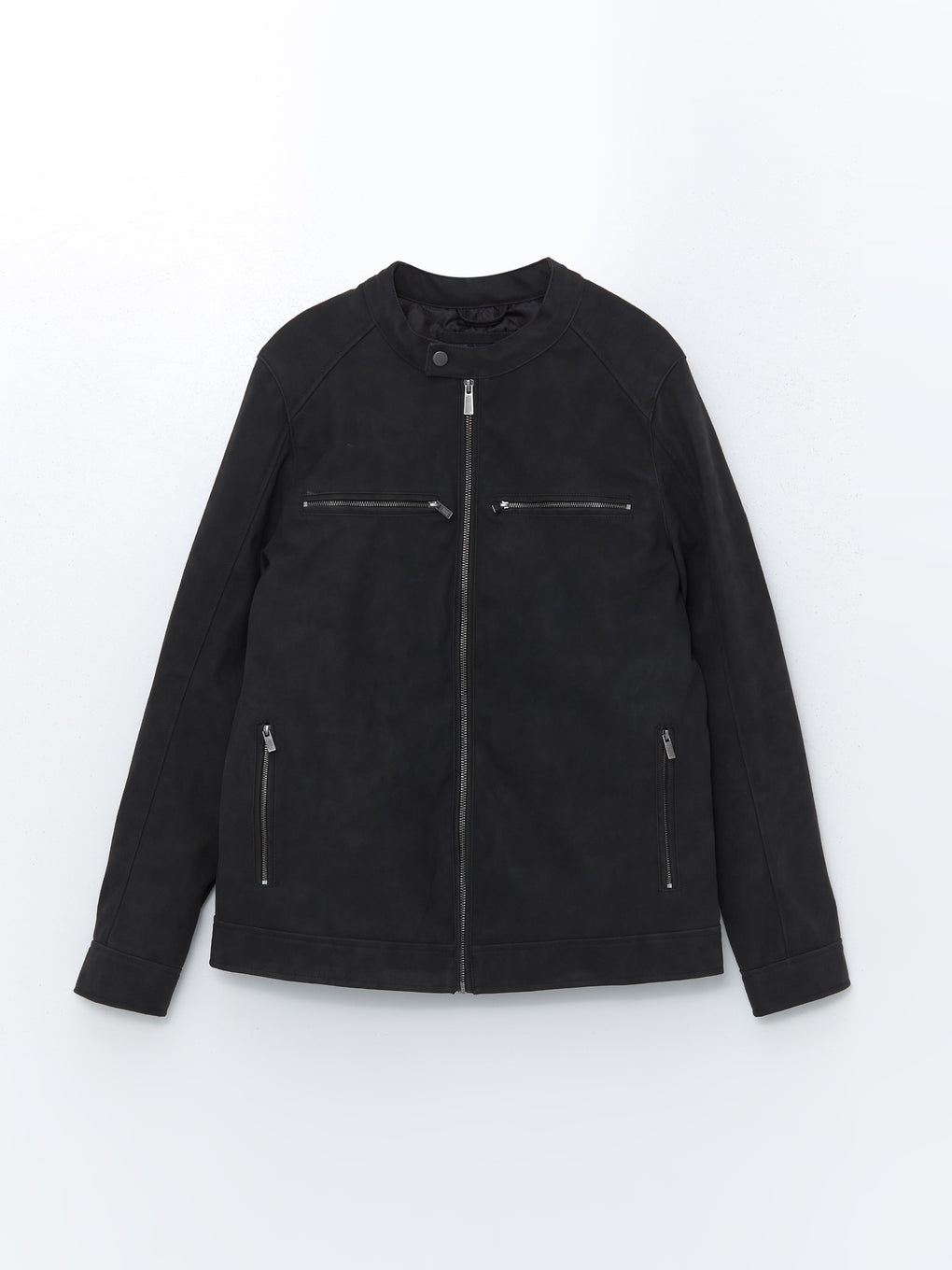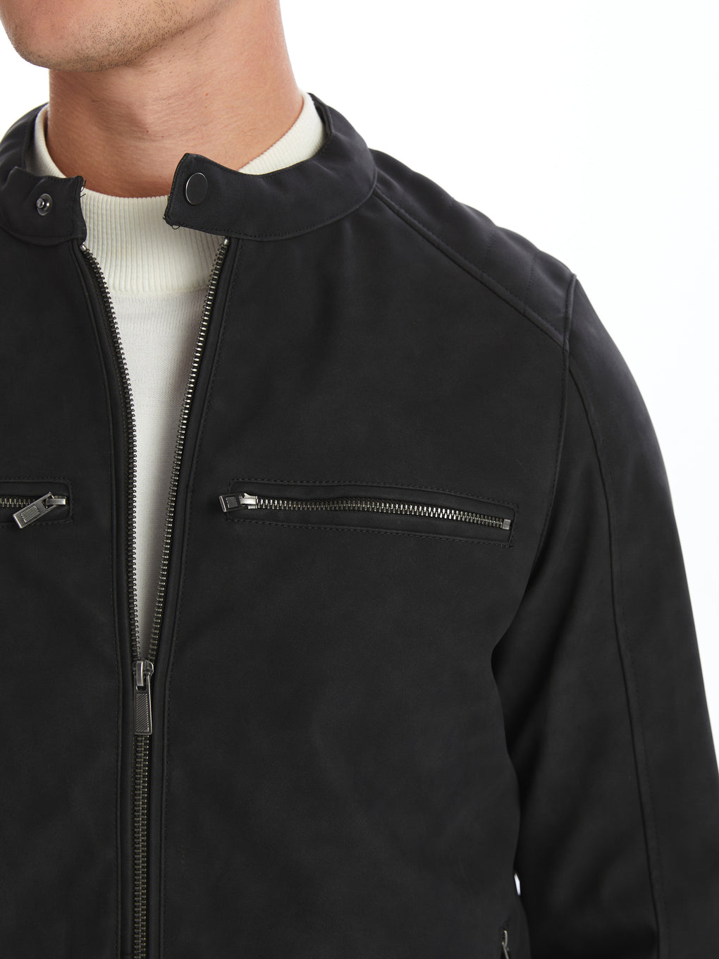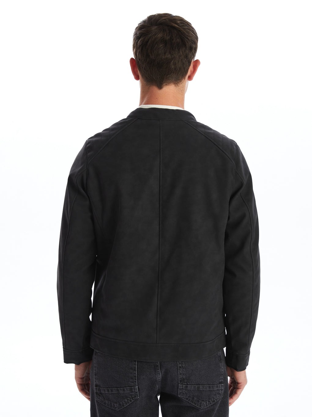 Slim Fit Biker Collar Men's Faux Leather Jacket