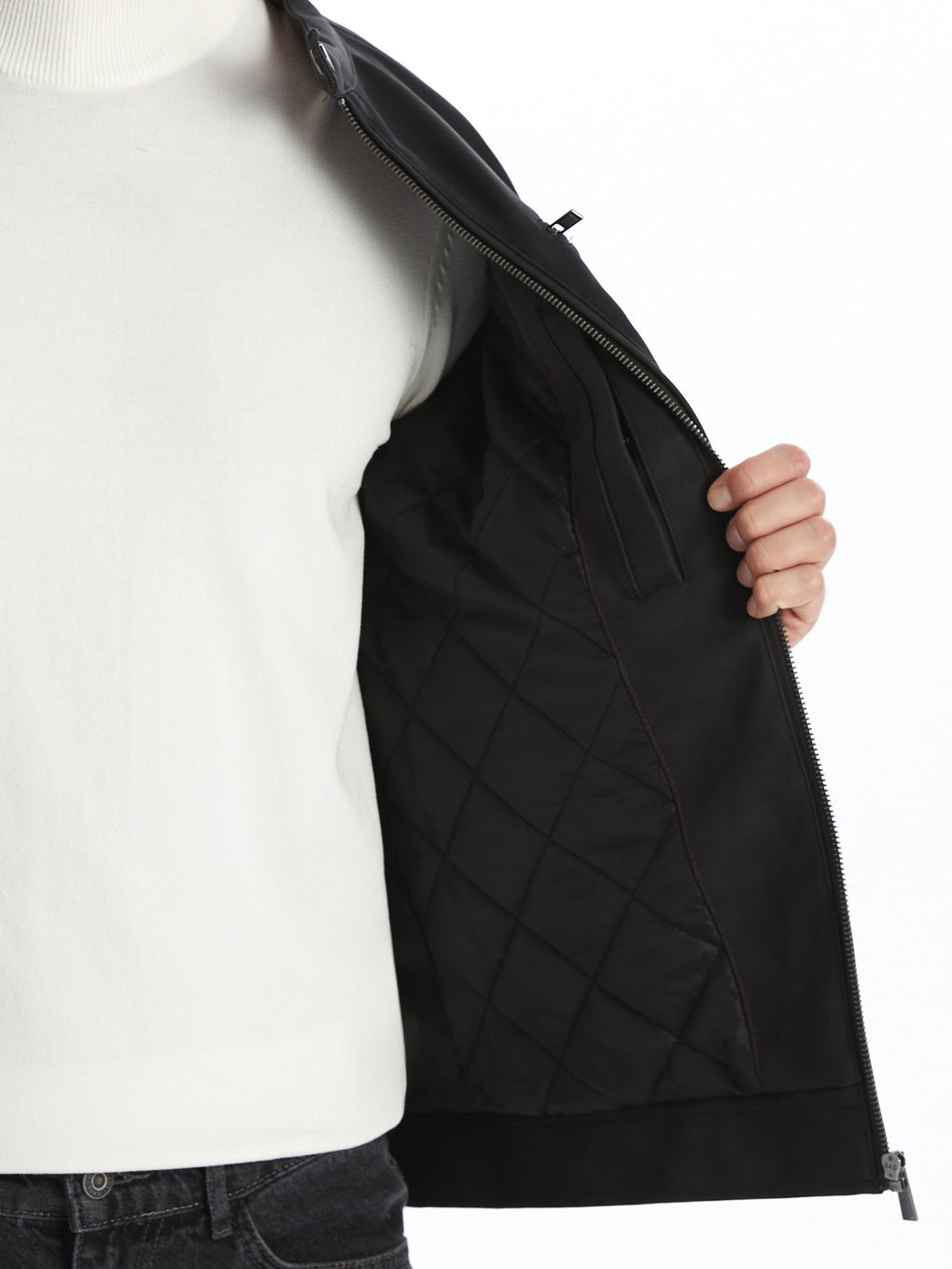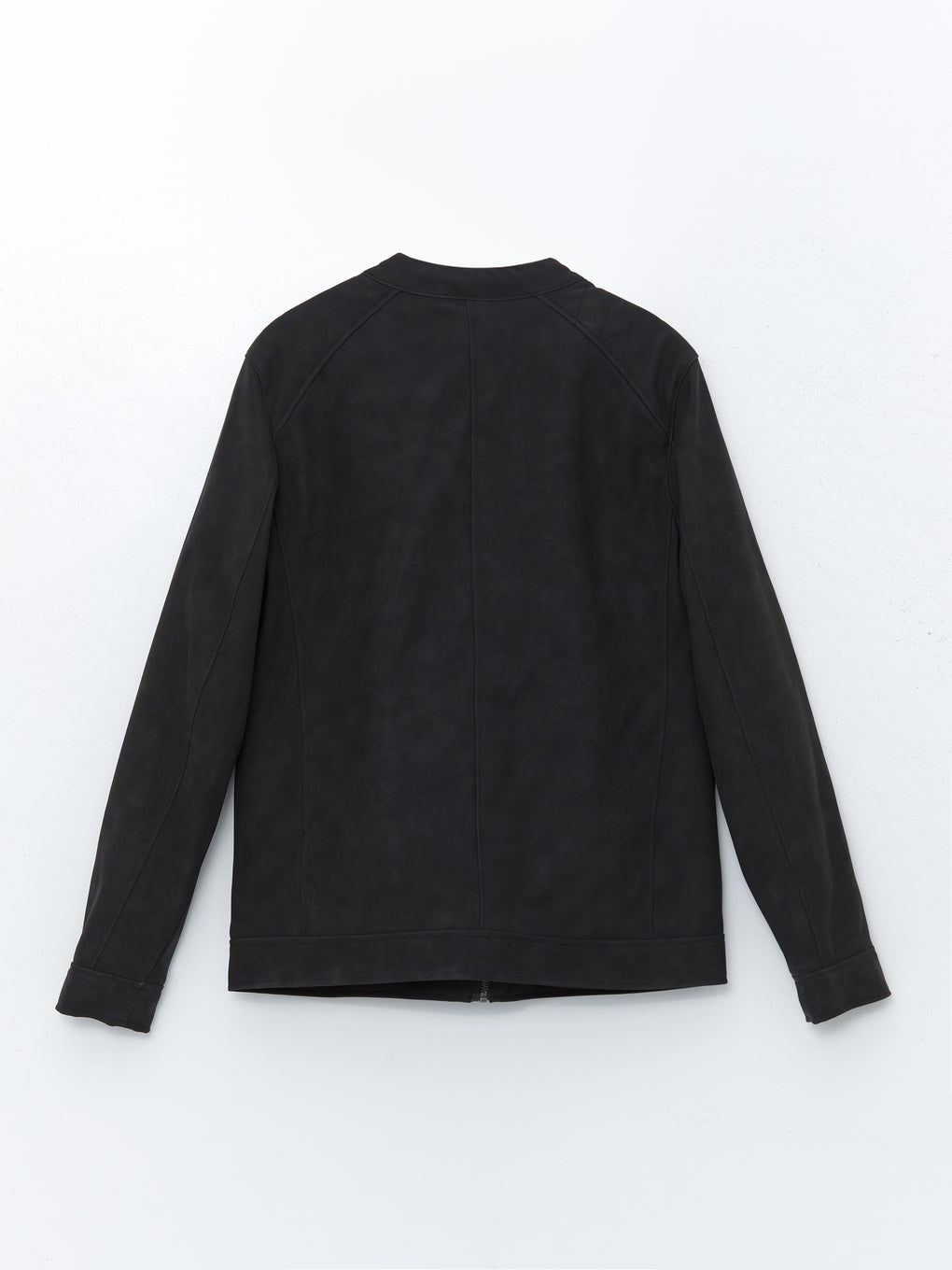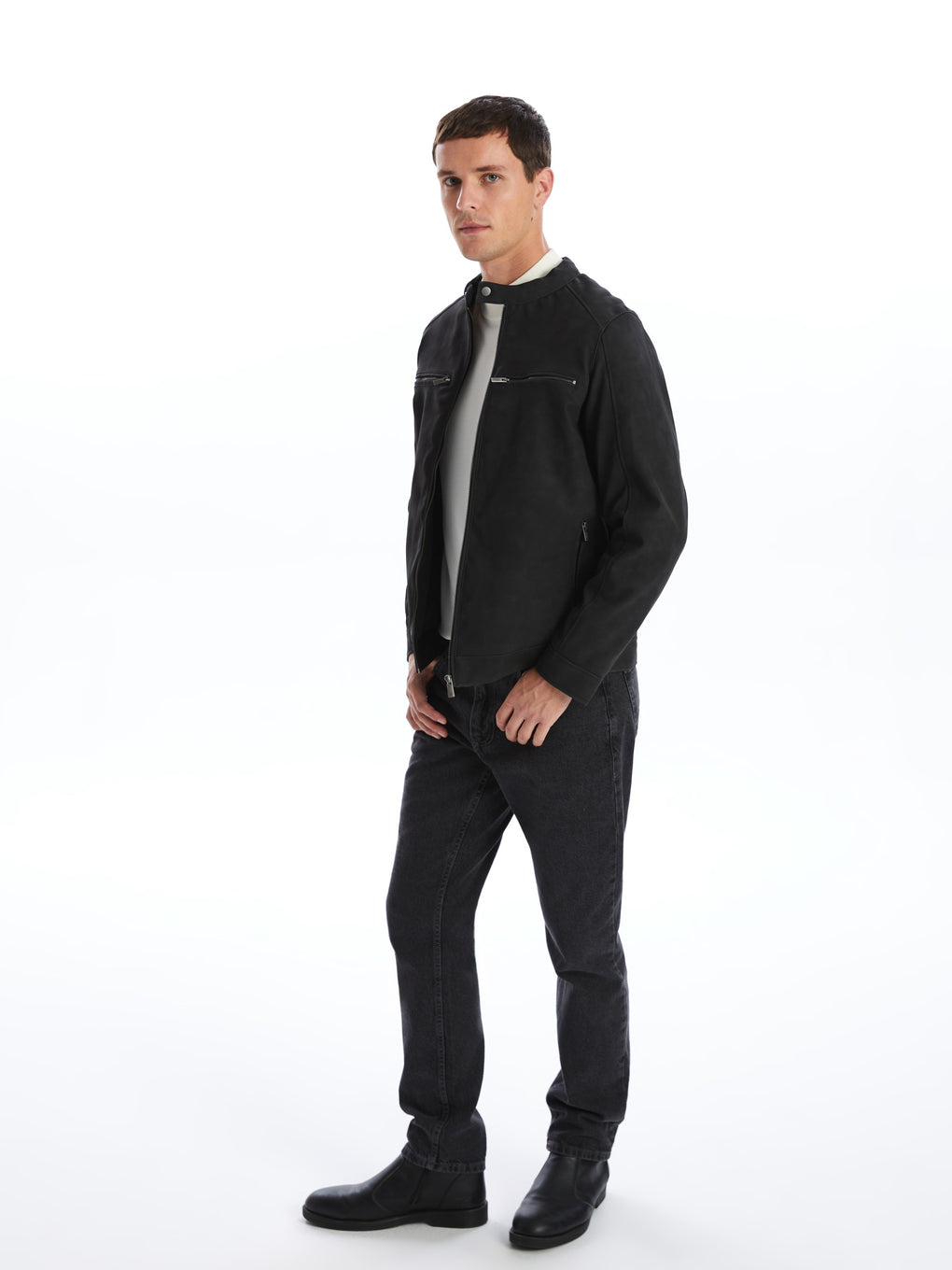 Slim Fit Biker Collar Men's Faux Leather Jacket