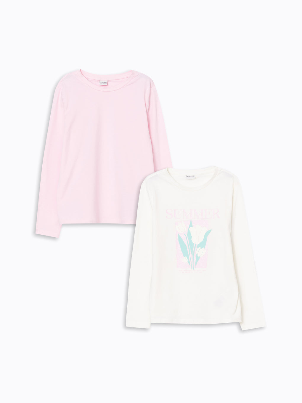 Crew Neck Girls' T-Shirt Set (2 Pieces)
