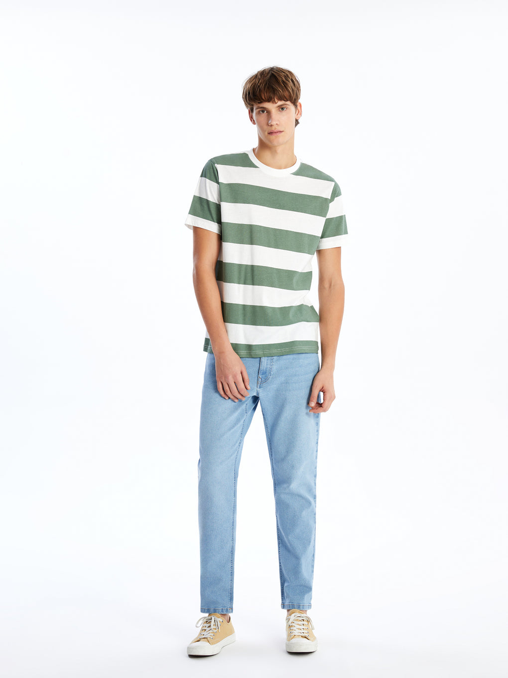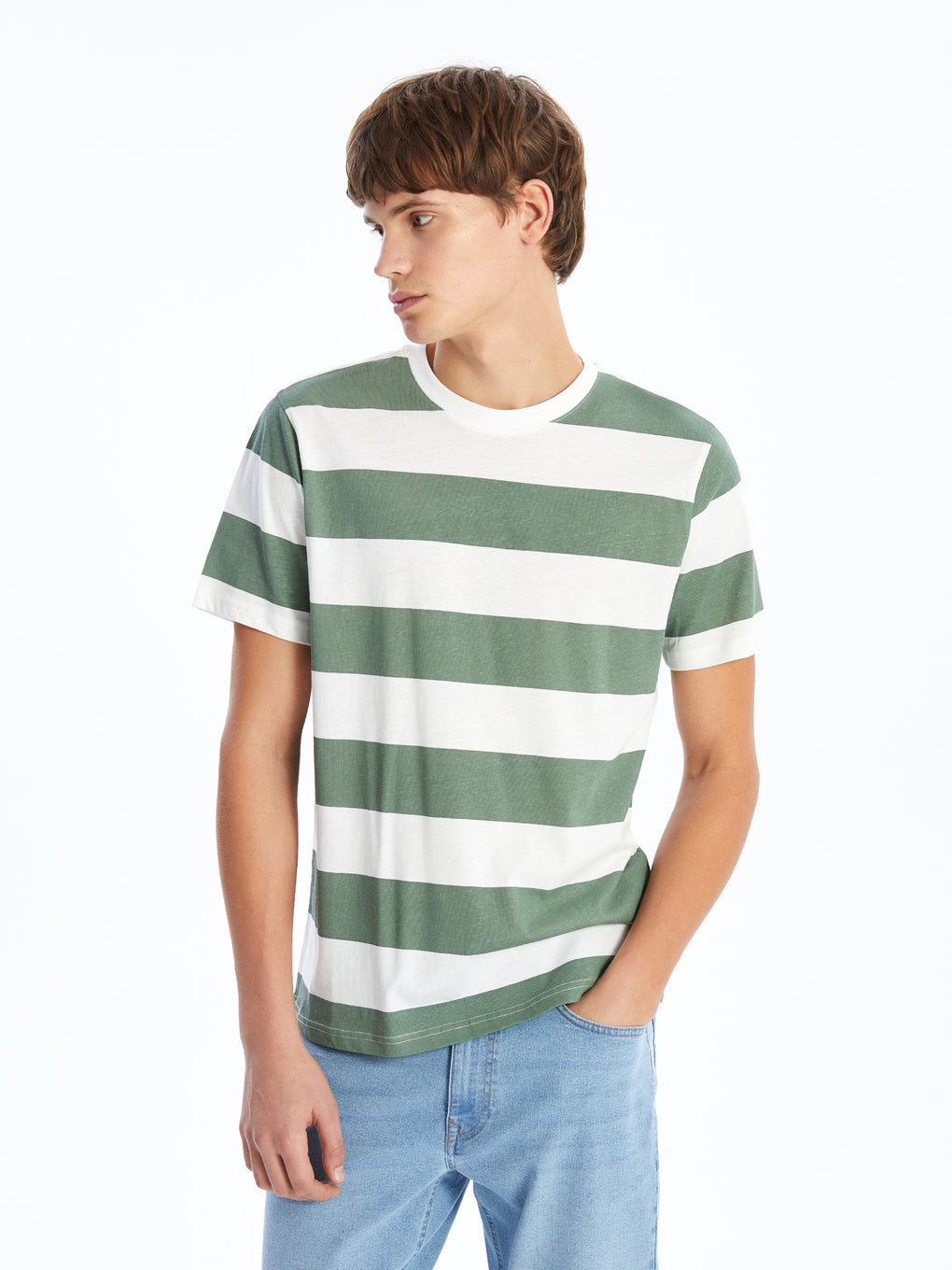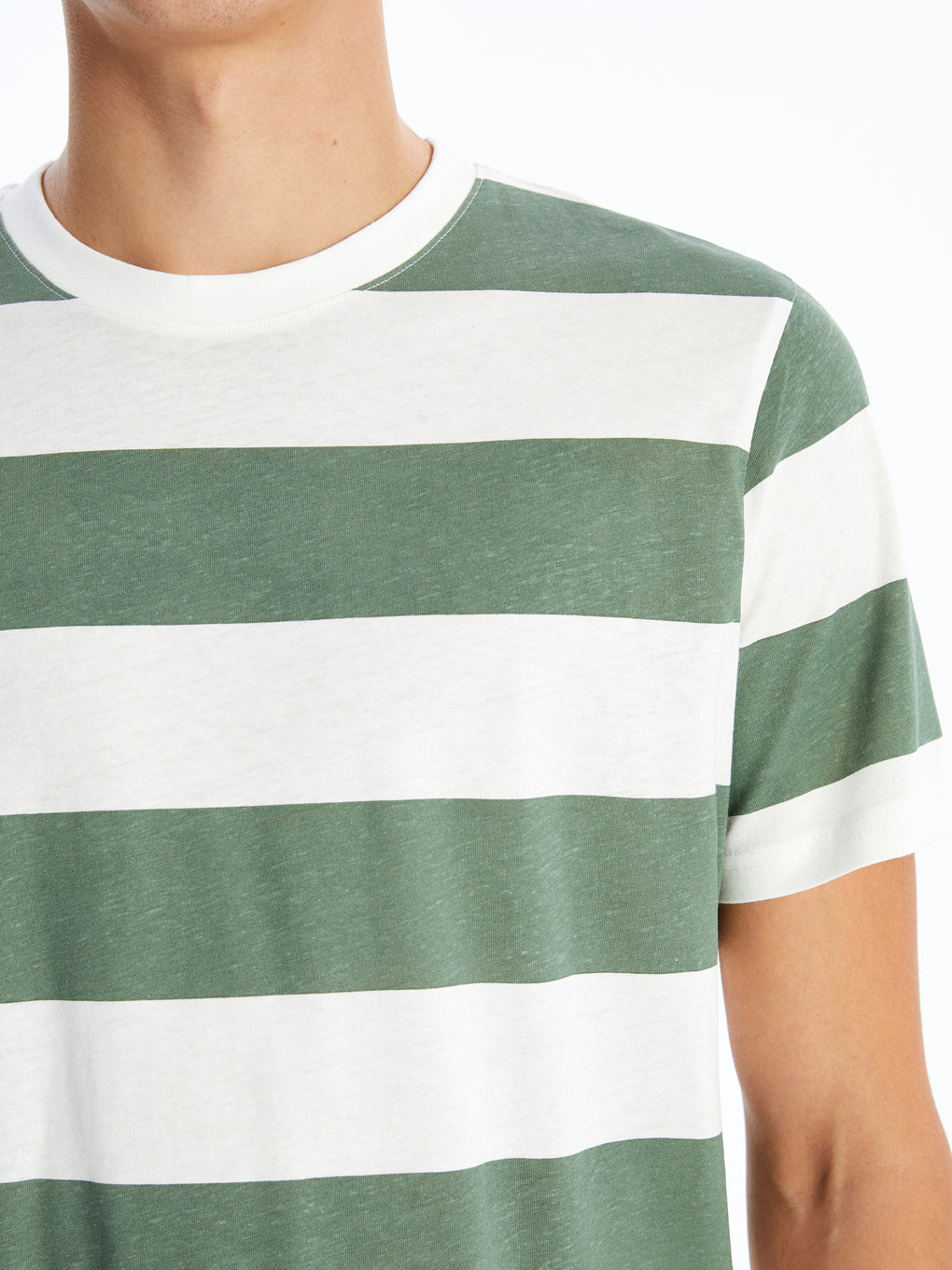 Crew Neck Short Sleeve Striped Combed Cotton Men's T-shirt