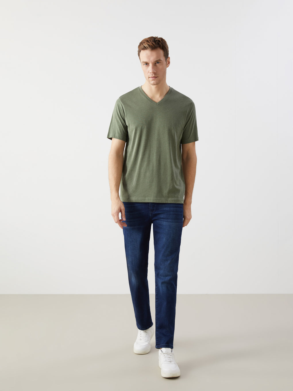 V Neck Short Sleeve Combed Cotton Men's T-shirt