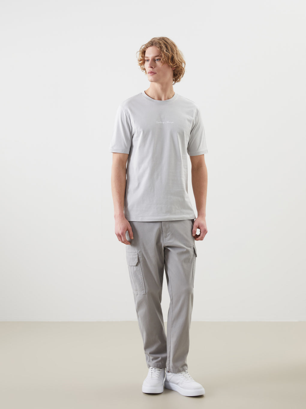 Crew Neck Short Sleeve Printed Combed Cotton Men's T-shirt