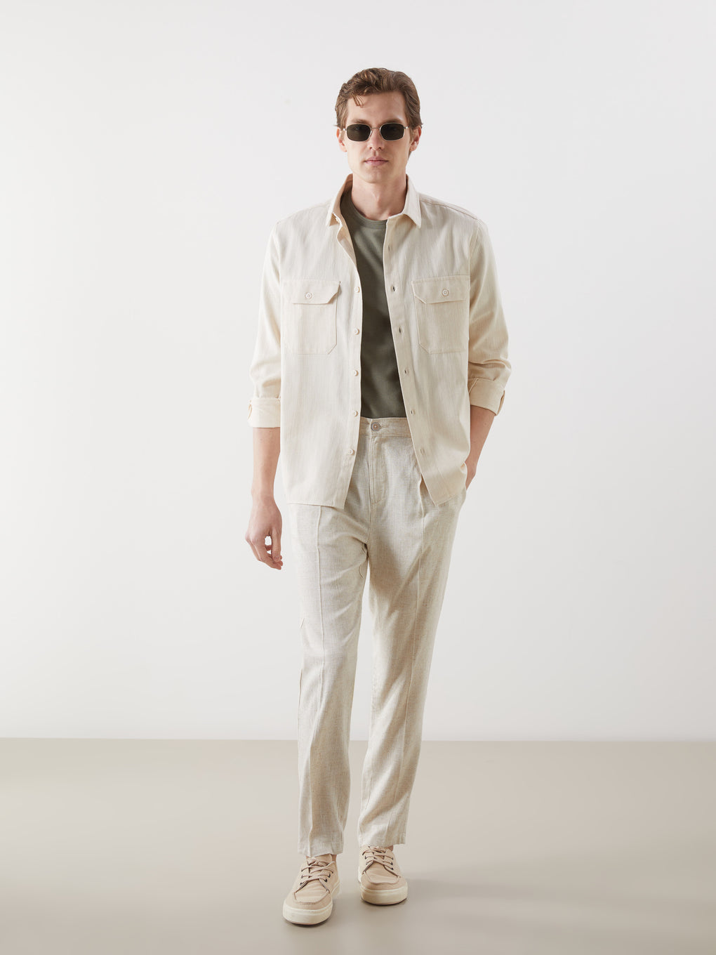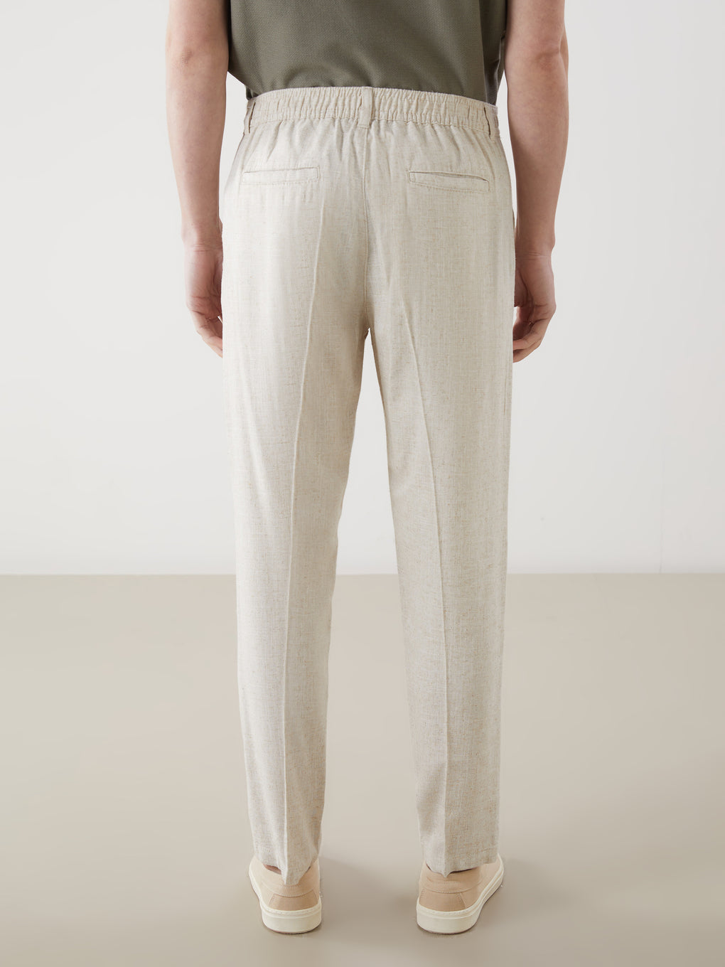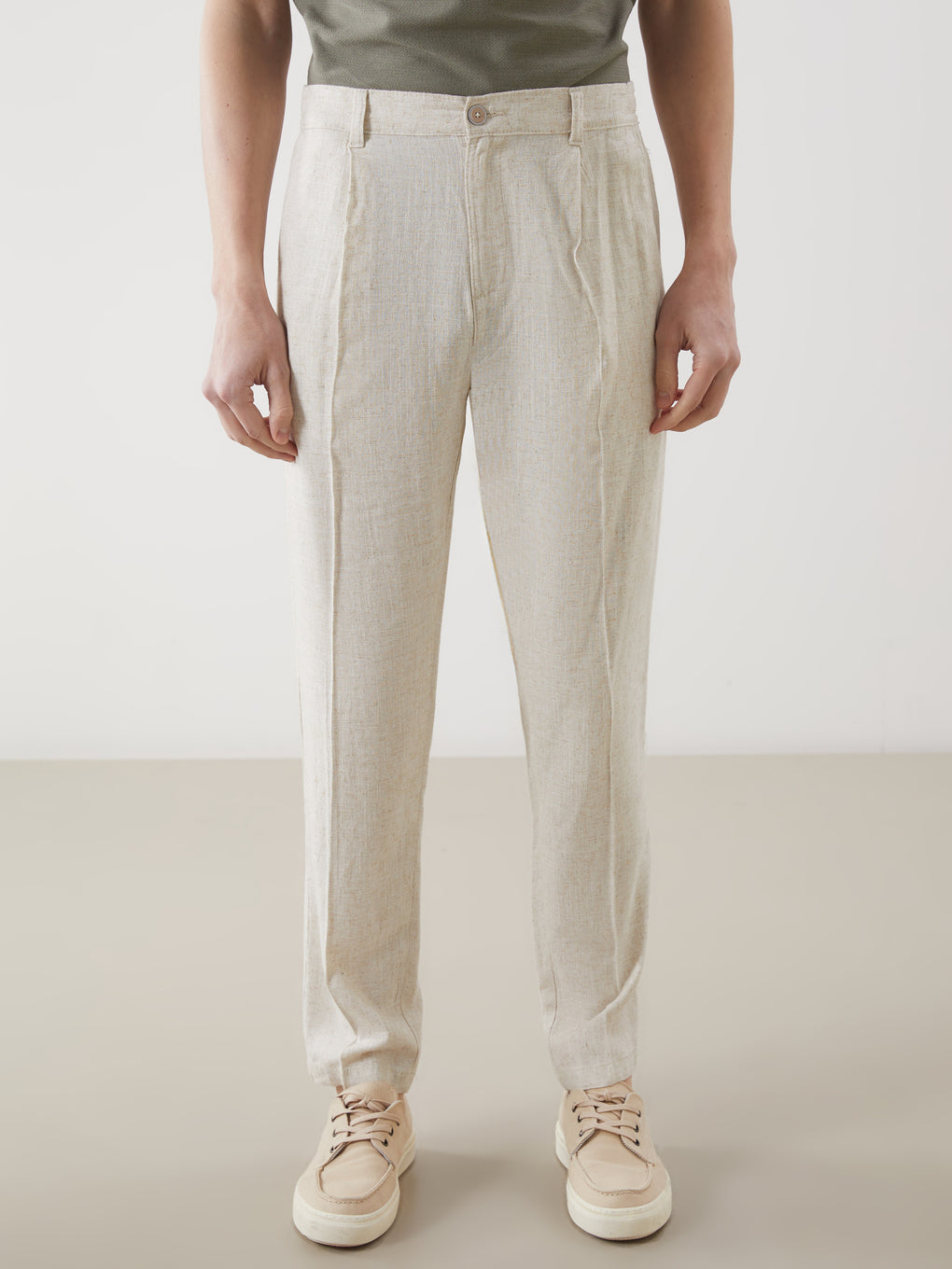 Standard Fit Linen Blend Men's Pleated Chino Trousers