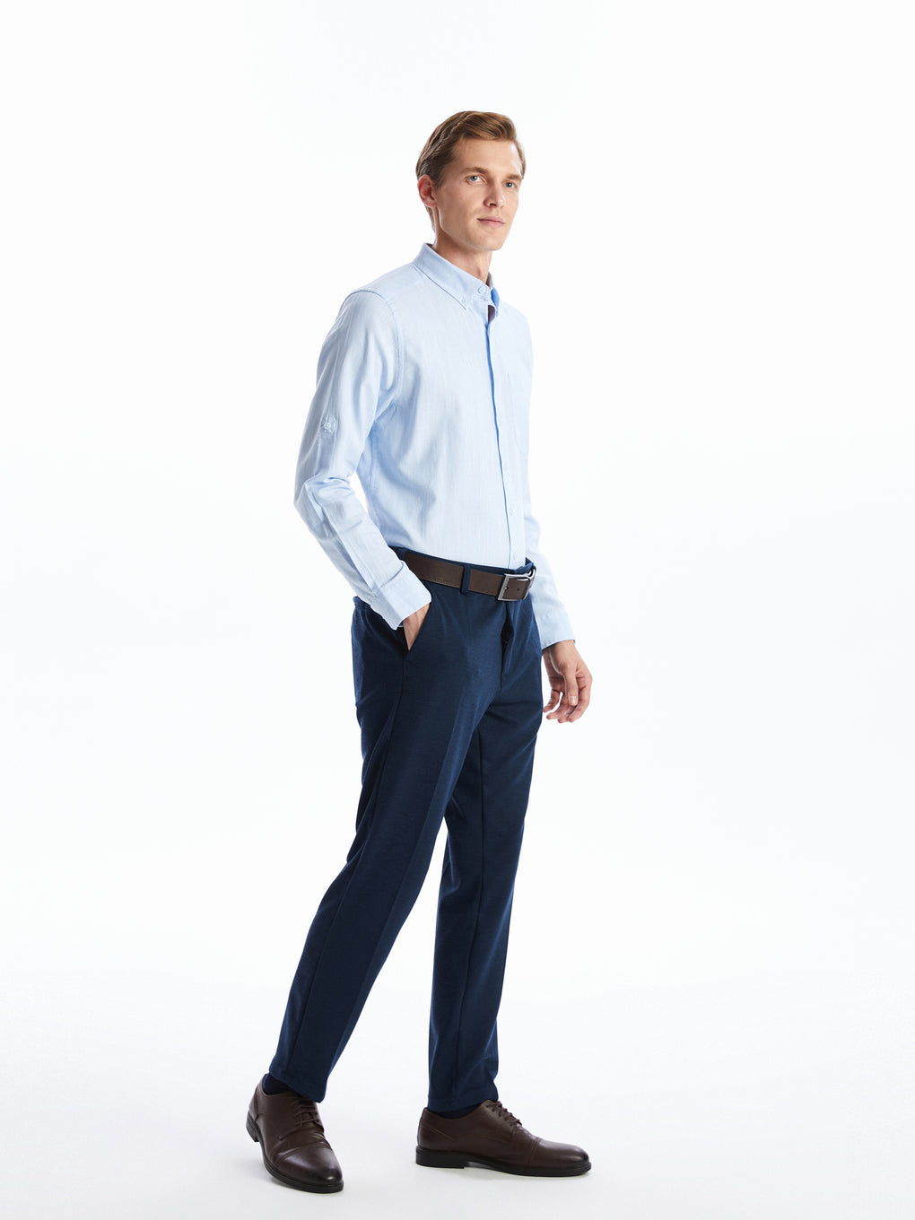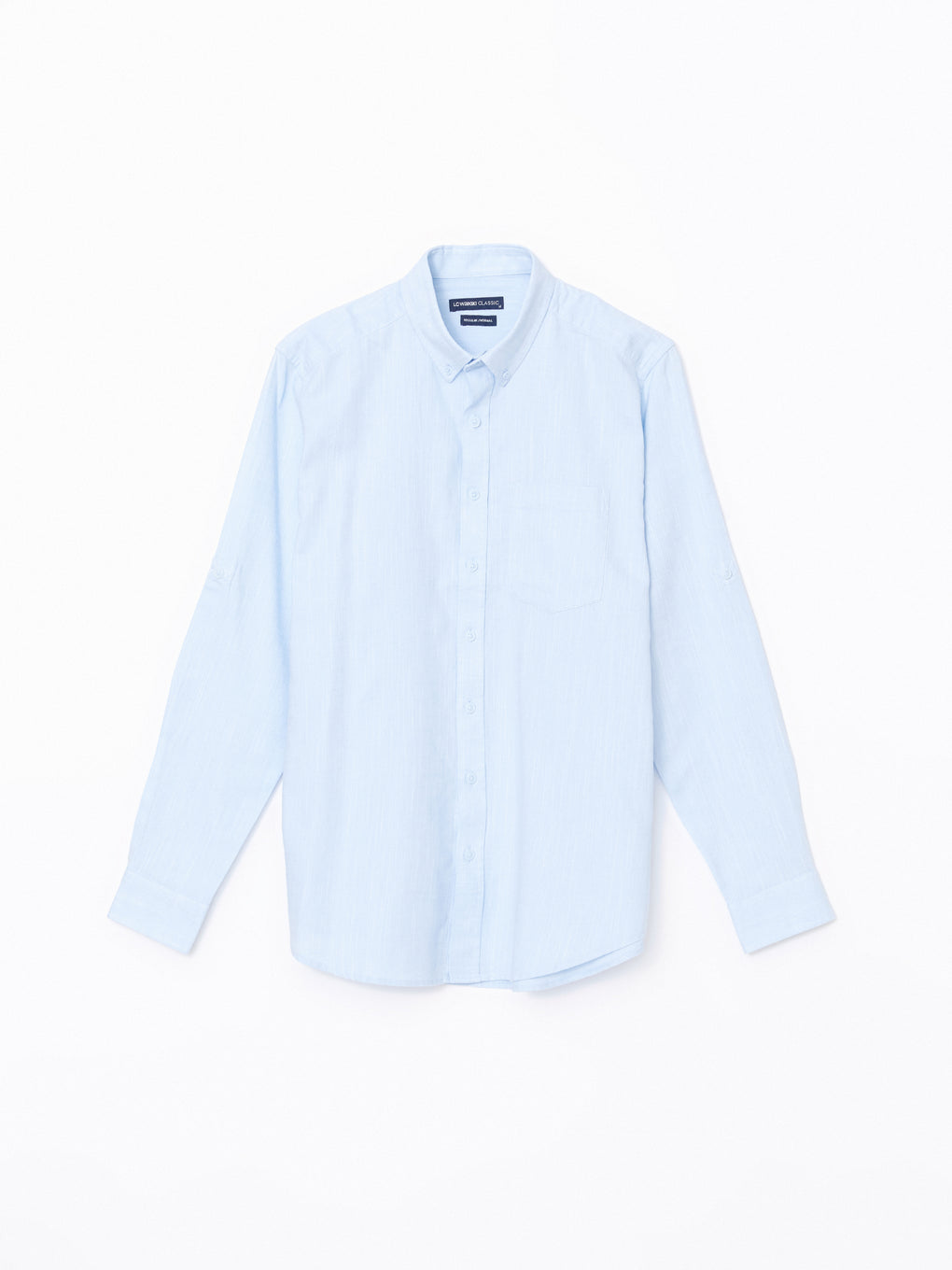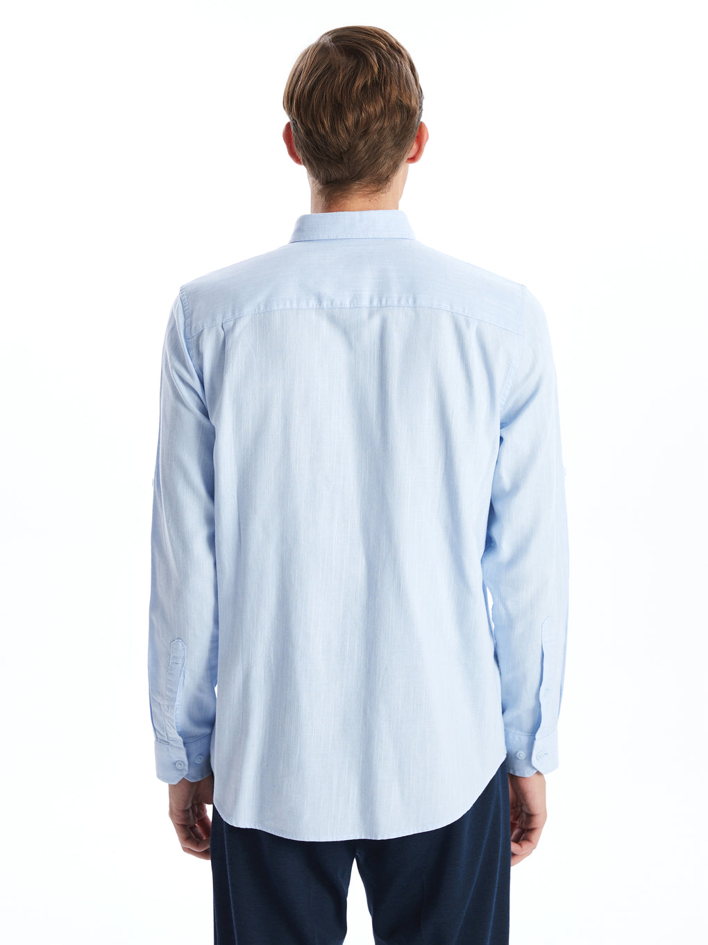 Regular Fit Long Sleeve Linen-Blend Men's Shirt
