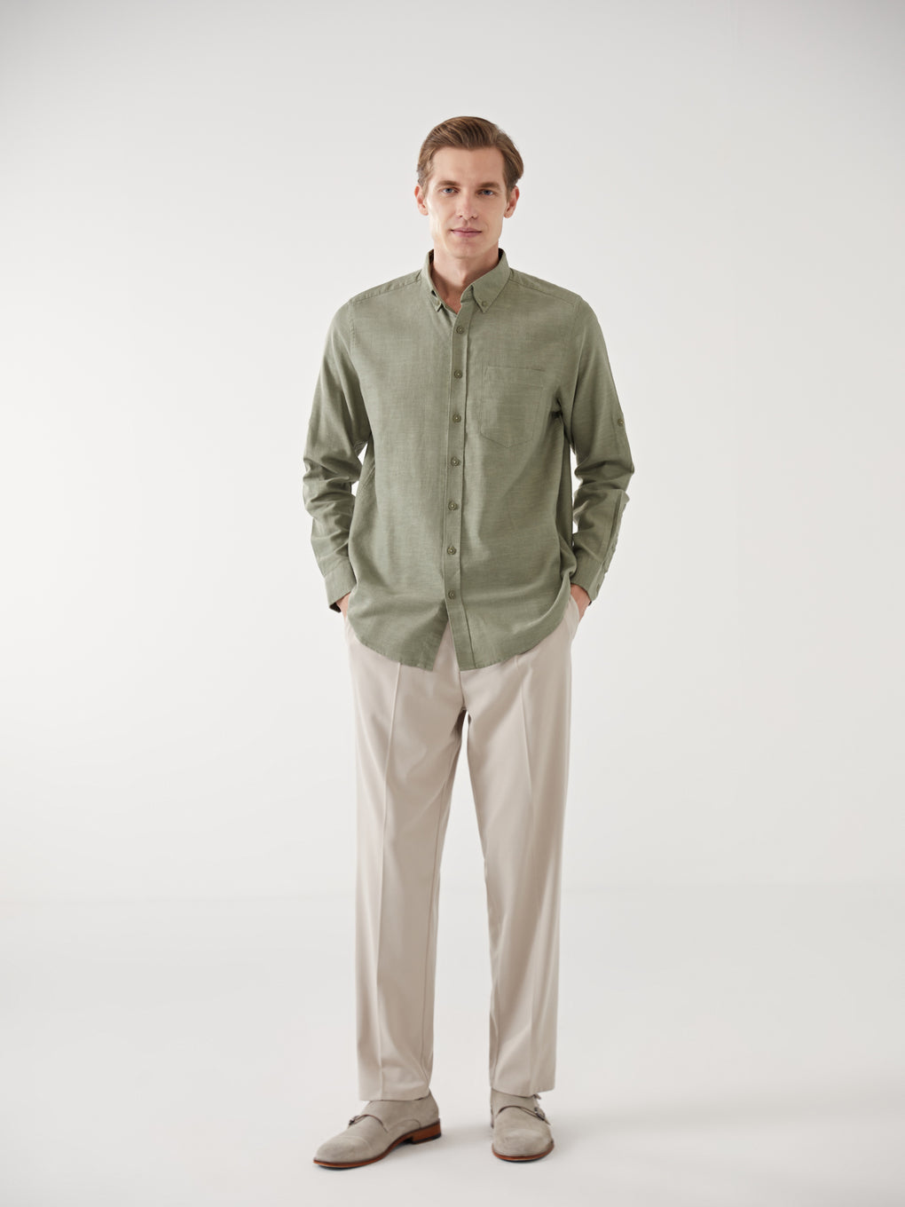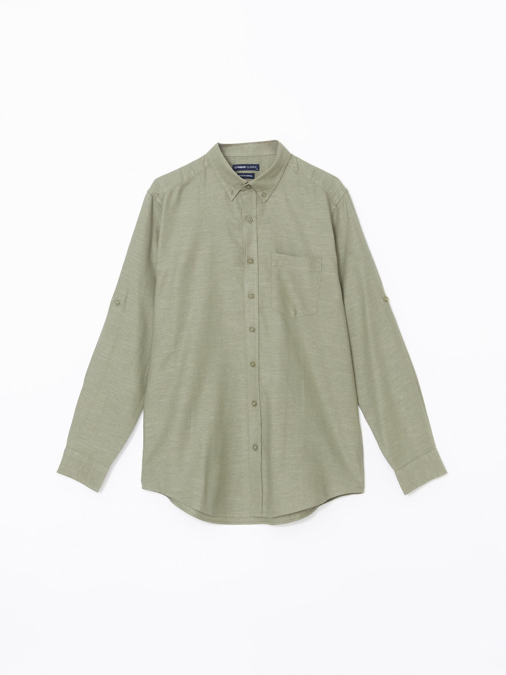 Regular Fit Long Sleeve Linen-Blend Men's Shirt