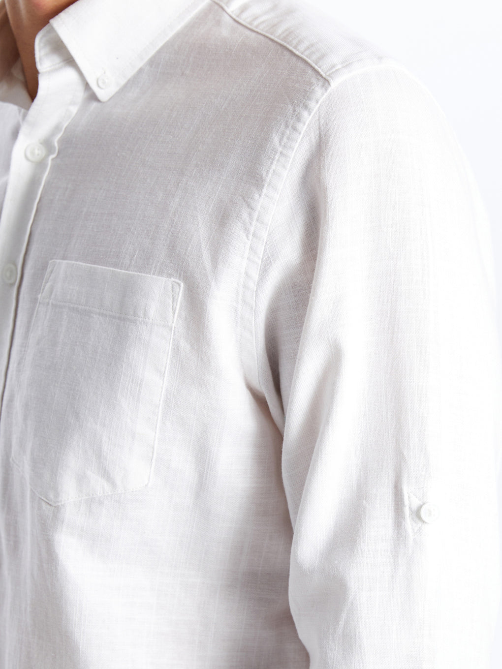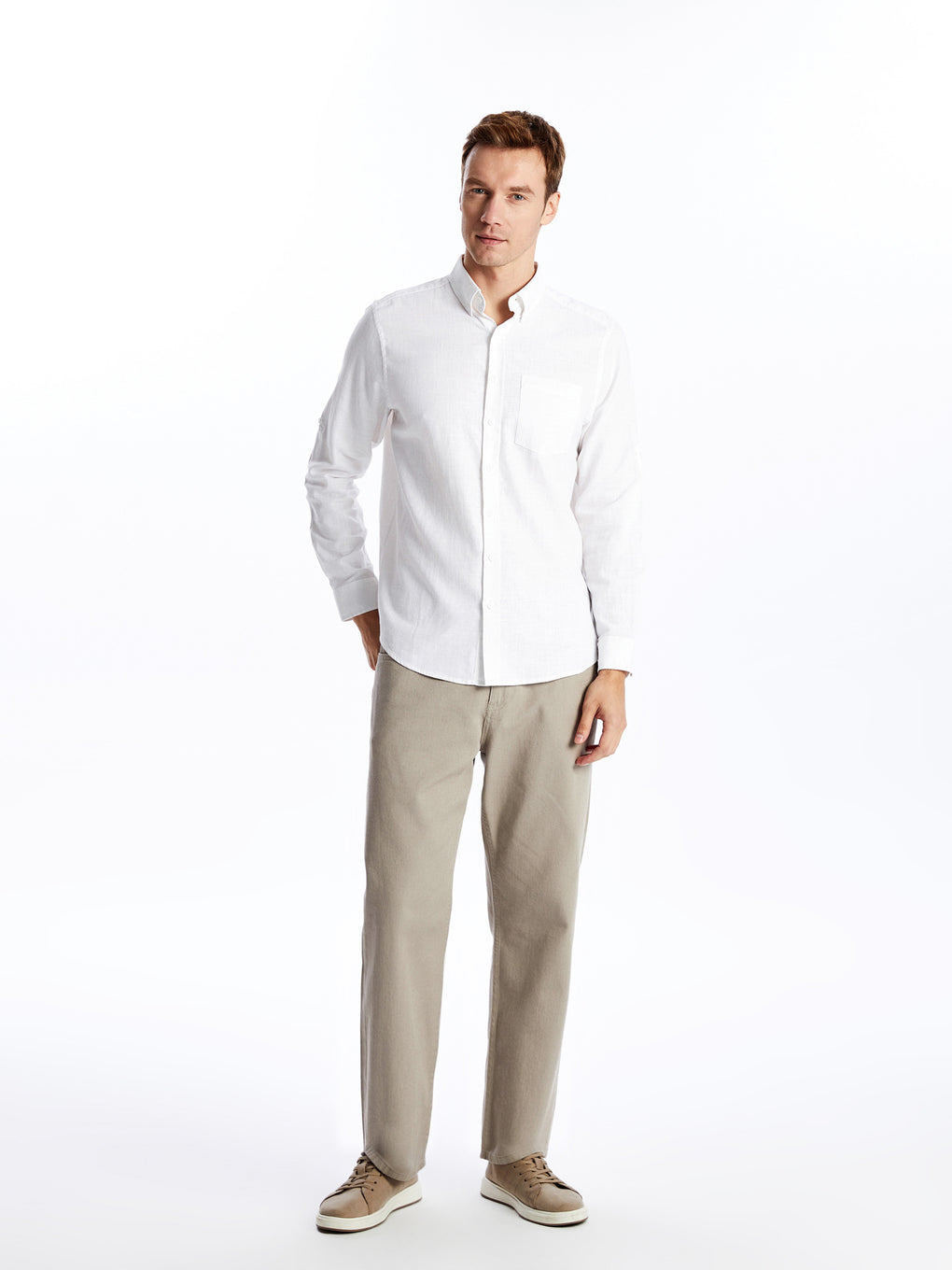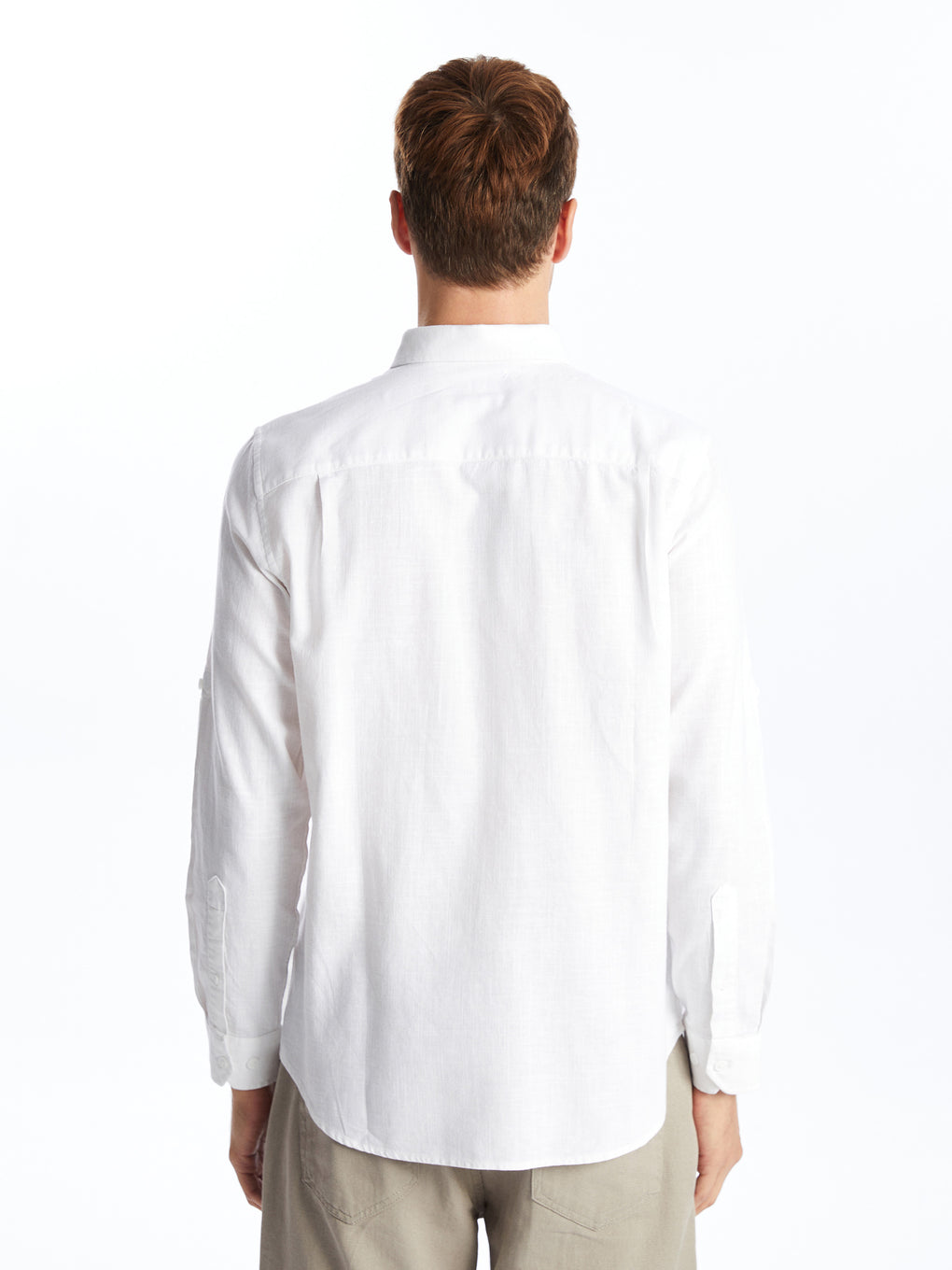 Regular Fit Long Sleeve Linen-Blend Men's Shirt