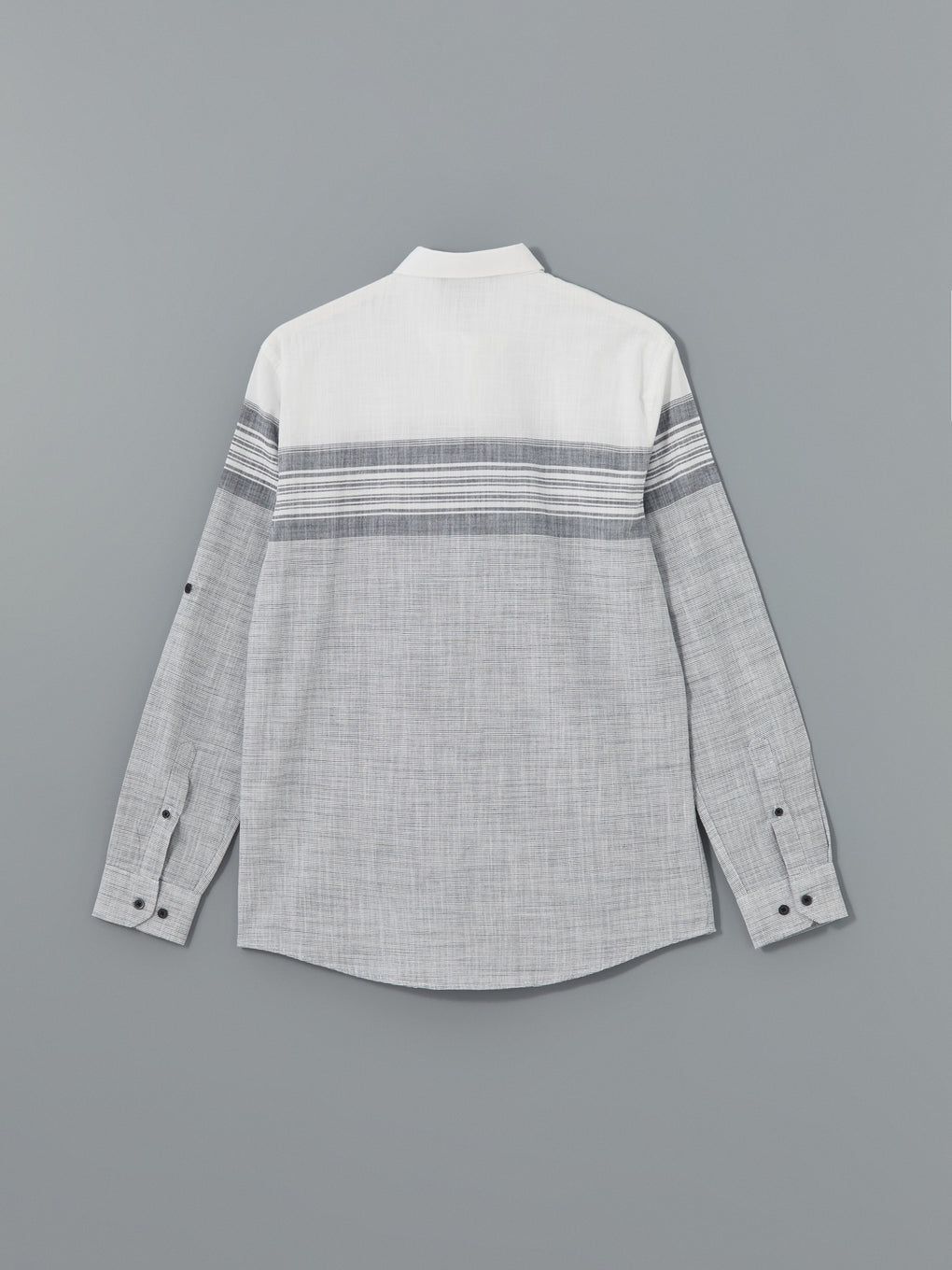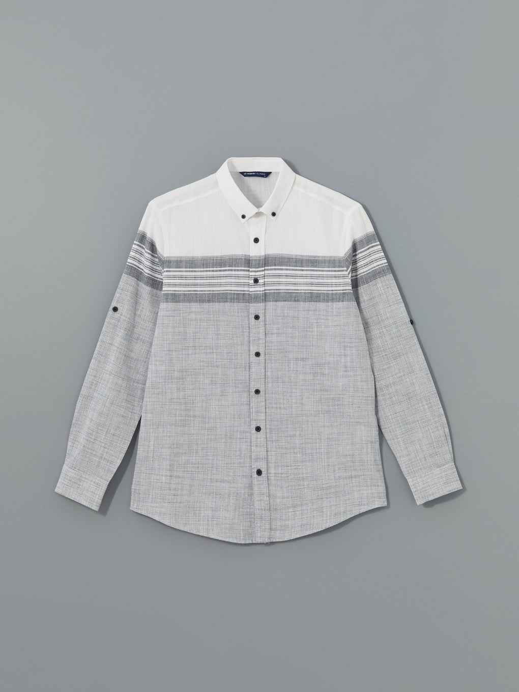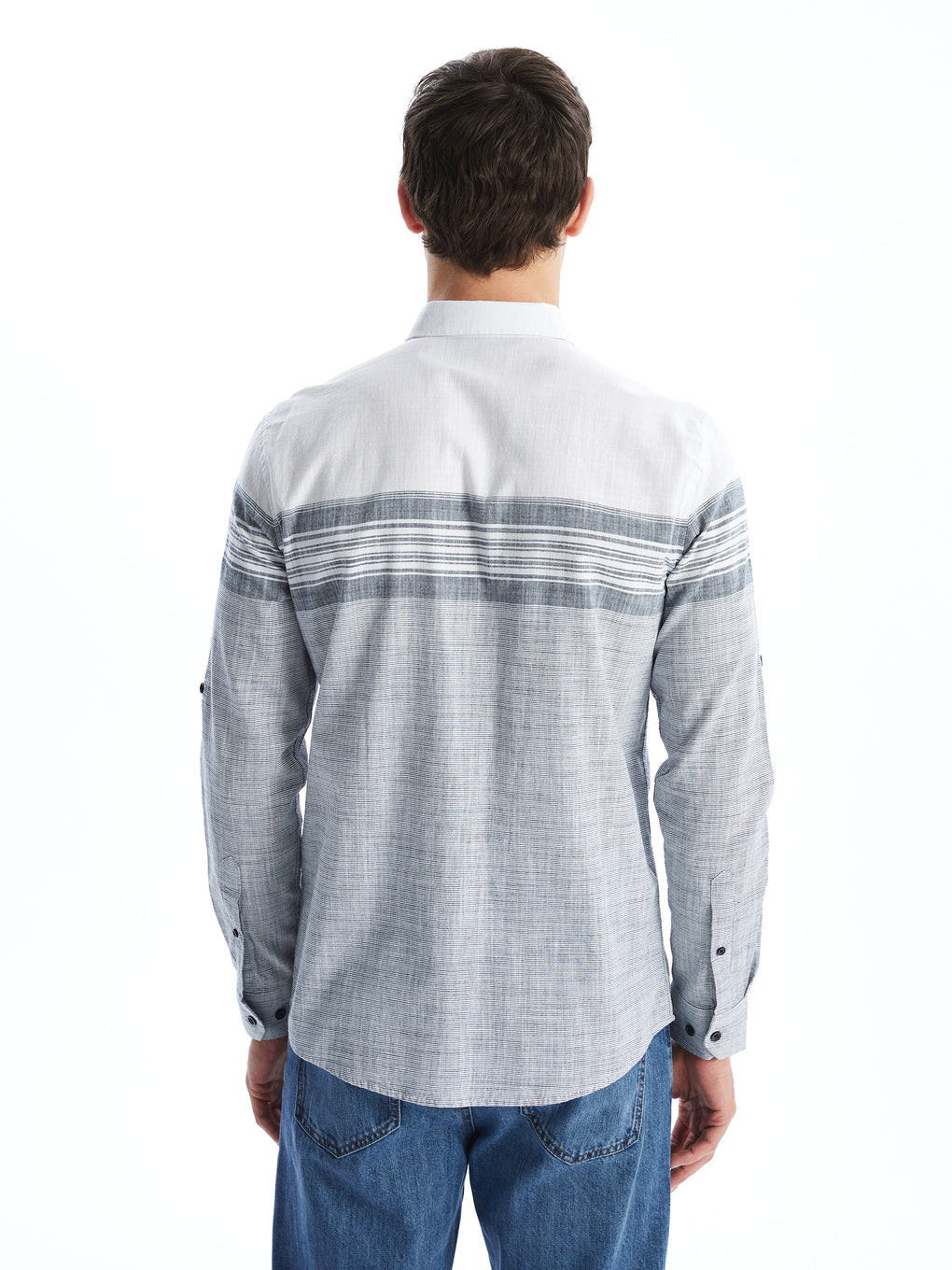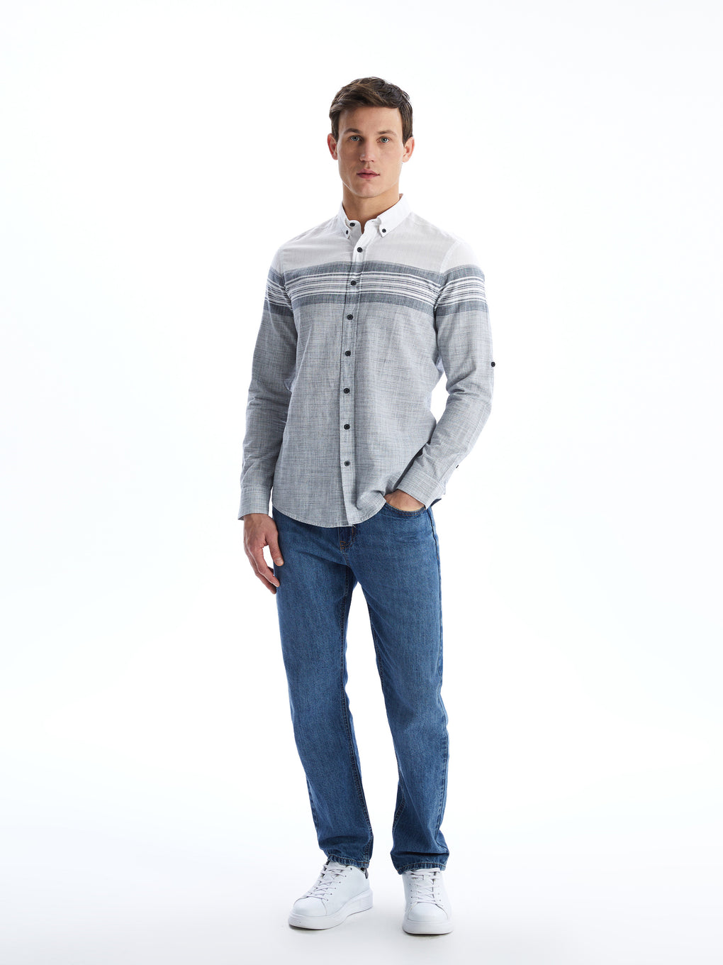 Regular Fit Long Sleeve Striped Men's Textured Shirt