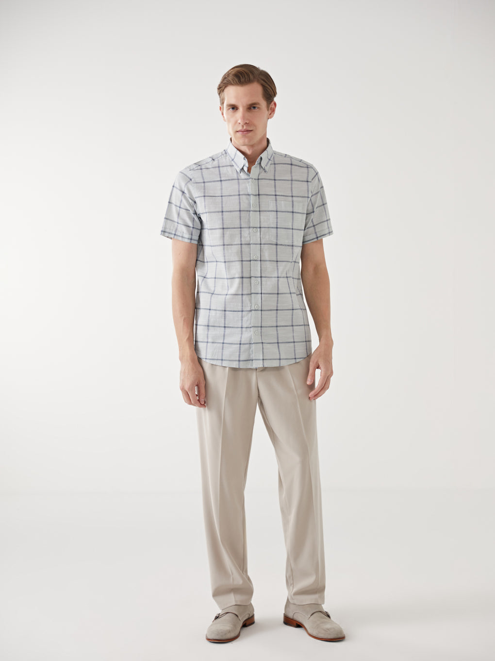 Regular Fit Short Sleeve Plaid Poplin Men's Shirt