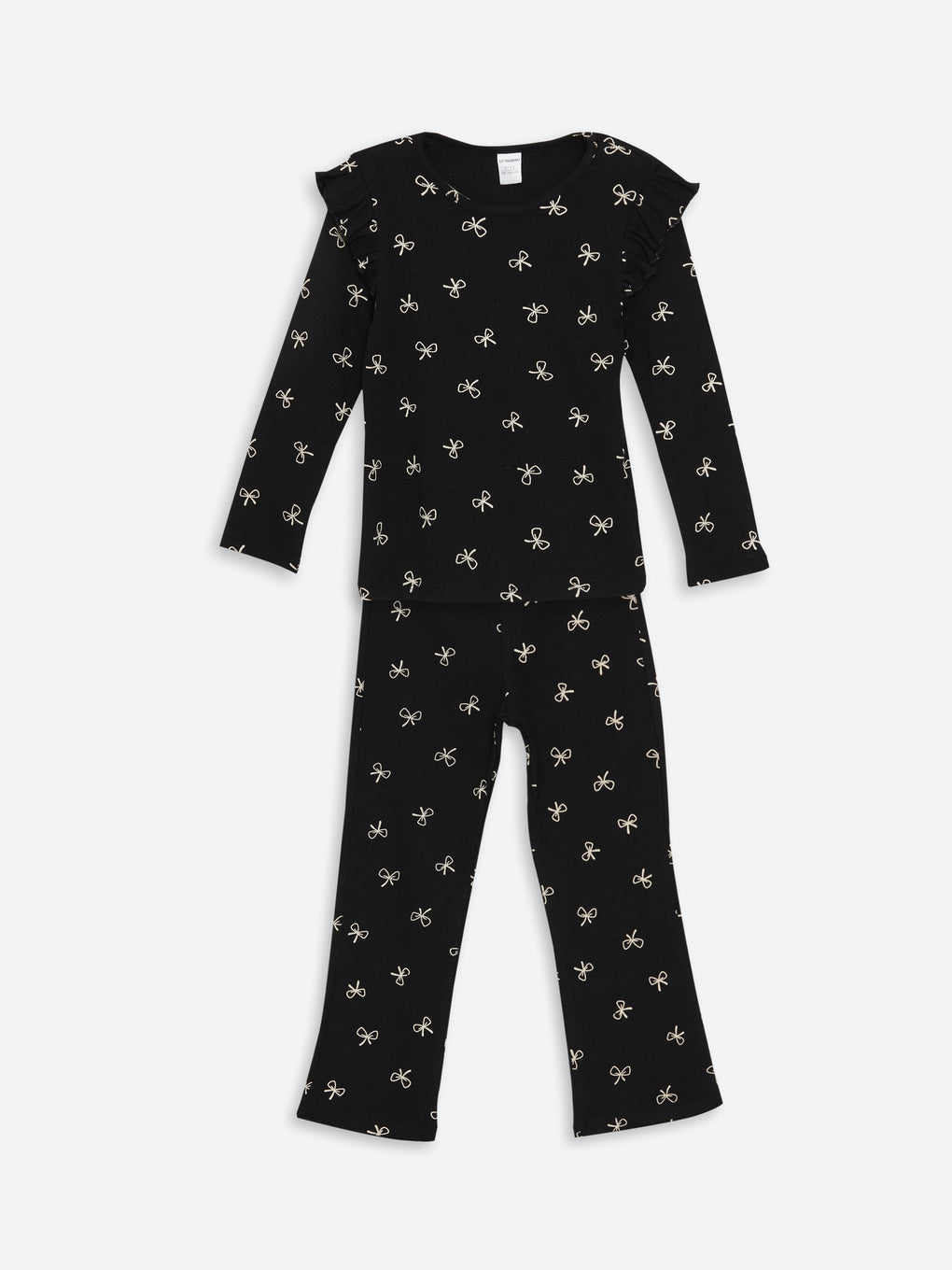 Crew Neck Ribbon Print Girls' Blouse And Leggings 2-Pack