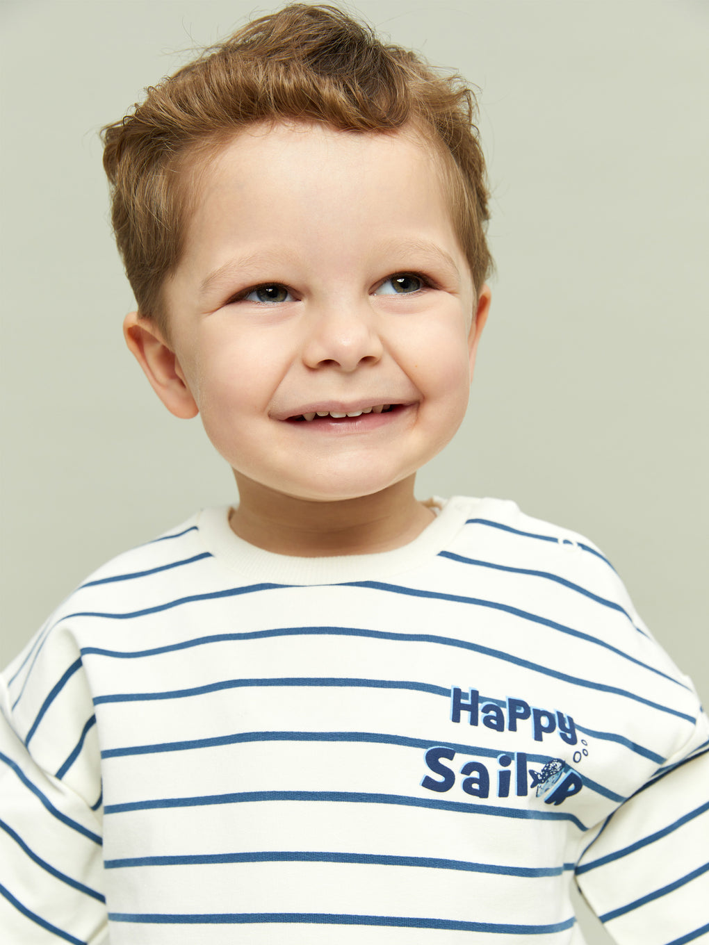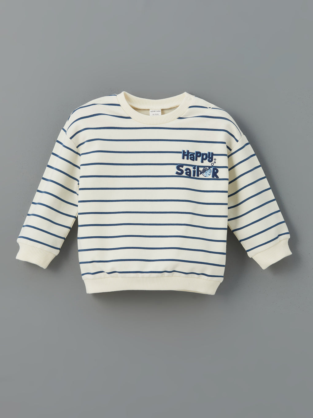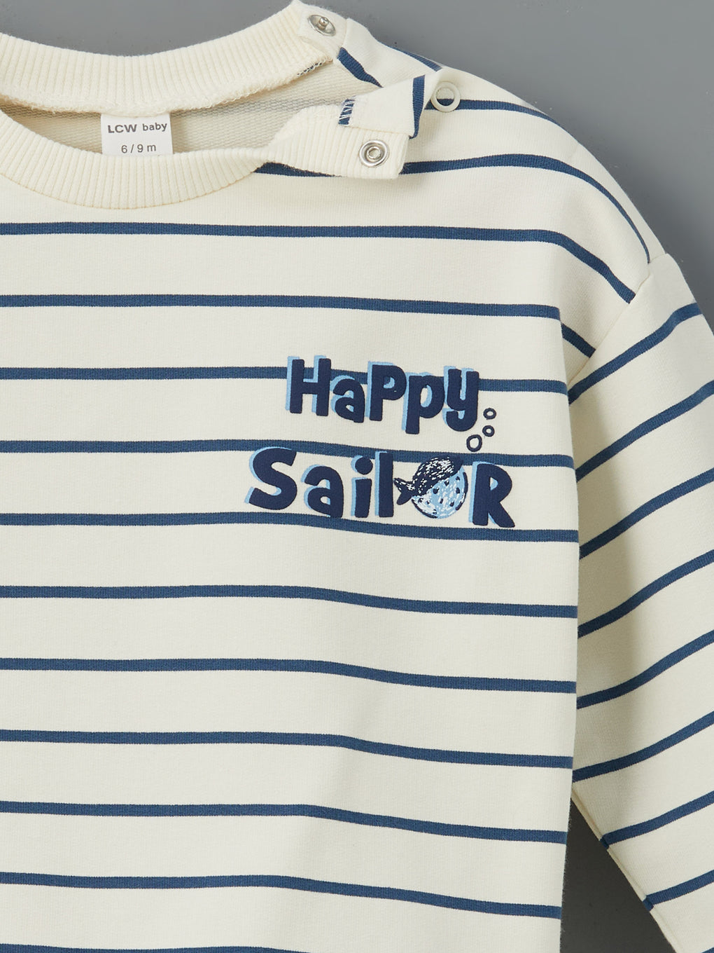 Crew Neck Striped Boy’S Sweatshirt And Sweatpants Set (2 Pcs)