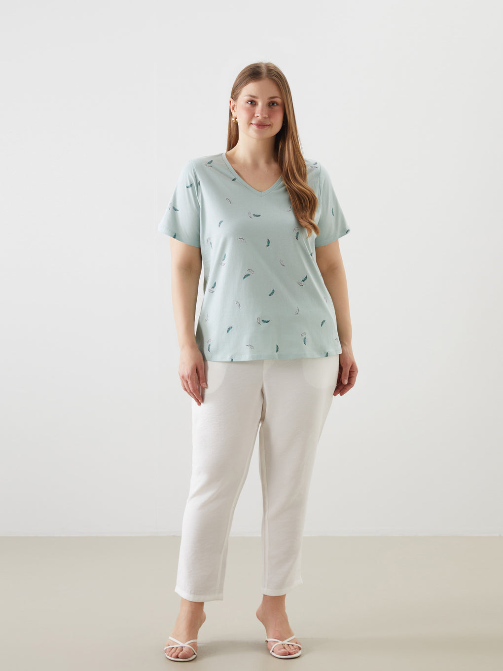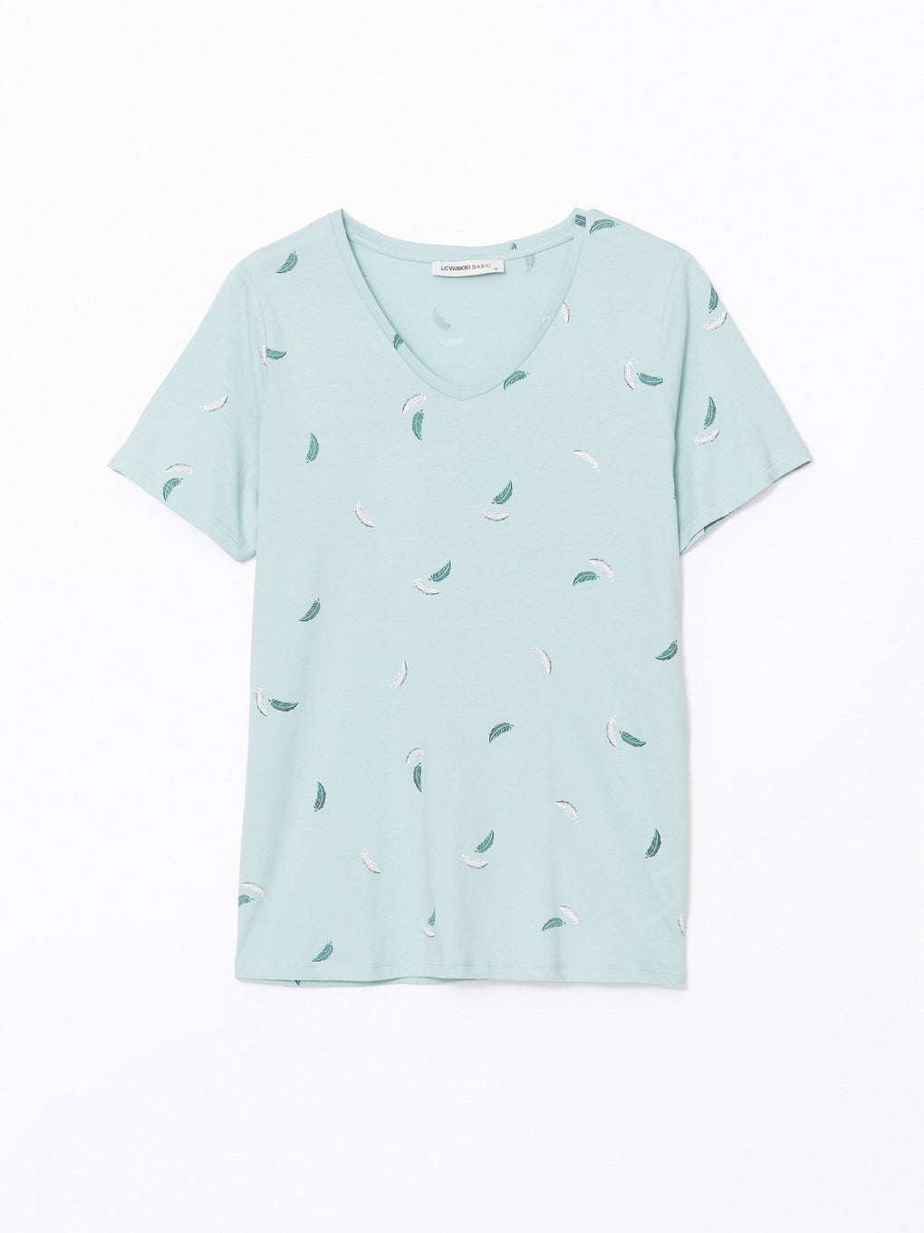 V-Neck Floral Short Sleeve Women's T-Shirt