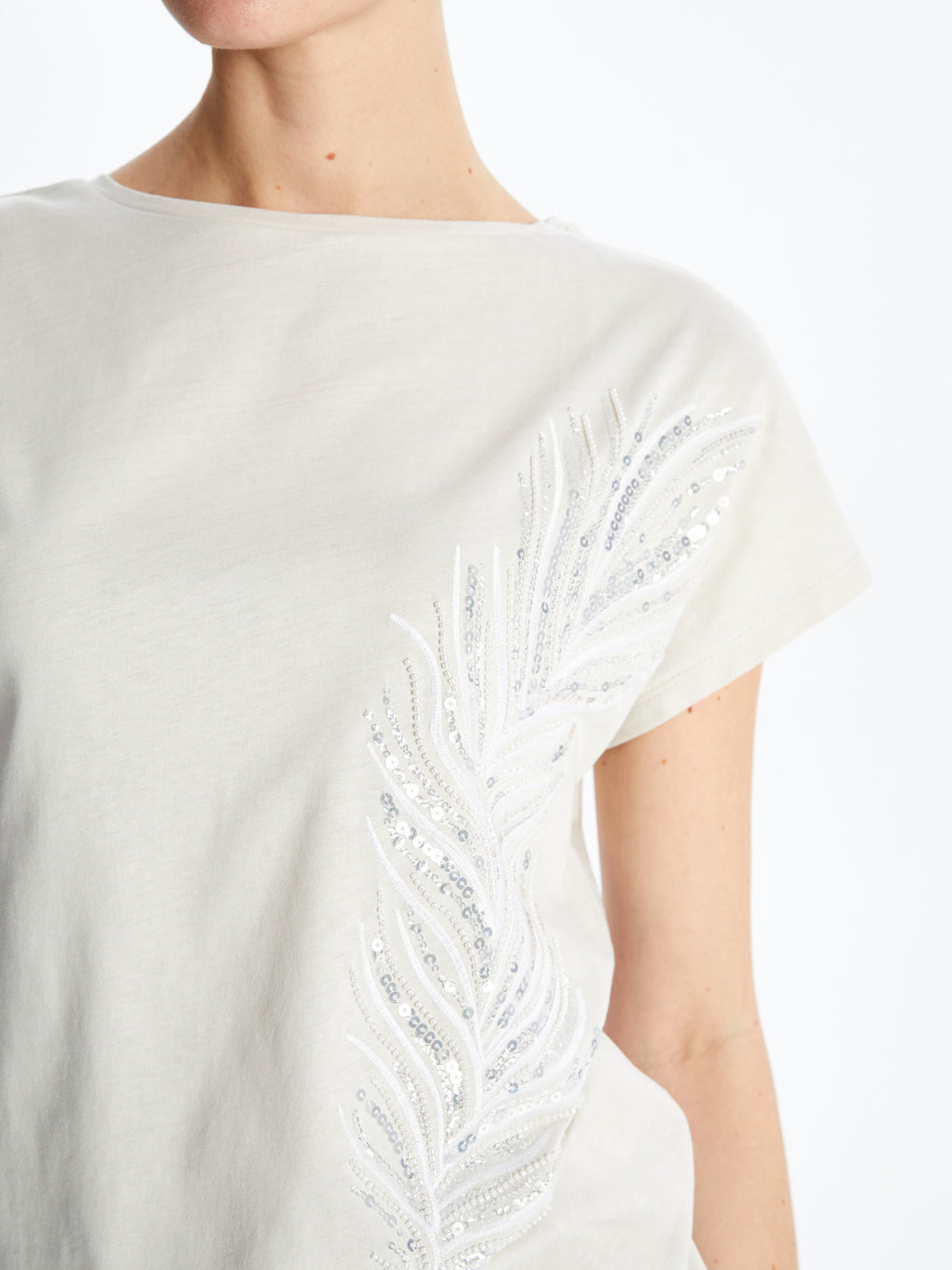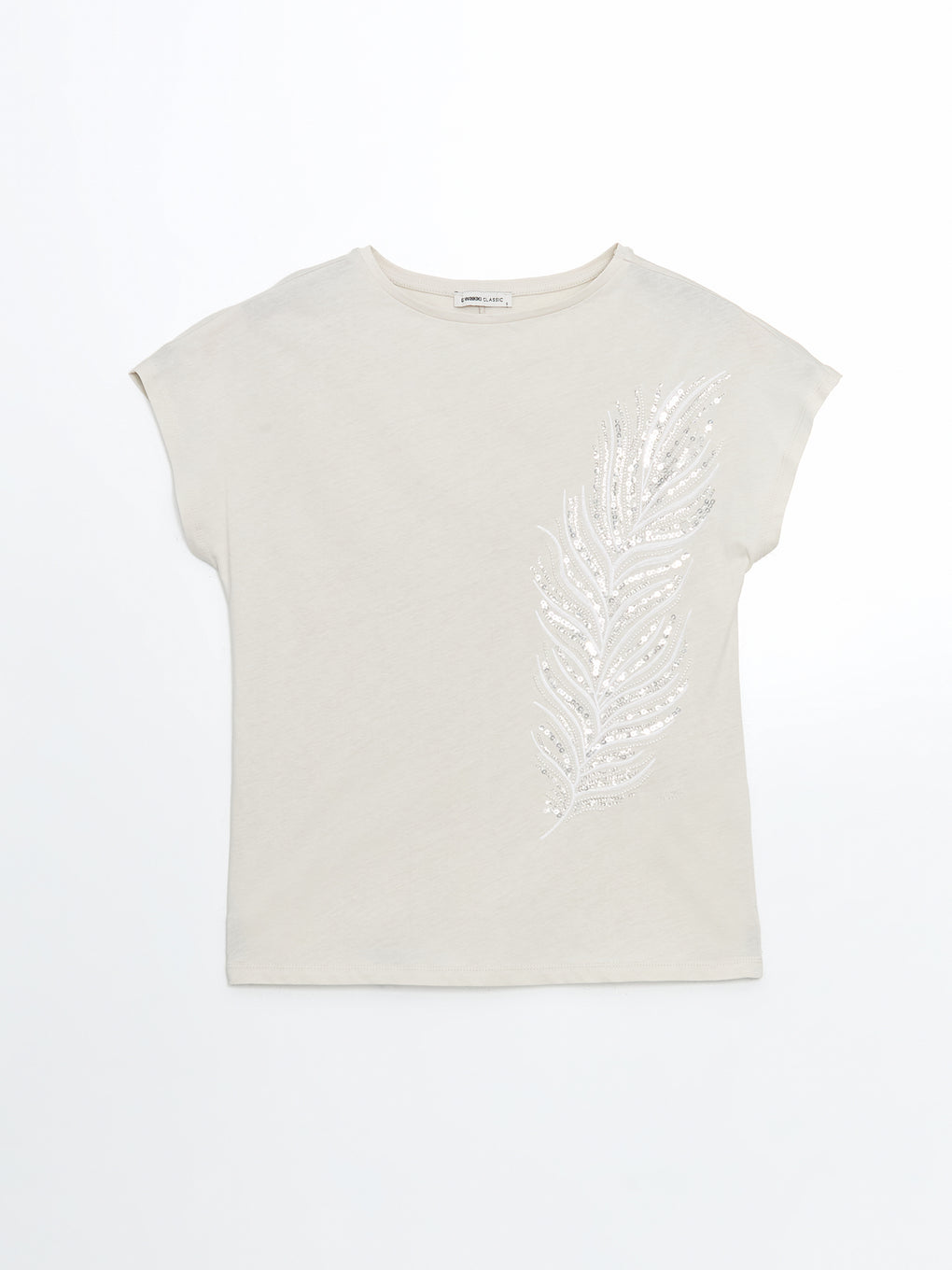 Crew Neck Sequin Sequined Long Sleeve Women's T-shirt