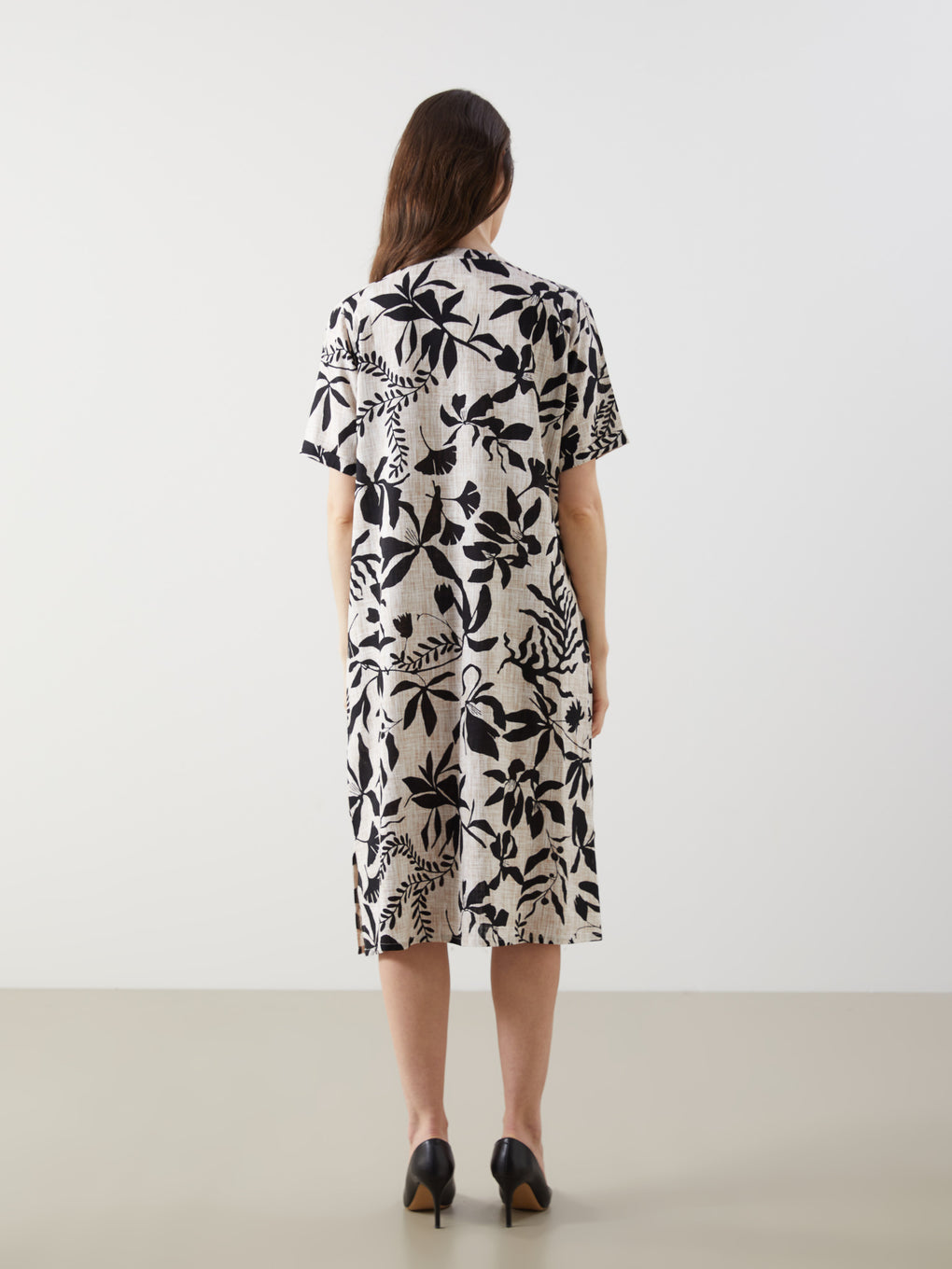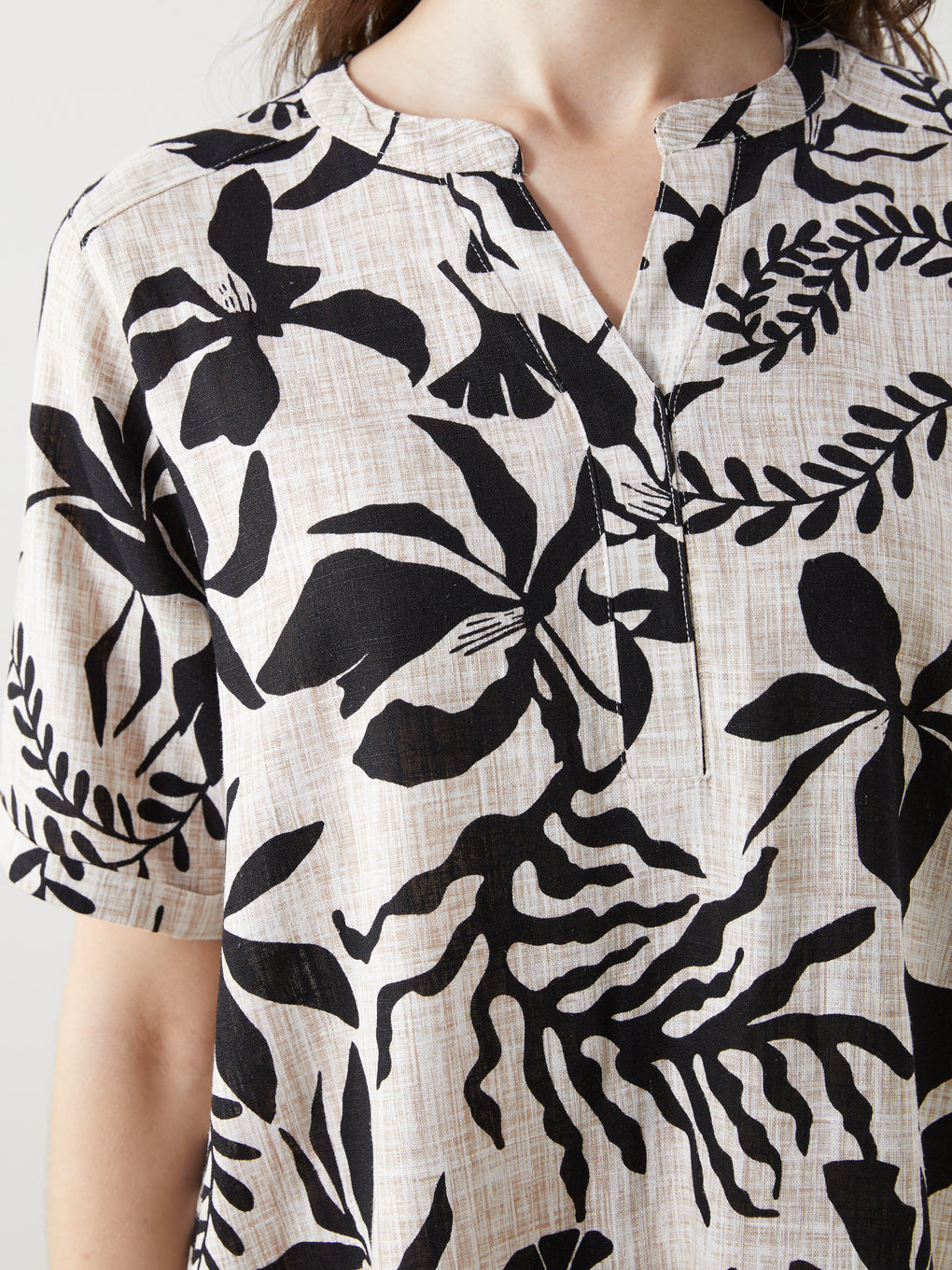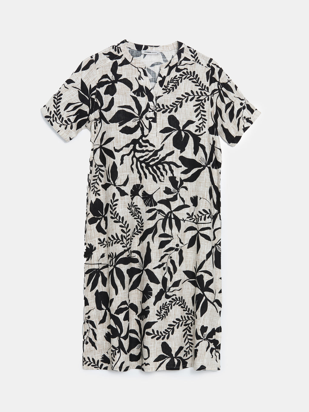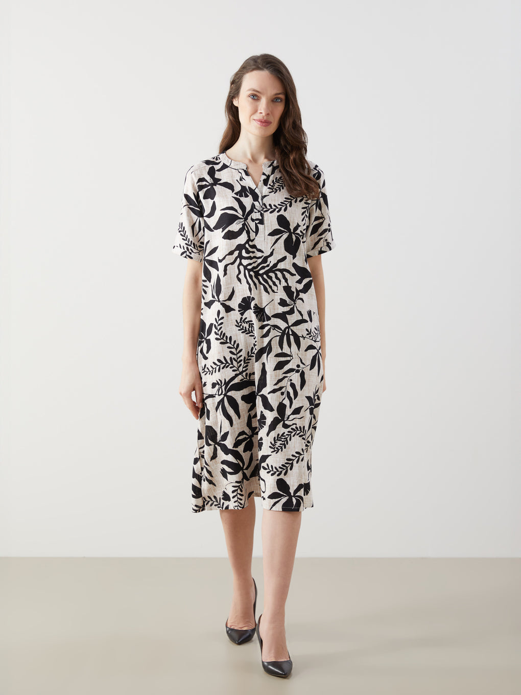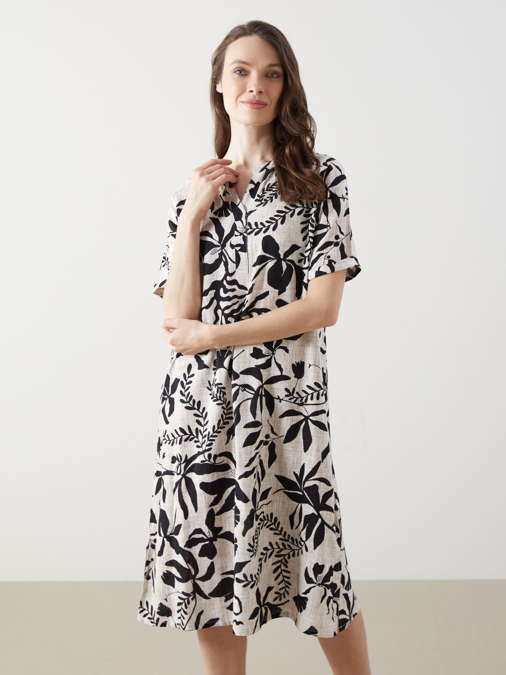 Henley Neckline Floral Linen Women'S Dress