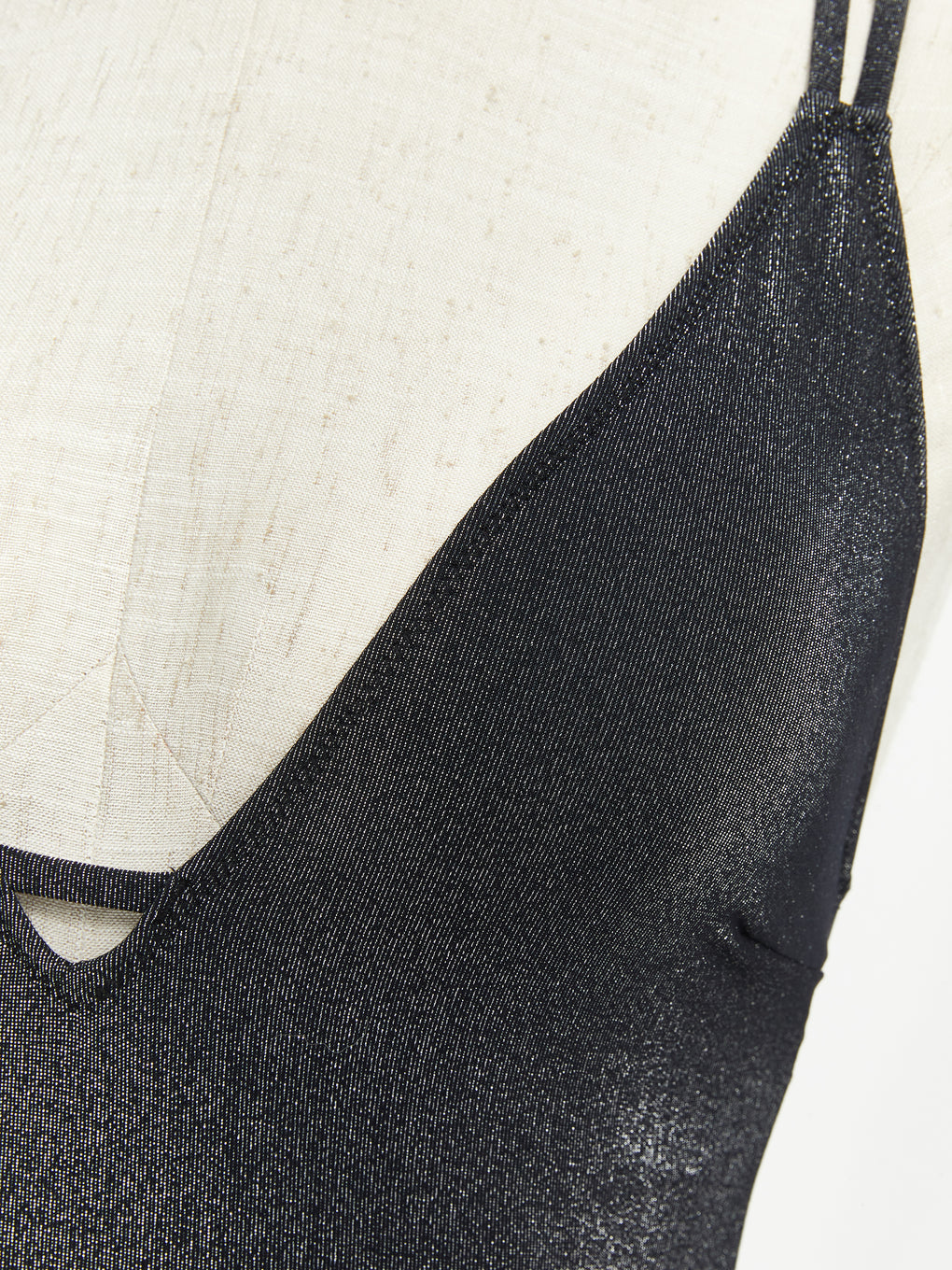Lining: 90% Polyester 10% Elastane/Spandex, Main Fabric: 69% Polyamide/Nylon 24% Metallic Fiber 7% Elastane/Spandex