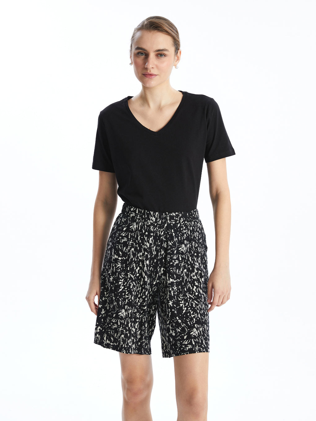 Women's Elastic Waist Patterned Shorts