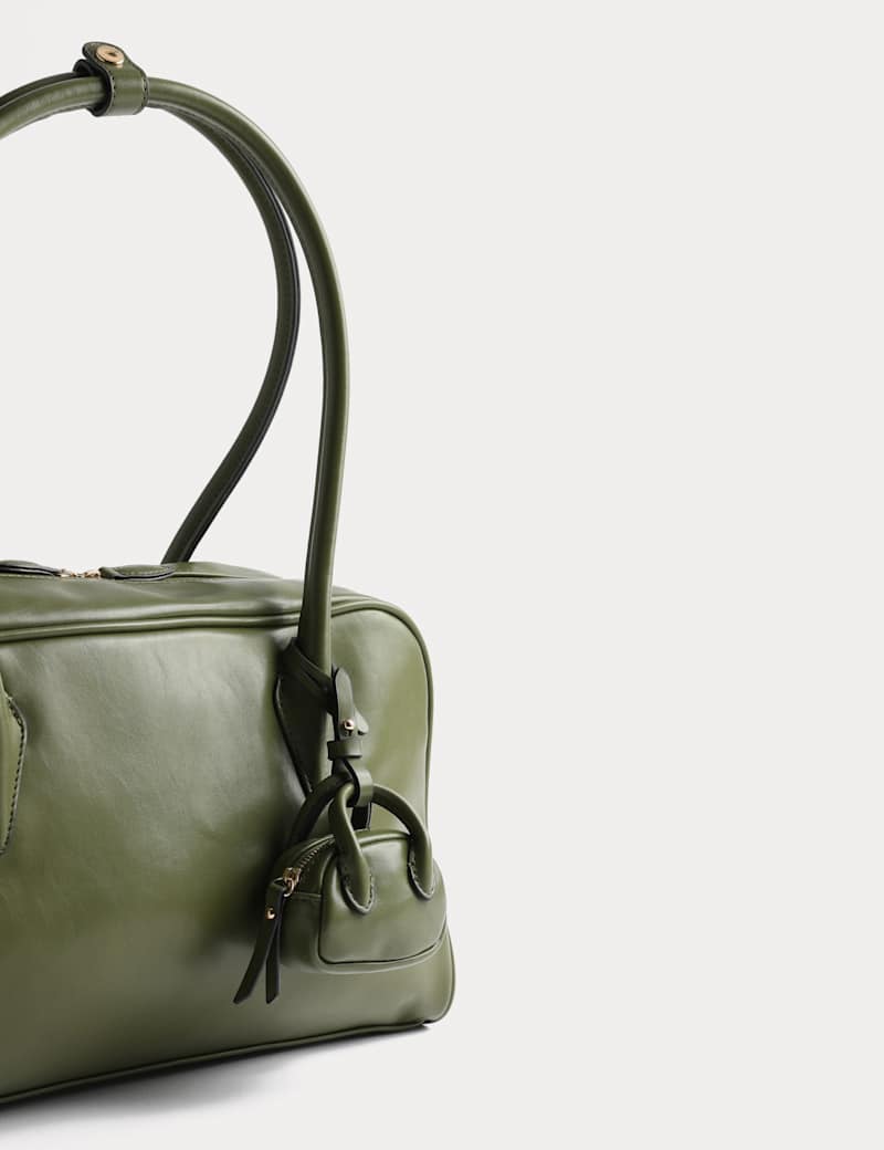 This faux leather bowler bag is a sophisticated choice for carrying your essentials. It has a structured shape, with a main compartment that fastens securely with a zip.
