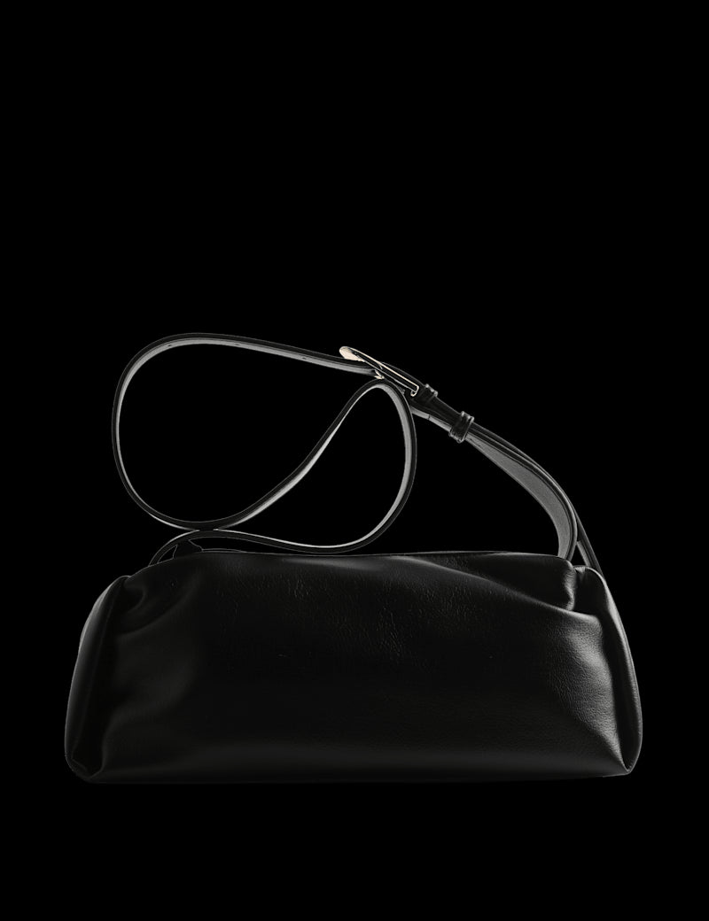This crossbody bag is a sleek and stylish choice for your essentials. It has a slim rectangular shape with a main compartment, and fastens securely with a zip. The adjustable strap has a comfortable wide shape and polished metal buckle detailing.