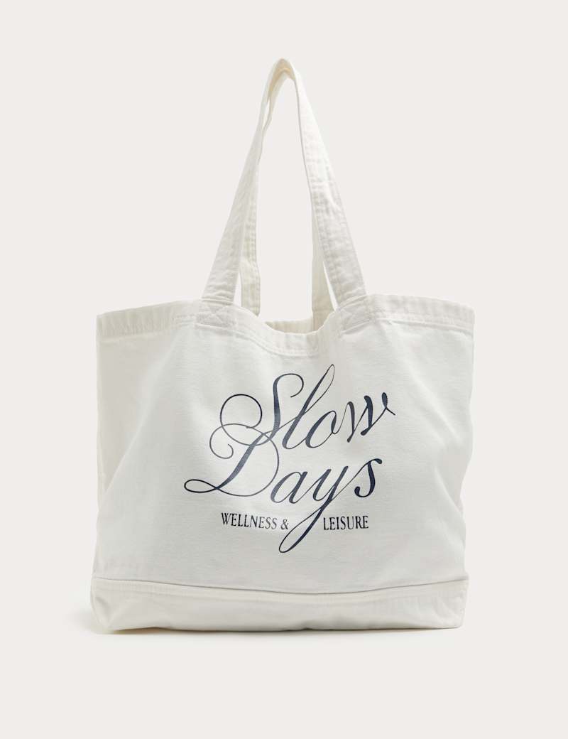 This cotton canvas tote bag features a 'Los Angeles' slogan print on the front. Two top handles complete this everyday staple. Lined.
