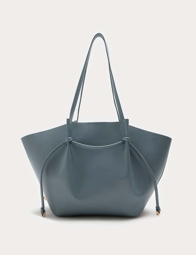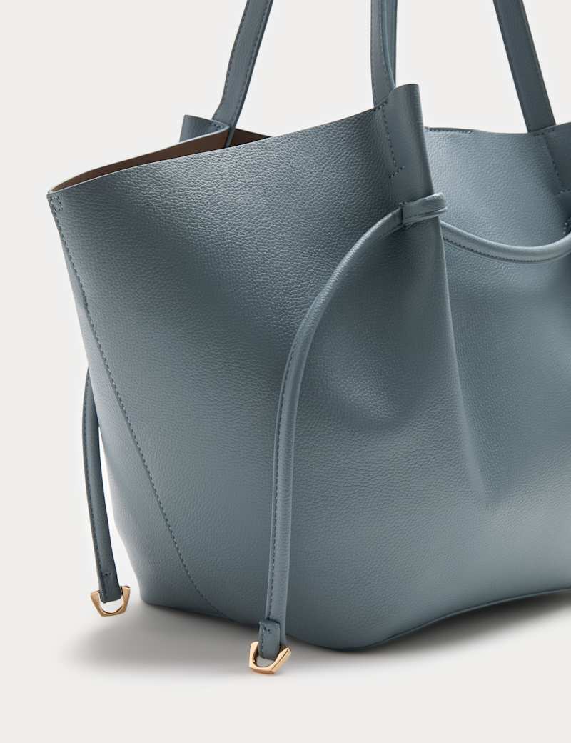 Faux Leather Pinched Strap Detail Tote Bag