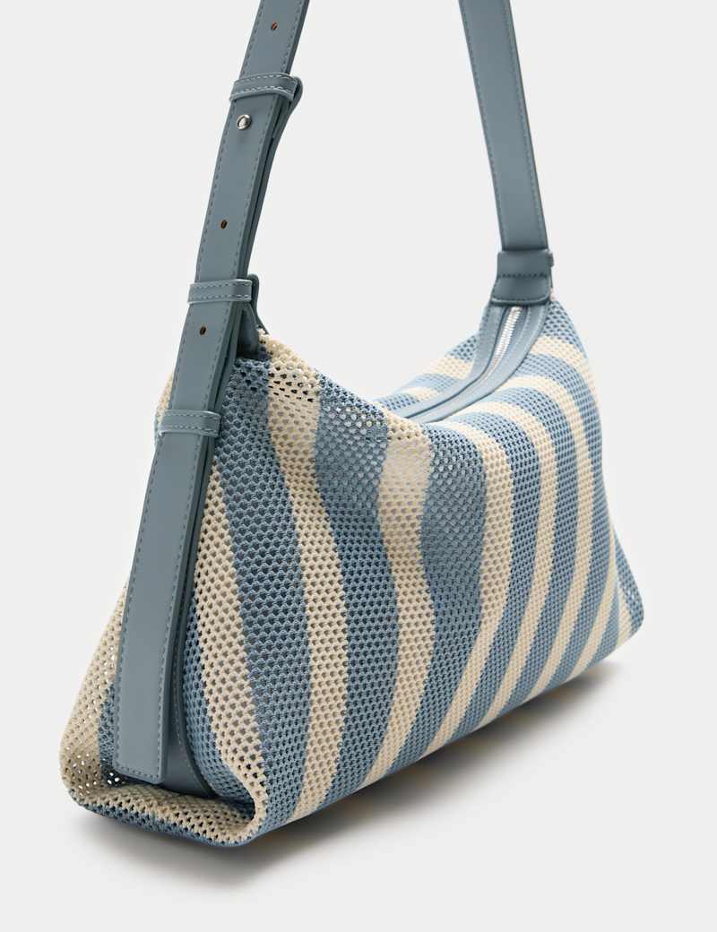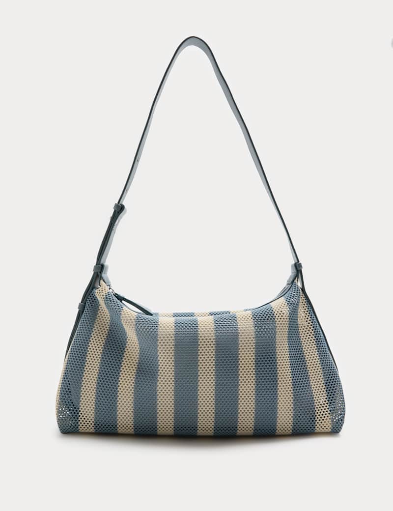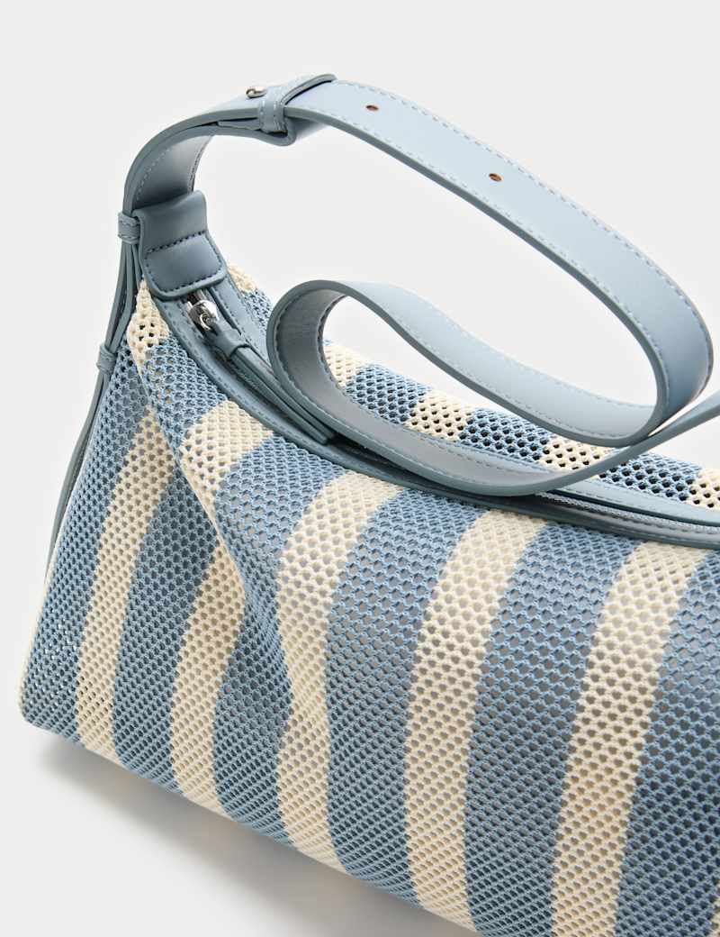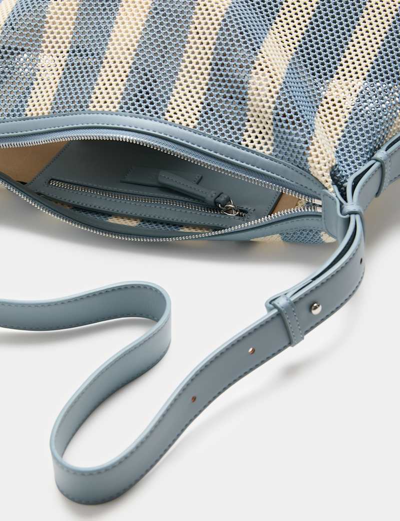 Update your accessories with this striped bag, made from on-trend mesh. The adjustable strap allows for shoulder or cross-body wear. Zipped main compartment features an inner zip pocket for small essentials.