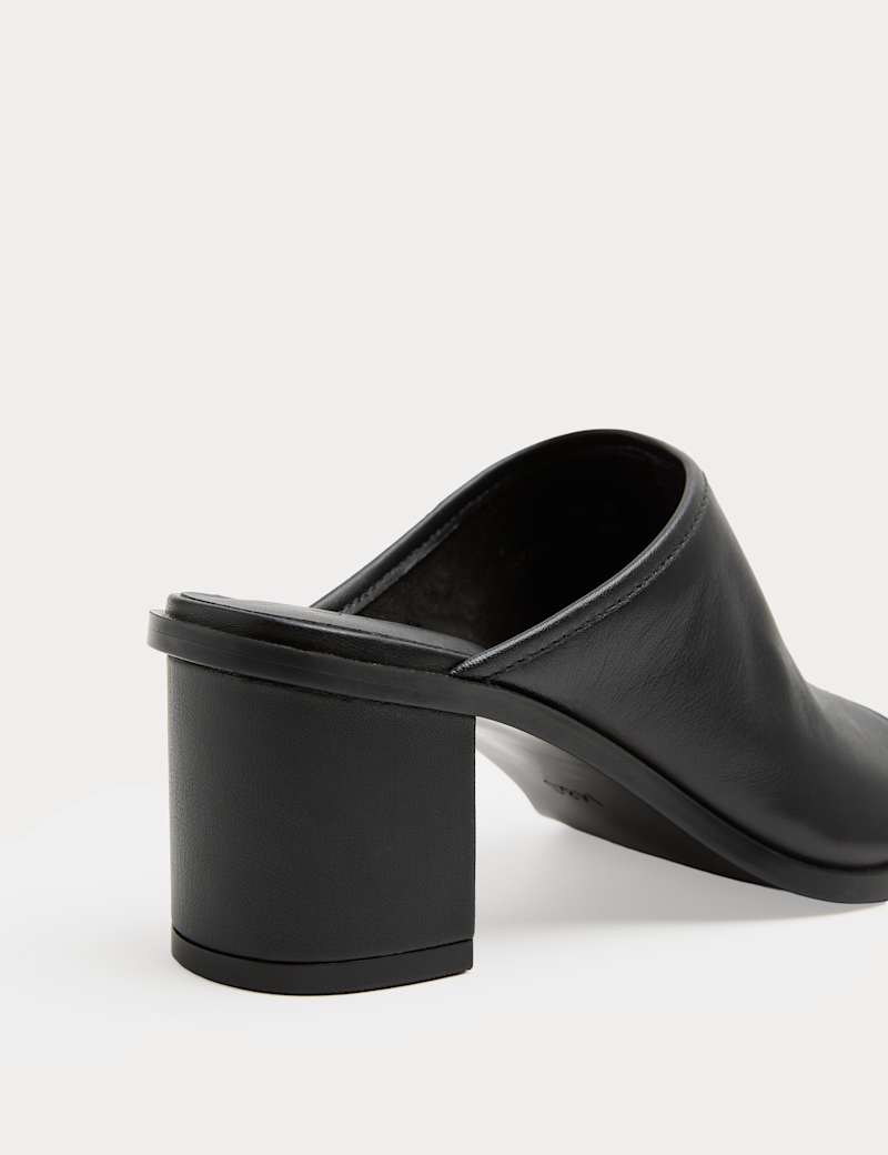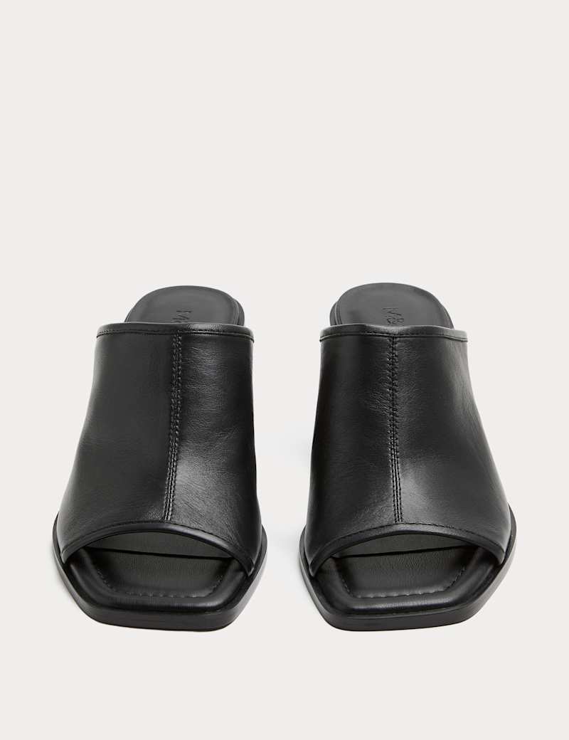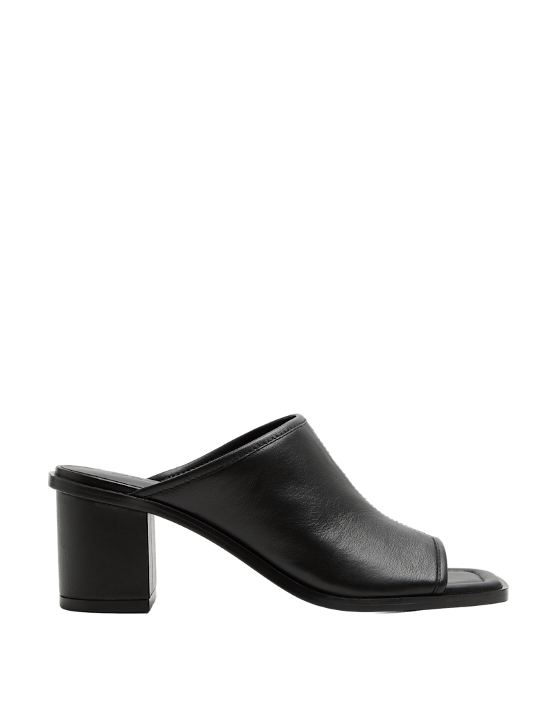 Leather Block Heel Peep Toe Mules