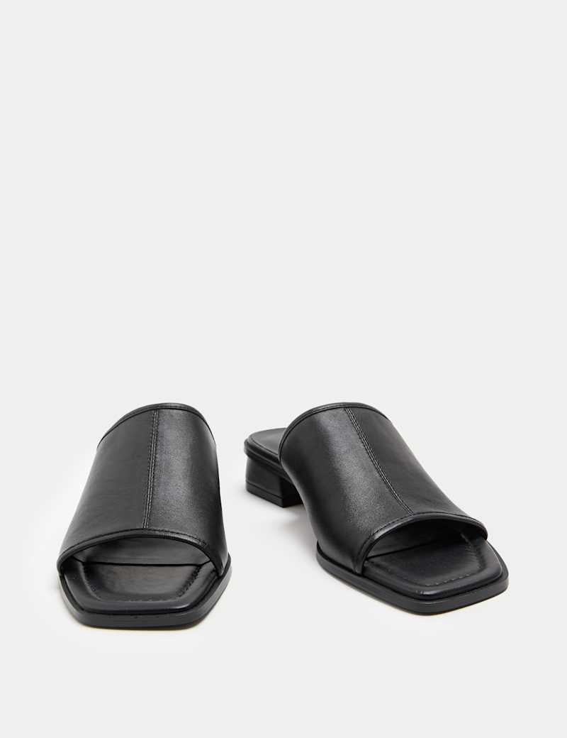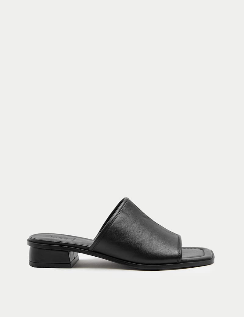 These leather mules are a versatile addition to your warm weather footwear. Their slip-on design features a low block heel and a peep toe for a flattering look.