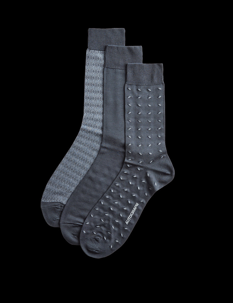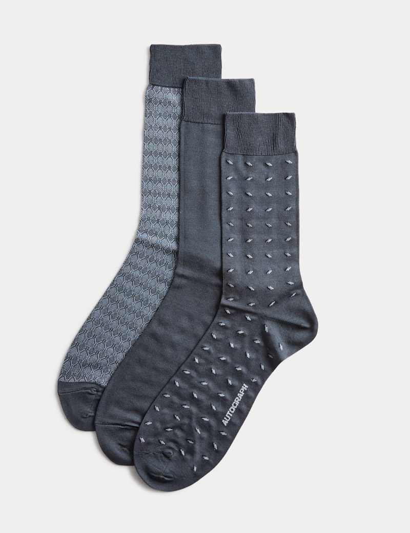 Add a little luxury to your sock drawer with these mercerised cotton-rich socks from our Autograph Collection. Three-pack includes a mix of plain and subtly patterned designs, all with ribbed cuffs for a flexible fit.