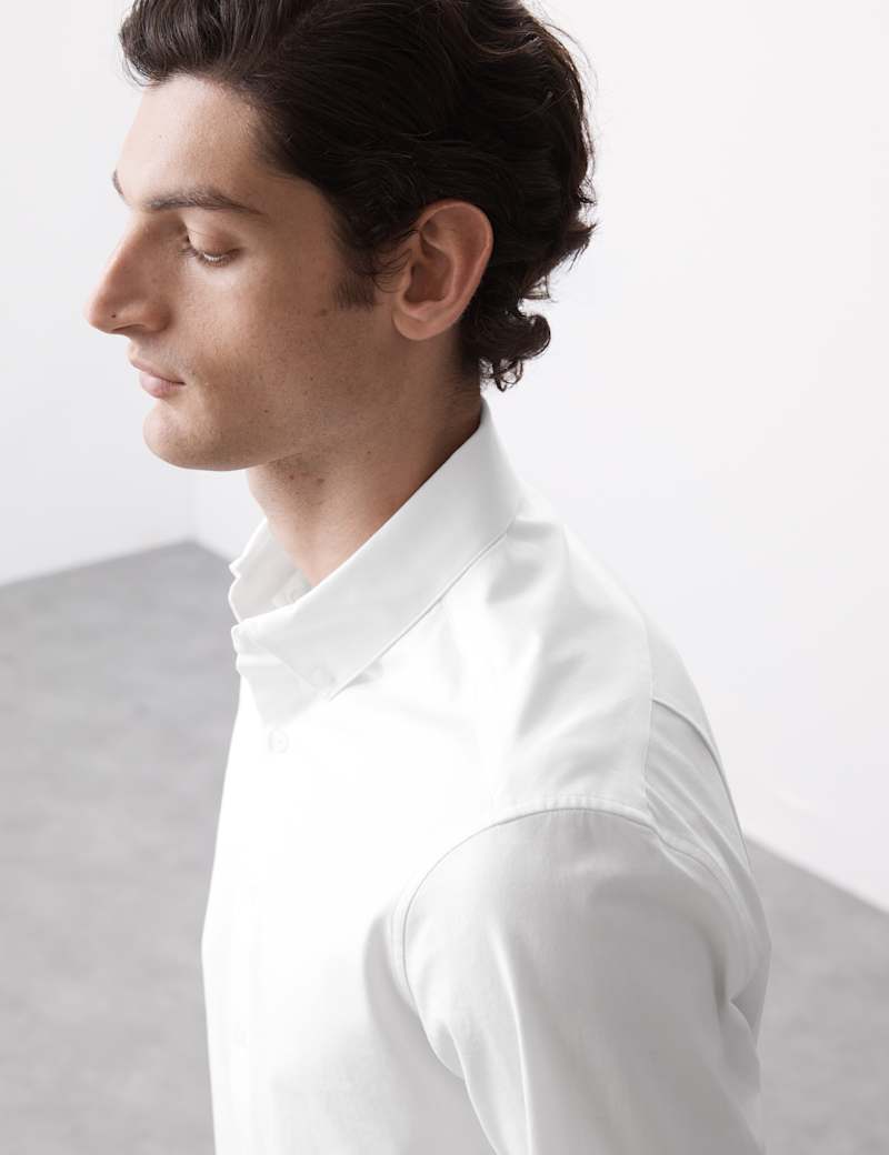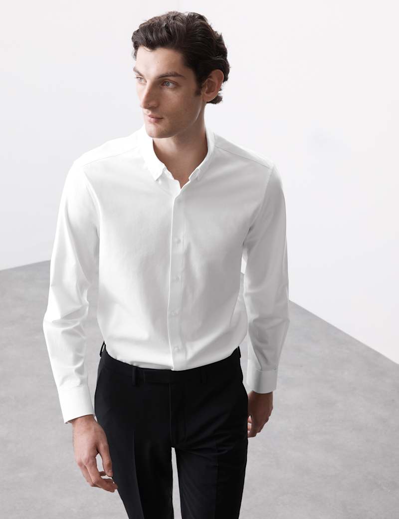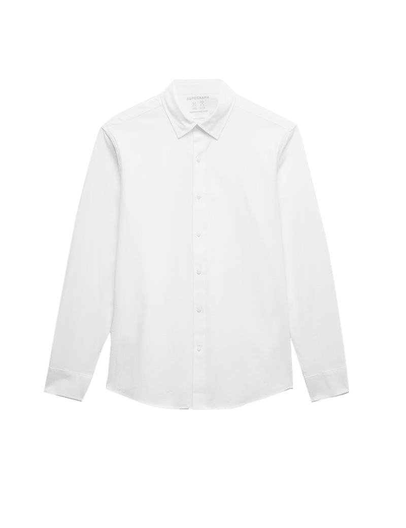This smooth, easy-care shirt offers practical comfort with a smart edge. Cut to a regular fit with 360 Flex™ technology, it ensures freedom of movement throughout your day. The button-down collar and single cuffs create a sharp silhouette, while moisture-wicking properties keep you feeling fresh. Made with stretch fabric for easy wear and simple ironing, this Autograph item transitions effortlessly from office to evening.